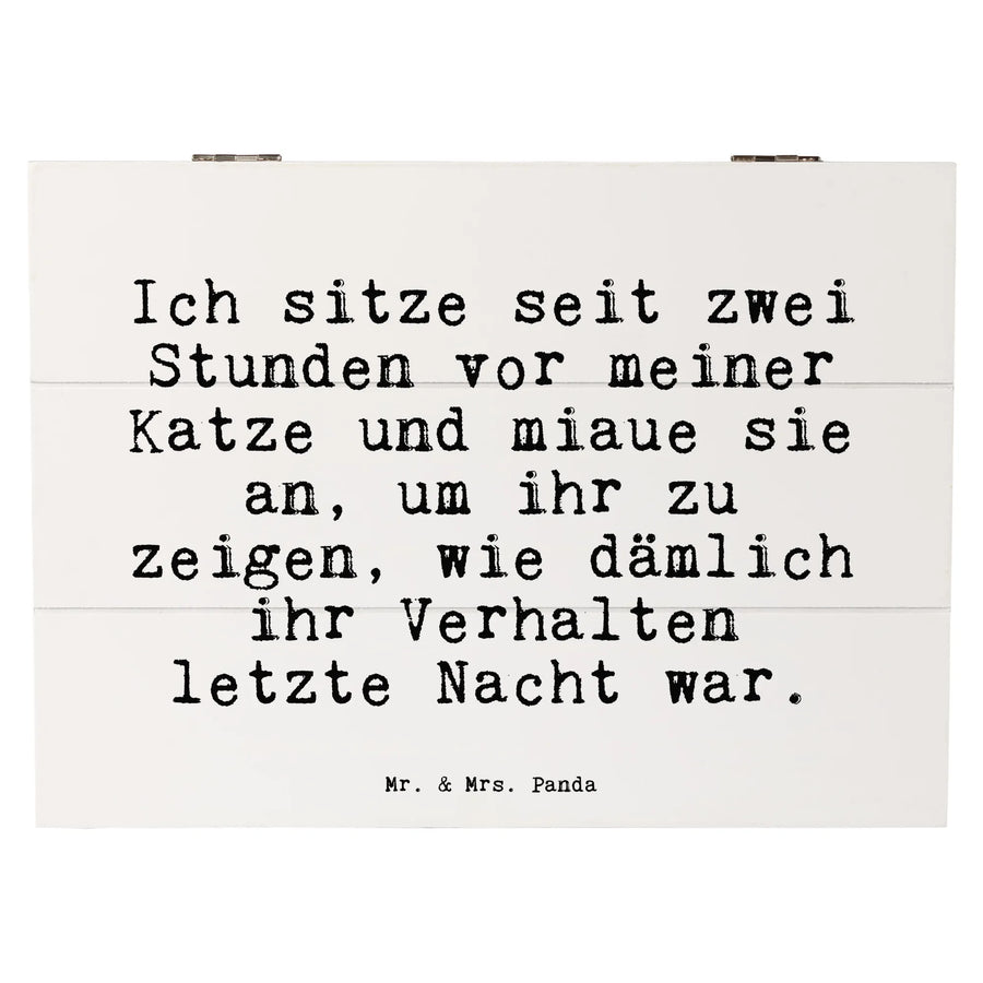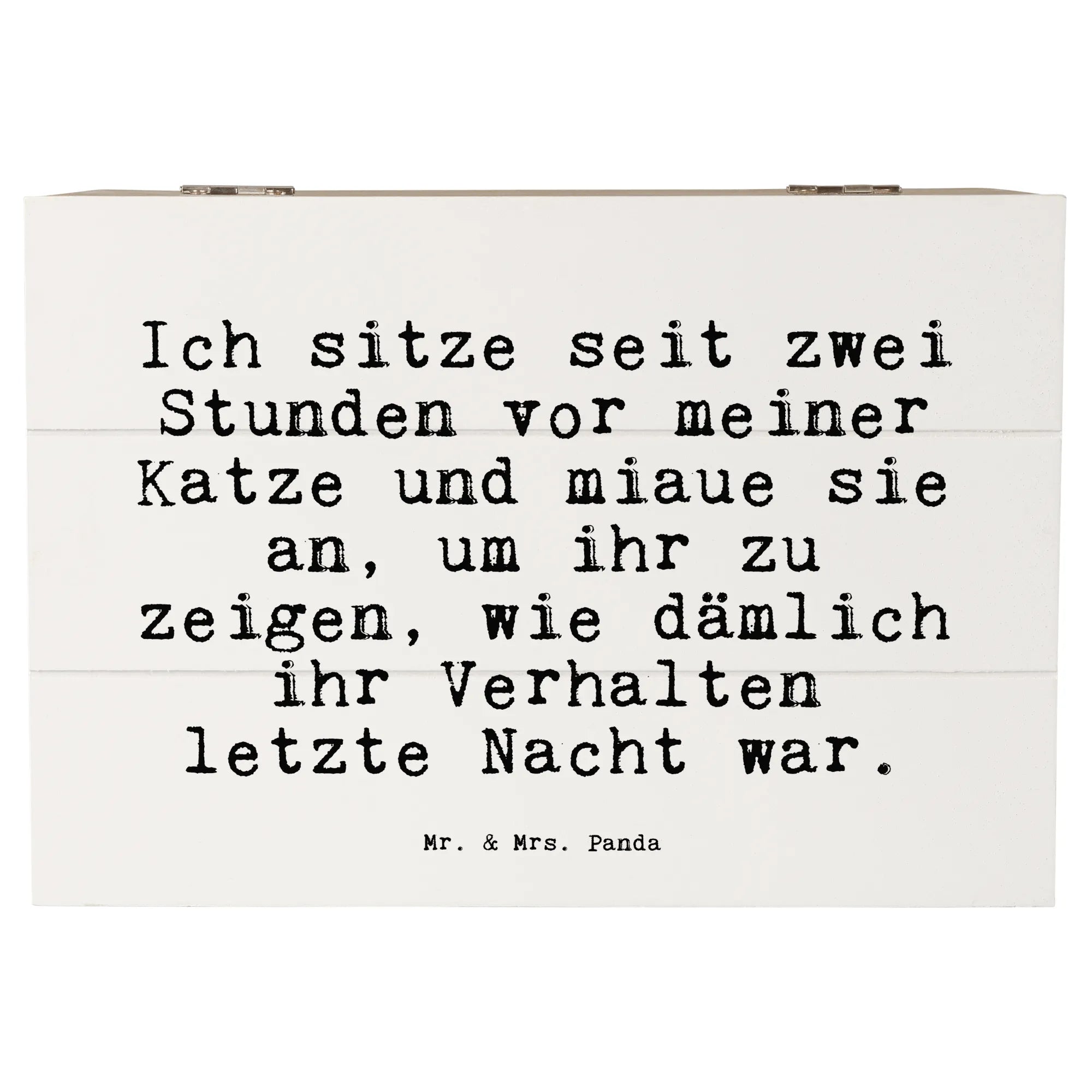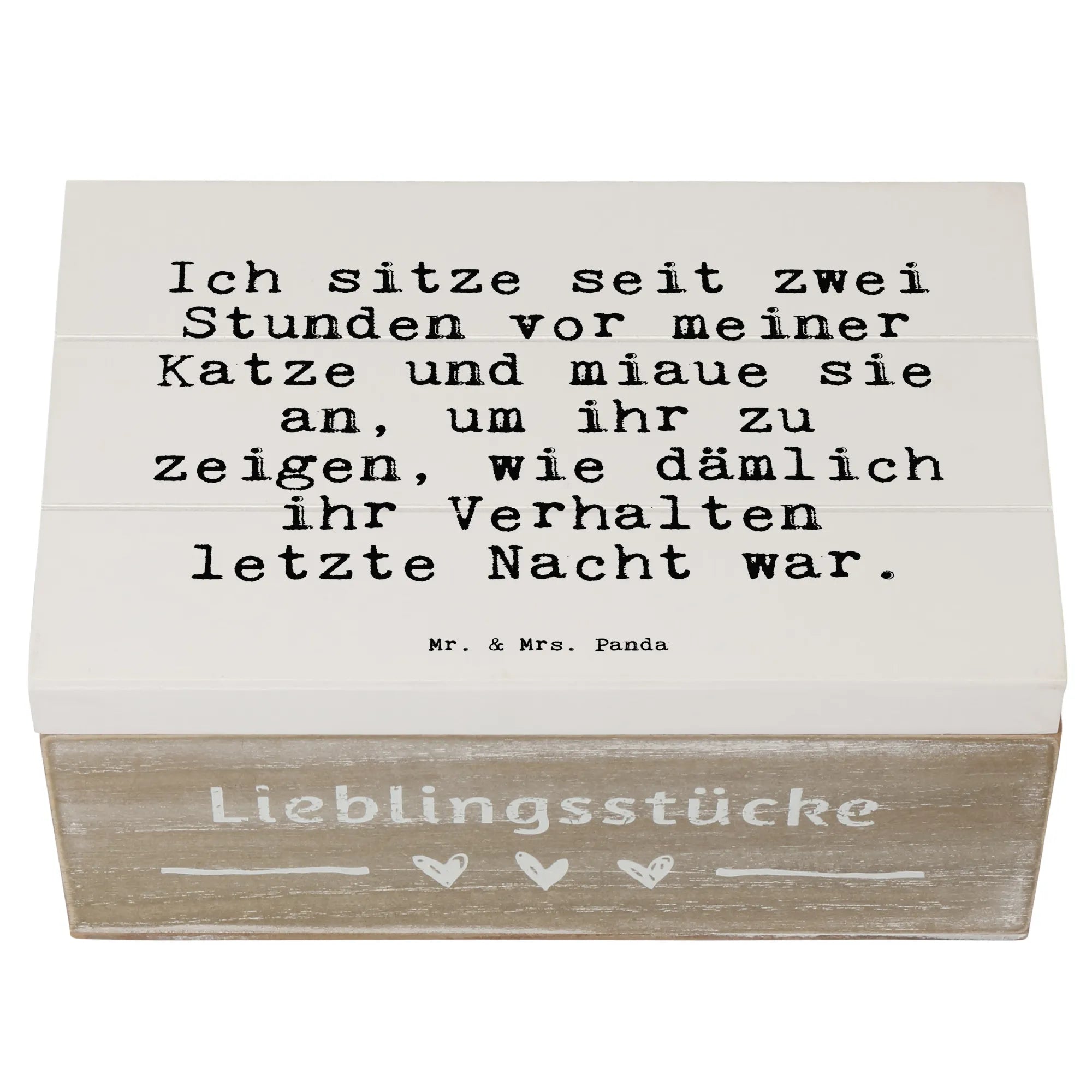 Entdecke die wunderbare Holzkiste von Mr. & Mrs. Panda mit dem witzigen Spruch: "Ich sitze seit zwei Stunden vor meiner Katze und miaue sie an, um ihr zu zeigen, wie dämlich ihr Verhalten letzte Nacht war." Diese einzigartige Kiste ist nicht nur ein ideales Aufbewahrungsort für all deine kleinen Schätze, sondern auch ein echter Hingucker.