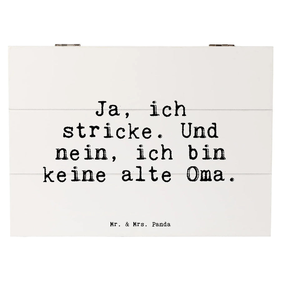 Entdecke die liebevoll gestaltete Holzkiste von Mr. & Mrs. Panda, die mit dem charmanten Spruch 'Ja, ich stricke. Und nein, ich bin keine alte Oma.' bedruckt ist. Diese Kiste ist nicht einfach nur irgendein Aufbewahrungsbehälter, sondern ein echtes Schmuckstück für alle Strick- und Häkelbegeisterten! Sie eignet sich hervorragend als Erinnerungsbox, um die schönsten Momente festzuhalten, sei es zur Kommunion, Konfirmation oder einfach zur Aufbewahrung von wertvollen Erinnerungen aus Deiner Kindheit.