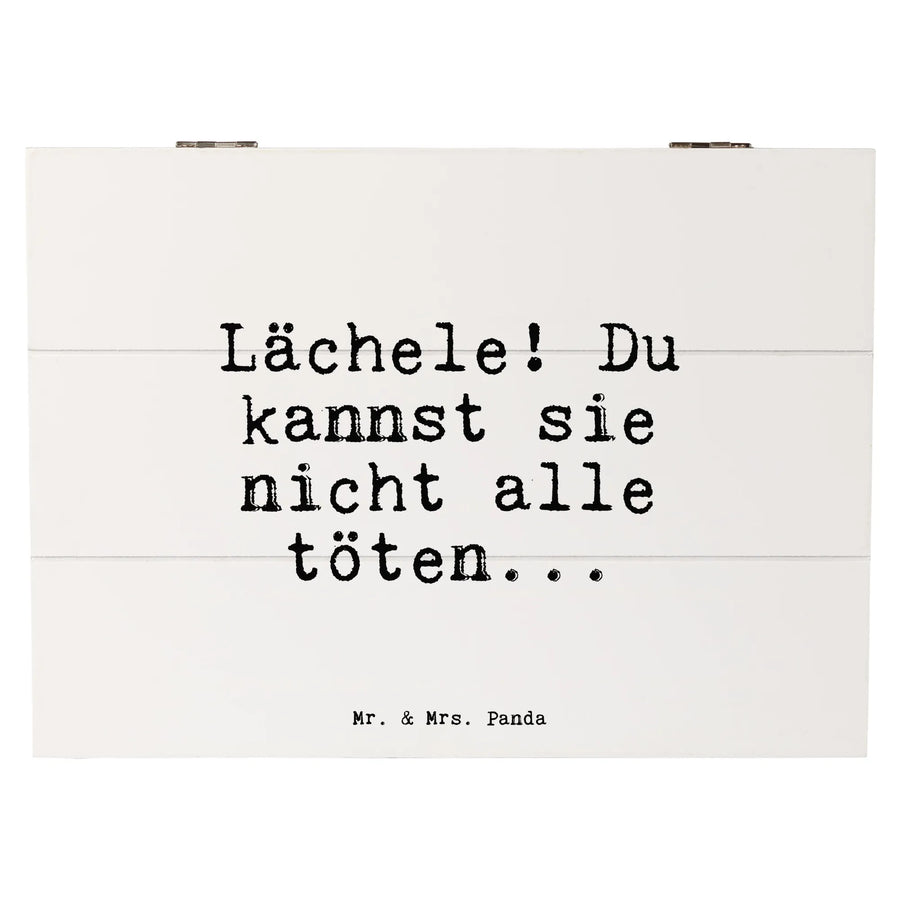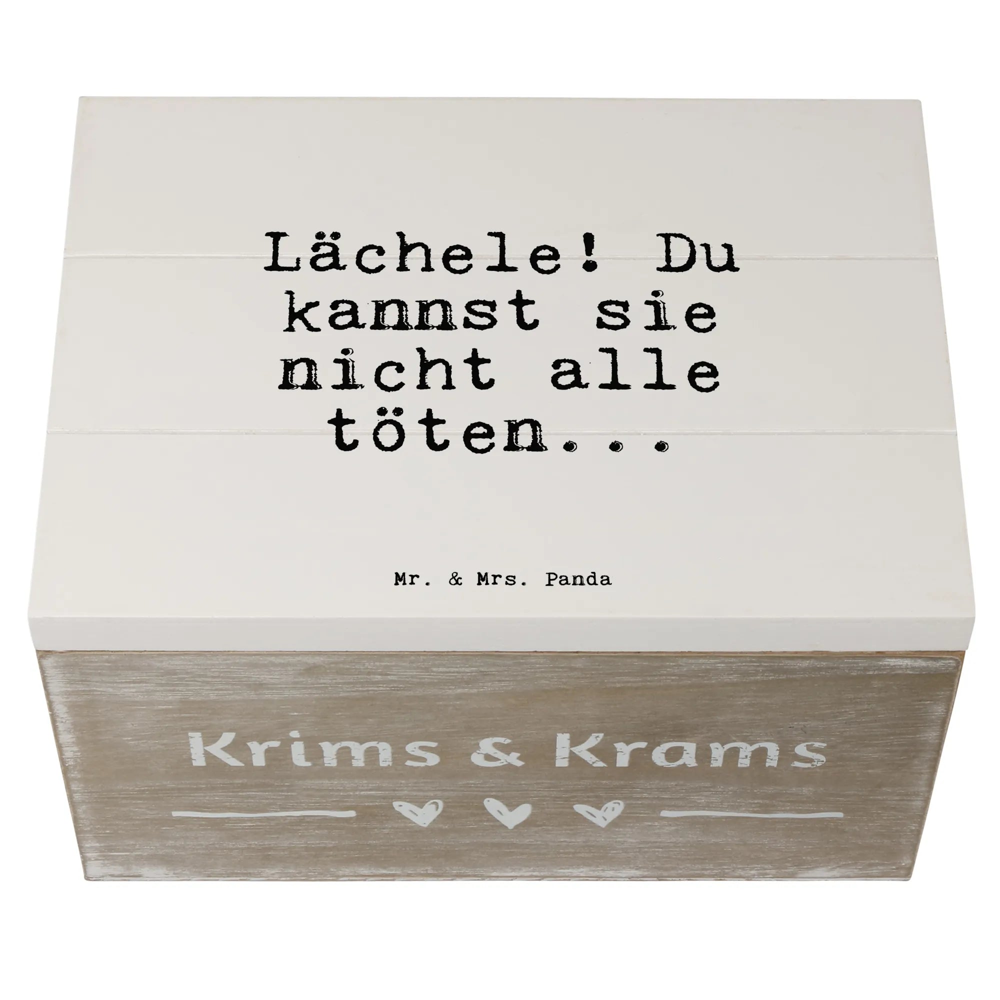 Mr. & Mrs. Panda Holzkiste mit Spruch „Lächle! Du kannst sie nicht alle töten...“ – eine humorvolle und praktische Holzbox, die sofort ins Auge fällt. Dieser freche Spruch auf dem Deckel sorgt für Lacher und passt perfekt zu Menschen mit schwarzem Humor oder denen, die das Leben mit einem Augenzwinkern nehmen.