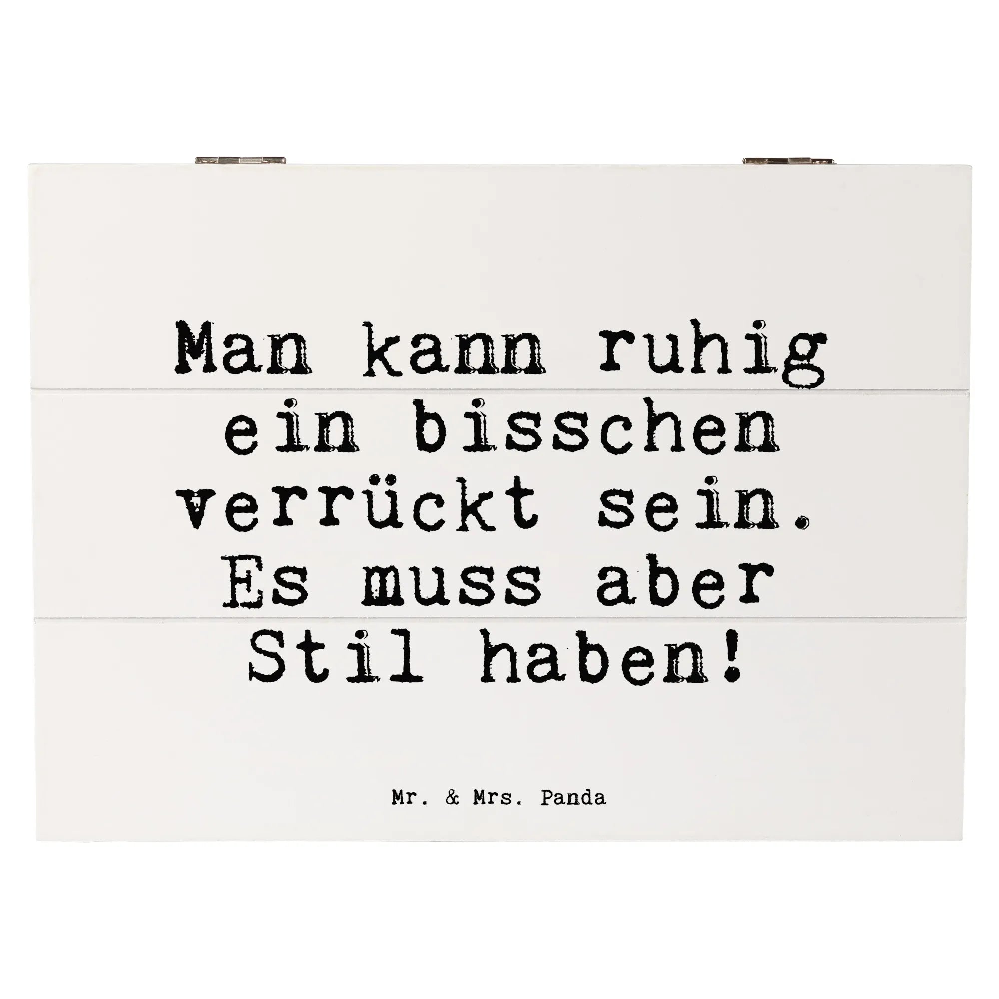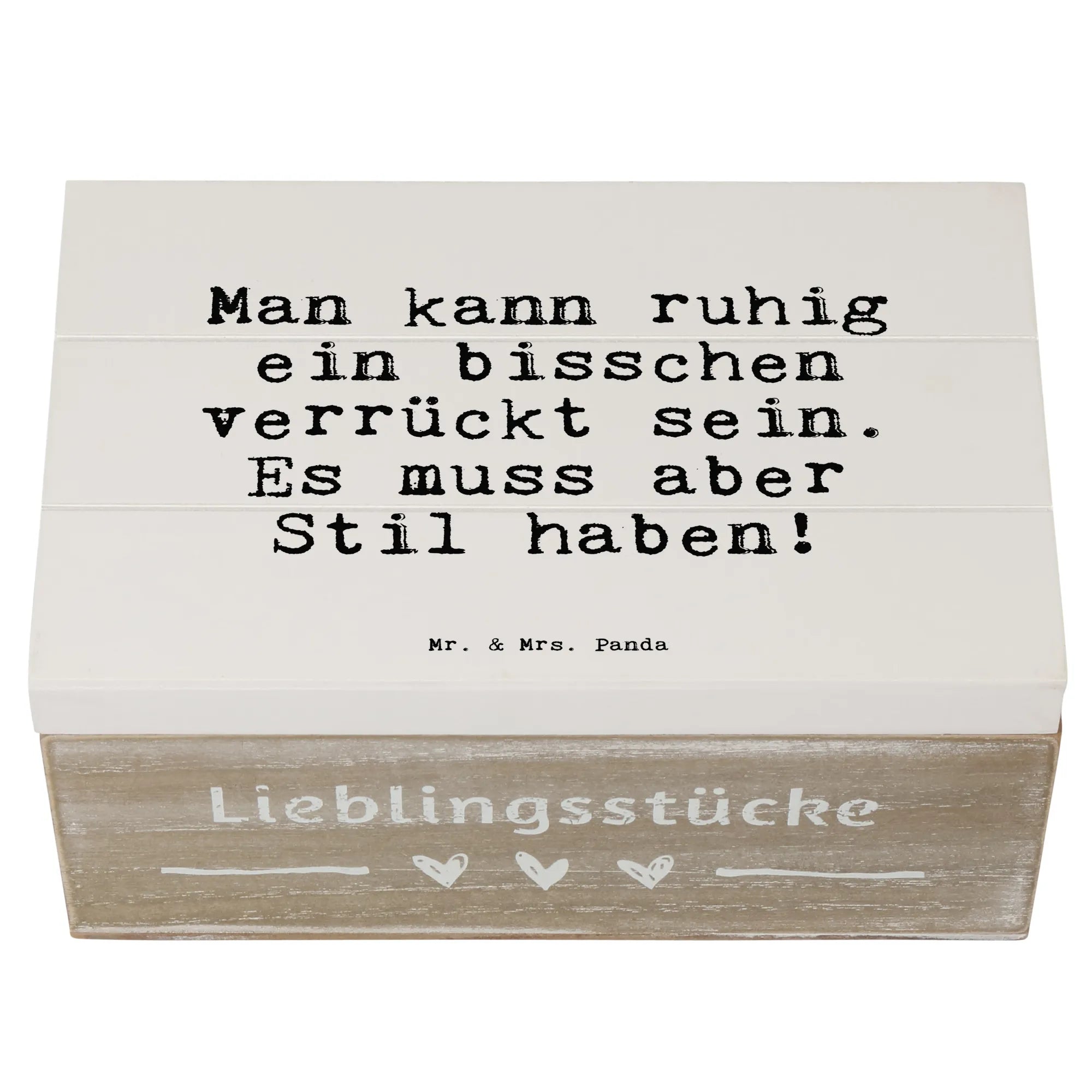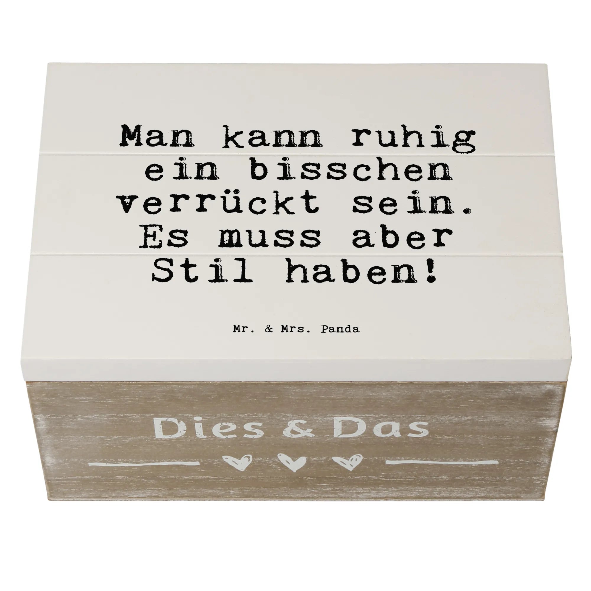 Eine wunderschöne Holzkiste von Mr. & Mrs. Panda – bedruckt mit dem frechen Spruch „Man kann ruhig ein bisschen verrückt sein. Es muss aber Stil haben!“. Diese Holzbox mit Deckel ist mehr als nur Aufbewahrung: Sie ist ein Statement, ein Lächeln und ein liebevolles Geschenk für Frauen mit Stil. Ideal als Geschenk für die Freundin, zum Junggesellinnenabschied oder einfach als besondere Aufmerksamkeit.