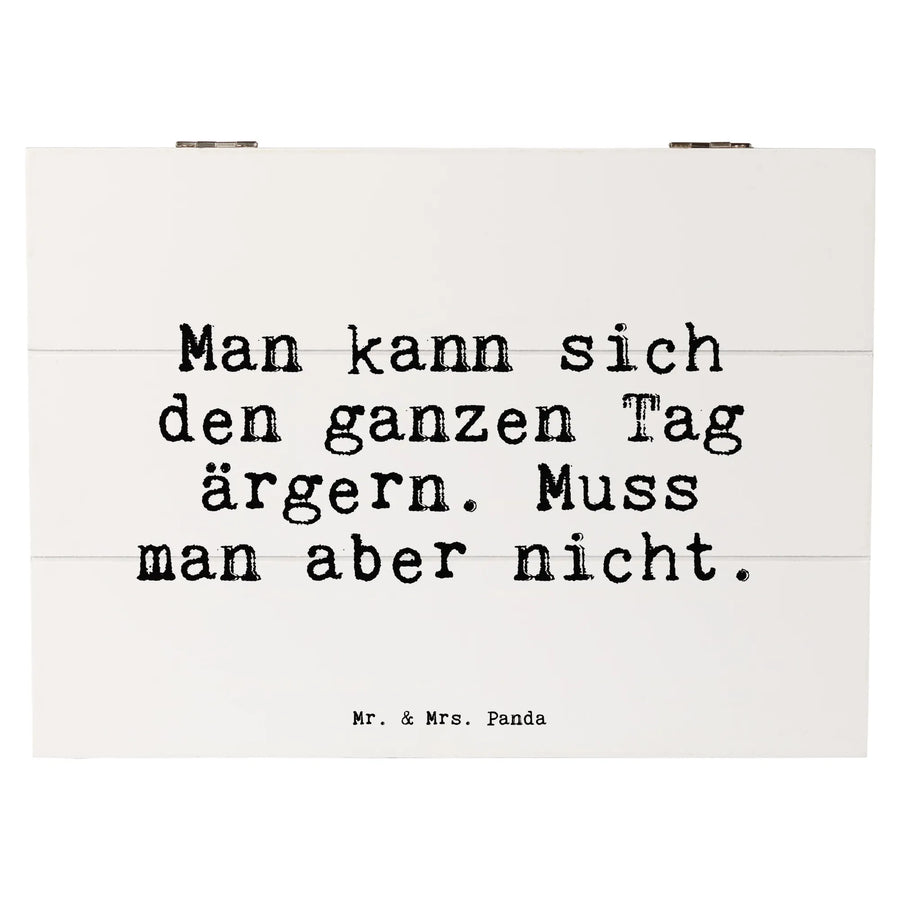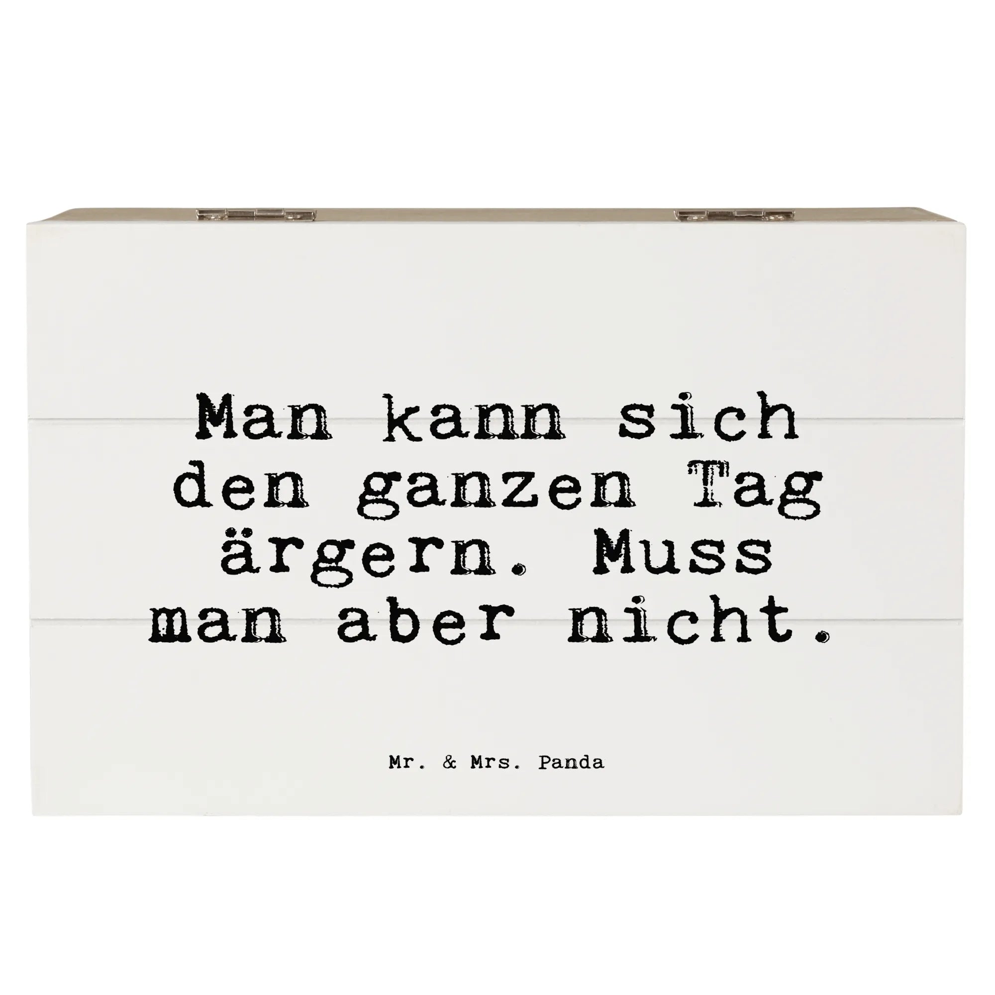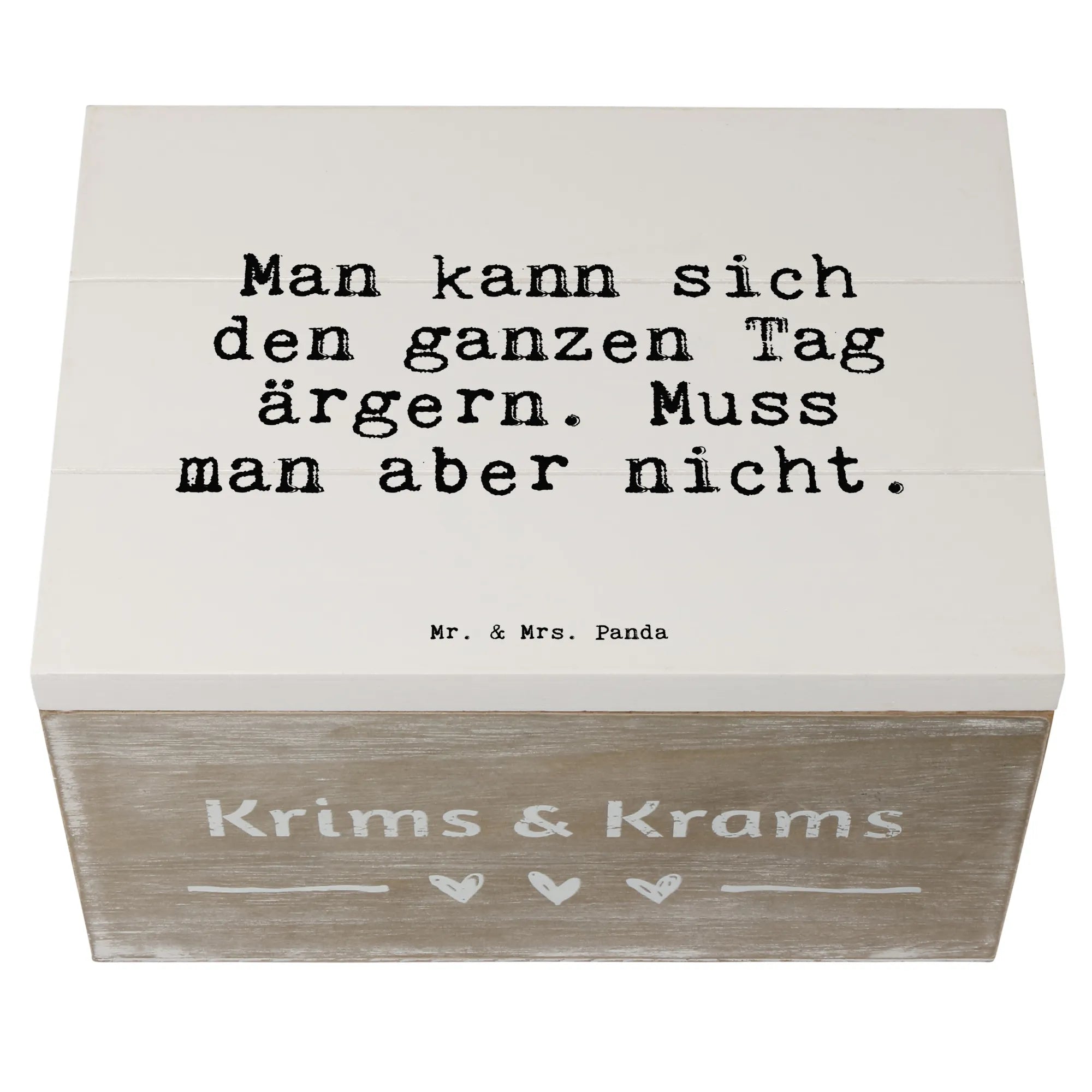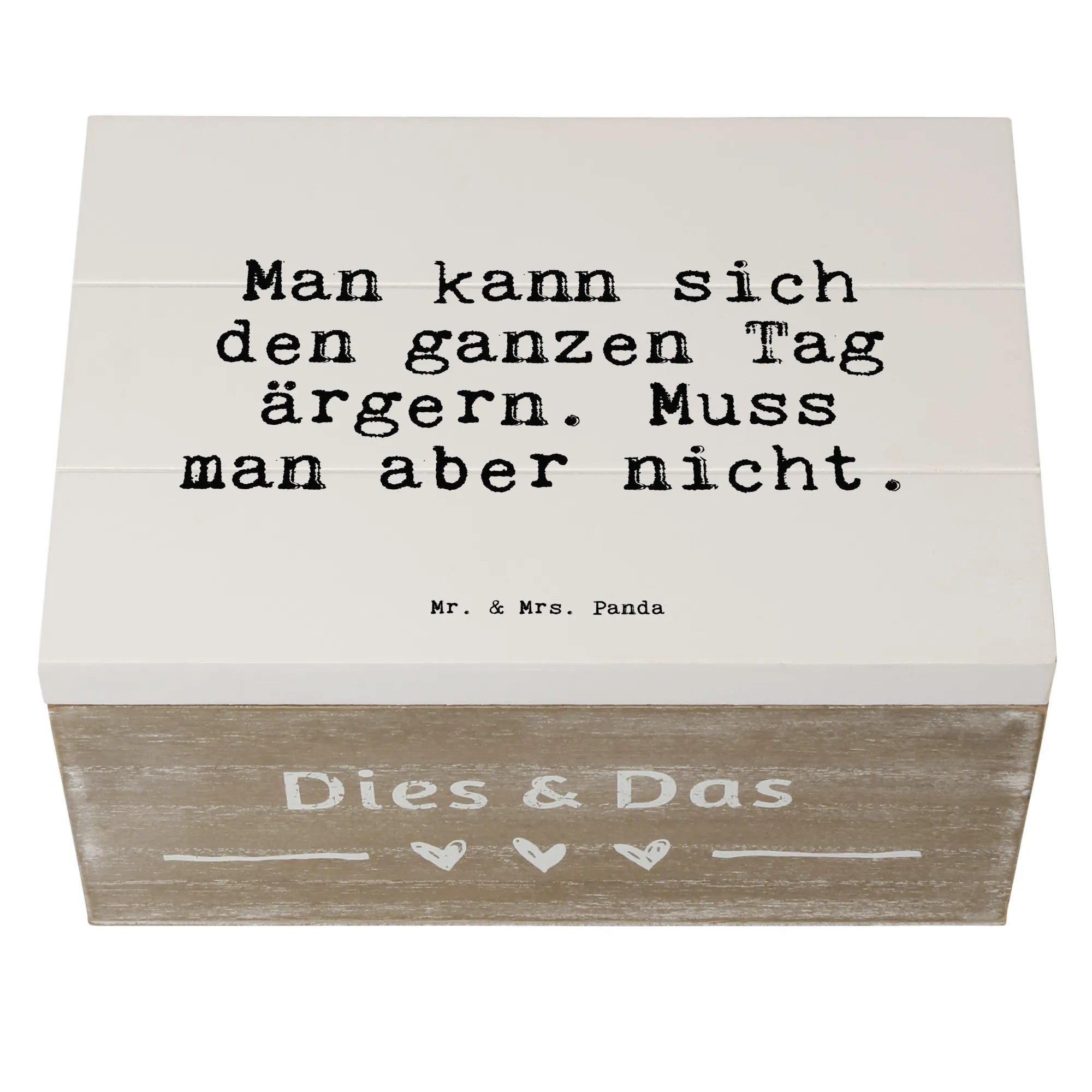 Die Holzkiste mit dem lustigen Spruch „Man kann sich den ganzen Tag ärgern. Muss man aber nicht.“ von Mr. & Mrs. Panda ist das perfekte Geschenk für Freunde, Kollegen und Familie. Diese wunderschöne und robuste Holzkiste aus Hartfaser bietet tollen Platz für all die kostbaren Erinnerungen und Schätze, die man im Leben sammelt. Ob Fotos von besonderen Anlässen, kleine Geschenke oder andere persönliche Gegenstände – diese Kiste bewahrt die schönsten Erinnerungen stilvoll auf.
