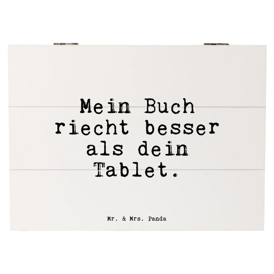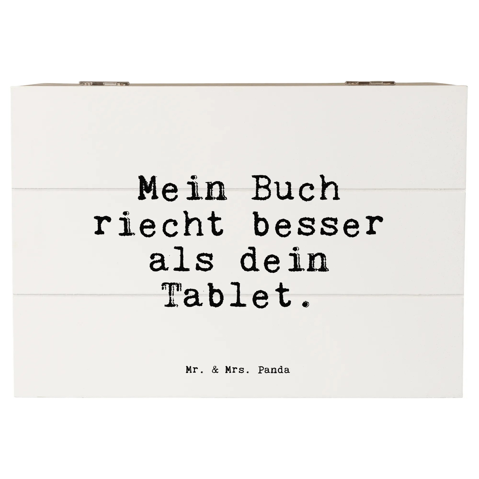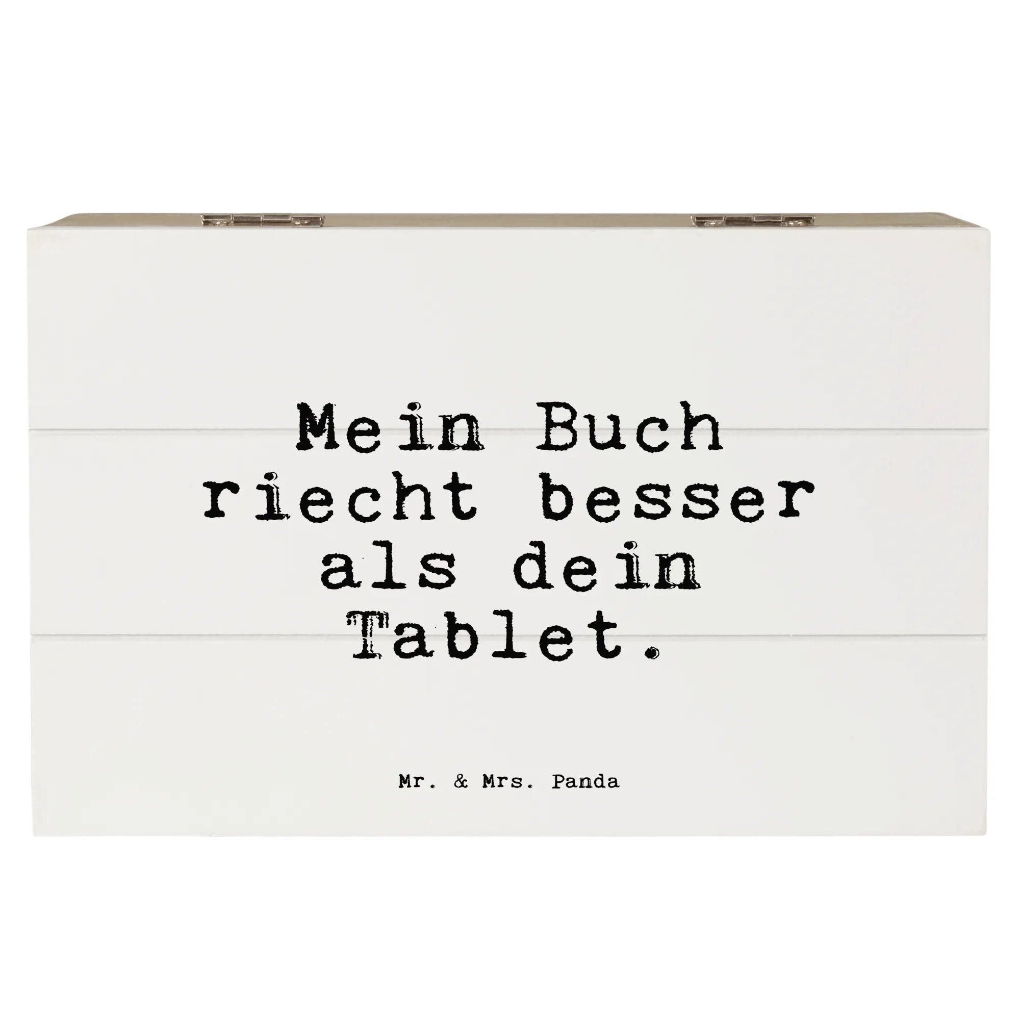 Die wunderschöne Holzkiste 'Mein Buch riecht besser als dein Tablet.' von Mr. & Mrs. Panda ist das perfekte Geschenk für alle Bücherliebhaber und Leseratten. Mit einem charmanten Spruch gestaltet,