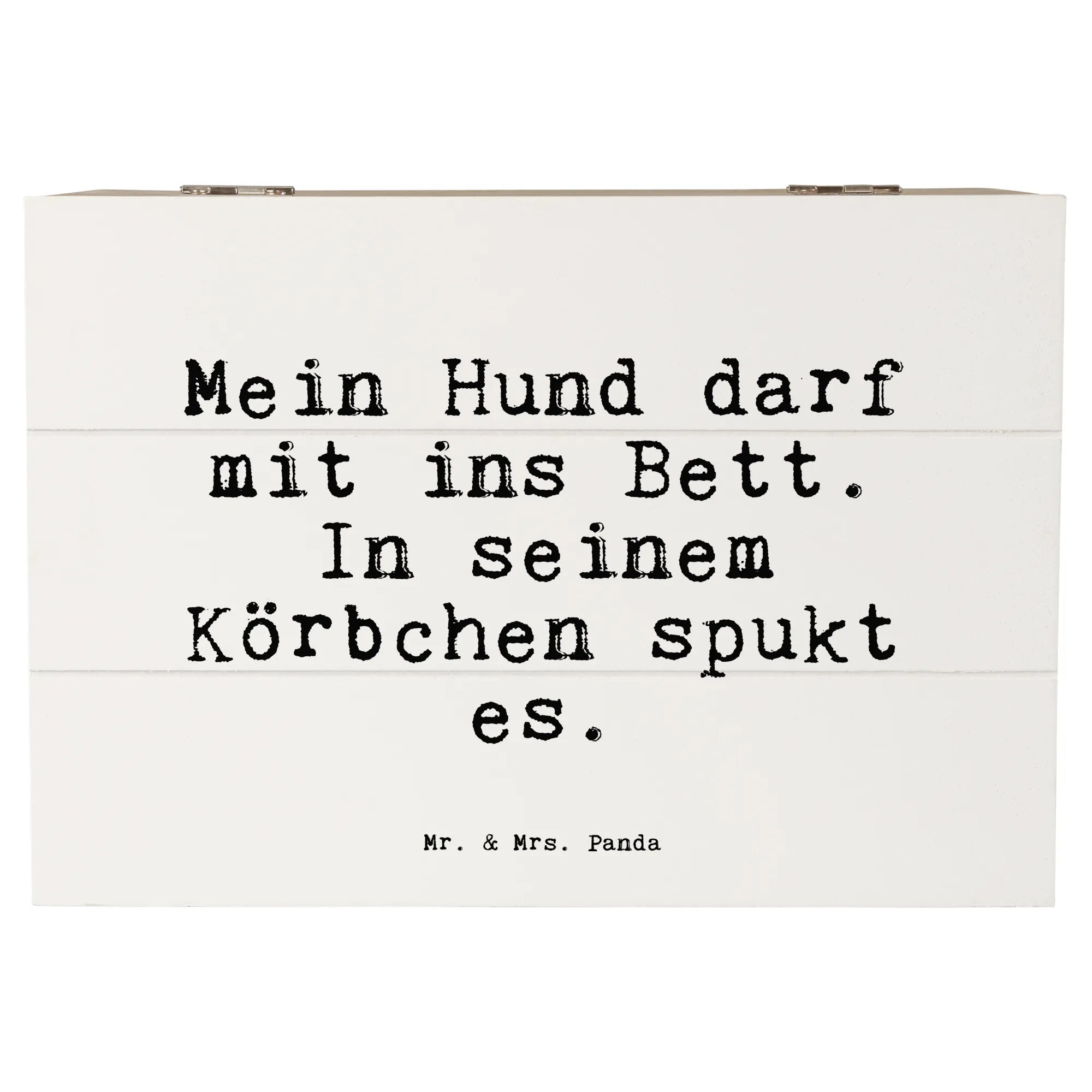 Die Holzkiste "Mein Hund darf mit ins Bett. In seinem Körbchen spukt es." von Mr. & Mrs. Panda ist das perfekte Geschenk für alle Hundeliebhaber. Diese wunderschöne Holzkiste aus stabiler Premium Hartfaser ist nicht nur ein echter Blickfang, sondern auch äußerst praktisch. Ob als Aufbewahrungsort für wertvolle Schätze, Erinnerungen, Fotos oder als Dekokiste für das Zuhause – sie macht immer eine gute Figur!