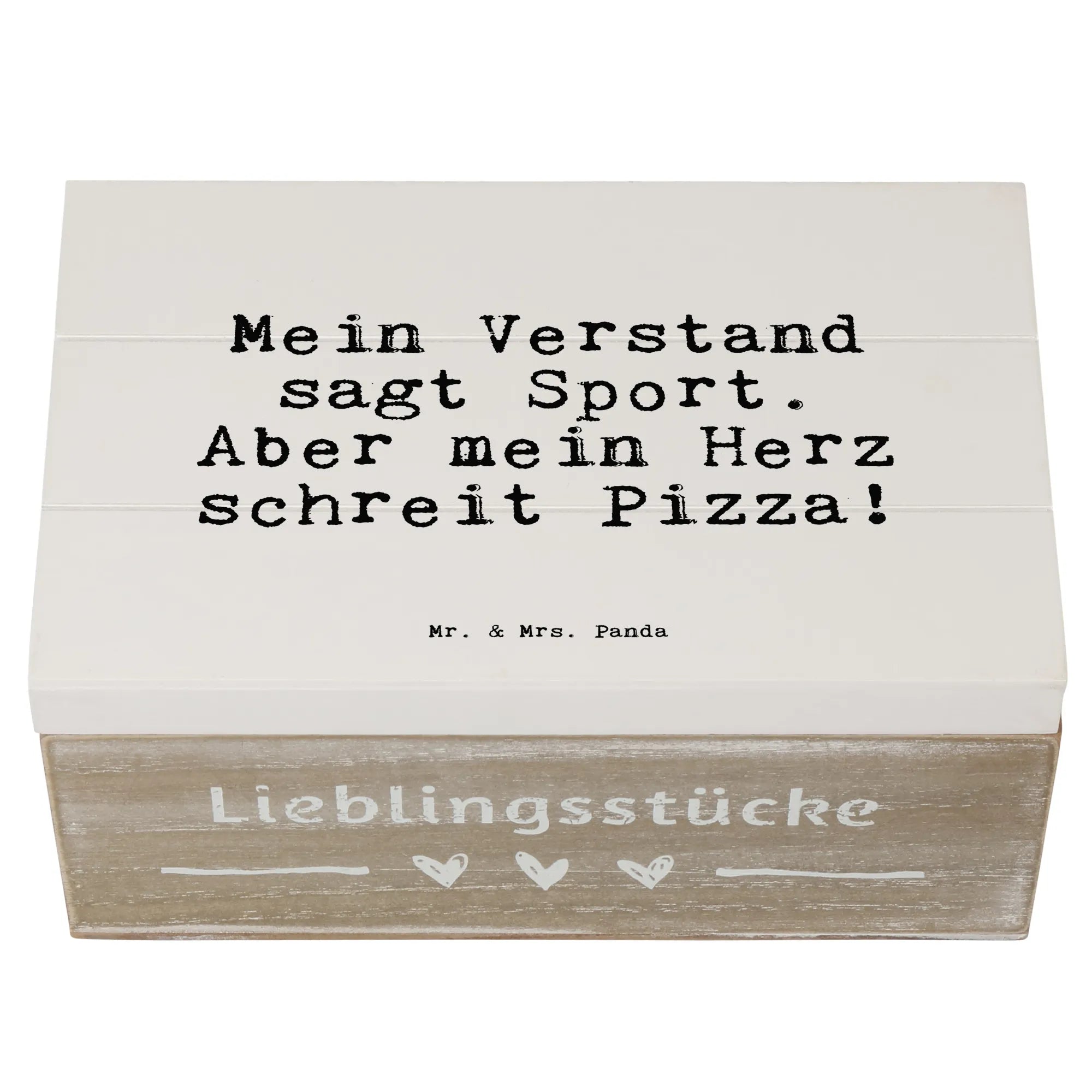 Die perfekte Holzkiste von Mr. & Mrs. Panda – ein wahres Schmuckstück für alle, die das Leben mit einem Augenzwinkern genießen! Die Kiste mit dem witzigen Spruch "Mein Verstand sagt Sport. Aber mein Herz schreit Pizza!" bringt jede Menge Freude und wird schnell zum herzlichen Aufbewahrungsort für all deine kleinen Schätze.