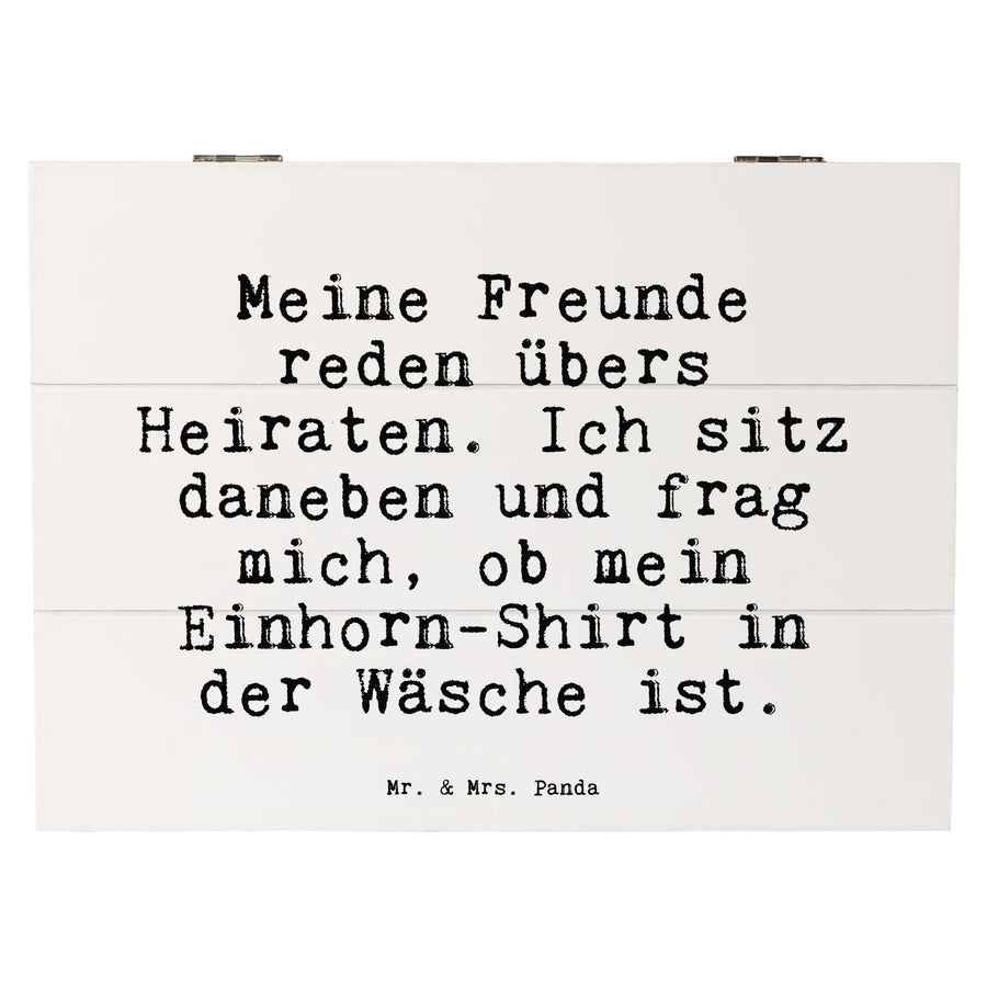 Holzkiste Sprüche und Zitate Meine Freunde reden übers Heiraten. Ich sitz daneben und frag mich, ob mein Einhorn-Shirt in der Wäsche ist. - 25 x 18 cm - Hartfaser