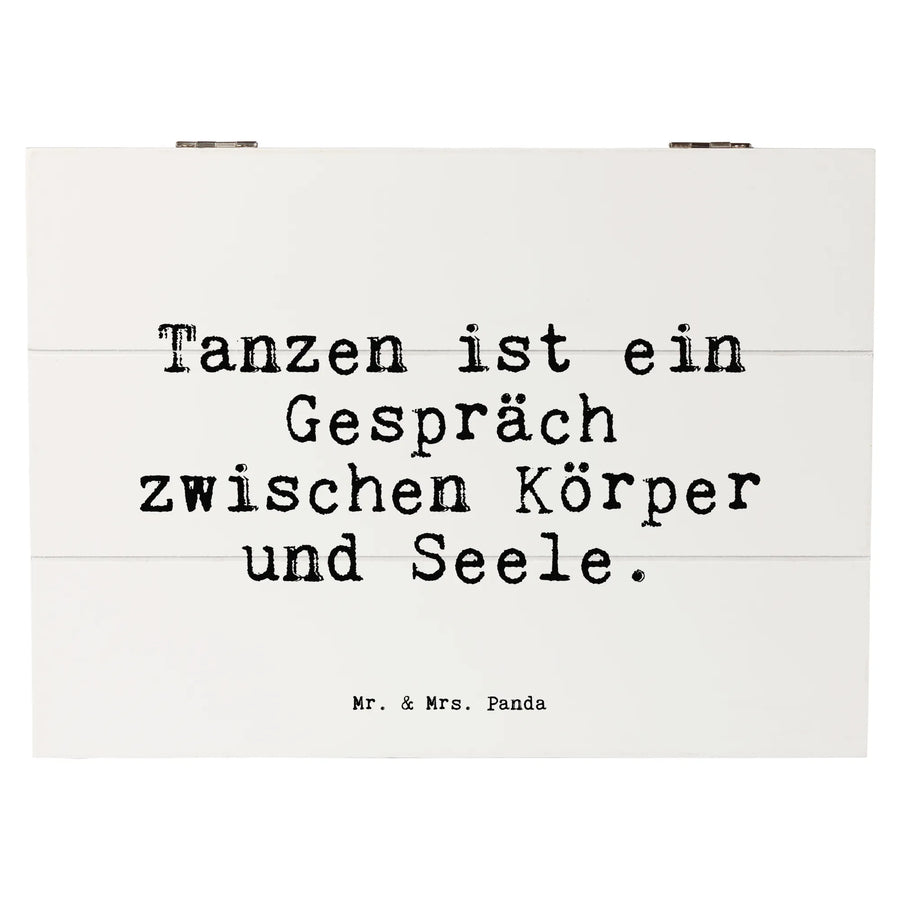 Die wunderschöne Holzkiste von Mr. & Mrs. Panda mit dem liebevollen Spruch 'Tanzen ist ein Gespräch zwischen Körper und Seele.' ist das perfekte Geschenk für alle Tanzbegeisterten und Partygänger. Diese Erinnerungsbox bietet nicht nur einen stilvollen Aufbewahrungsort für Deine wertvollen Schätze, sondern wird auch zum Blickfang in jedem Raum.