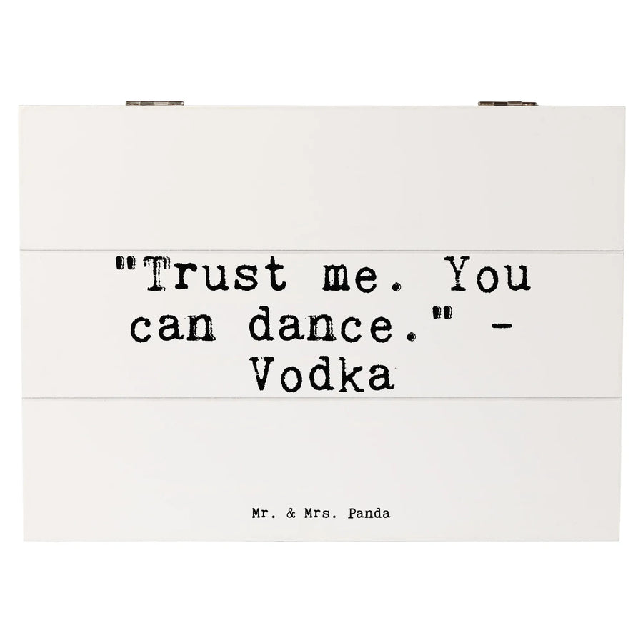 Die wunderschöne Holzkiste "Trust me. You can dance." - Vodka ist das perfekte Geschenk für all diejenigen, die eine leidenschaftliche Liebe zum Feiern, zur Musik und zum Tanzen haben. Ob zur Hochzeit, zum Geburtstag oder einfach als Überraschung für einen besonderen Menschen in deinem Leben – diese Erinnerungsbox von Mr. & Mrs. Panda ist eine kreative und liebevolle Möglichkeit, besondere Momente festzuhalten.