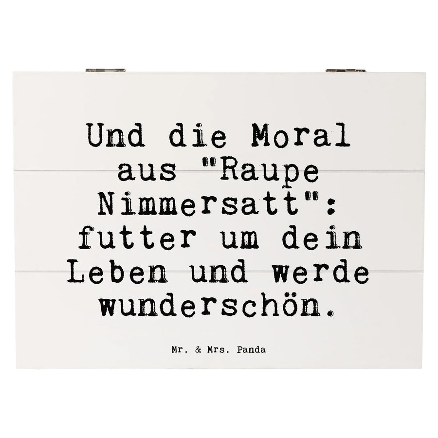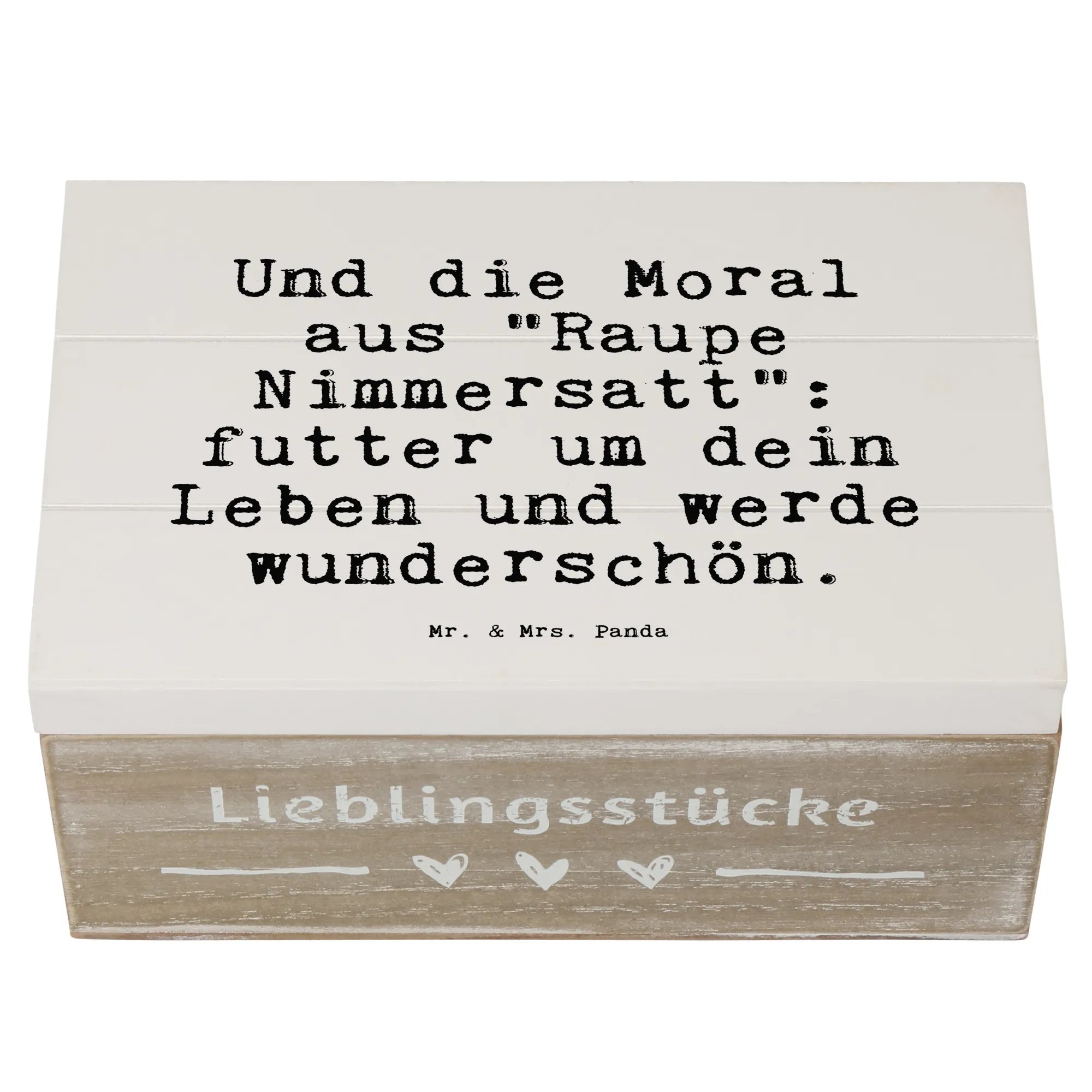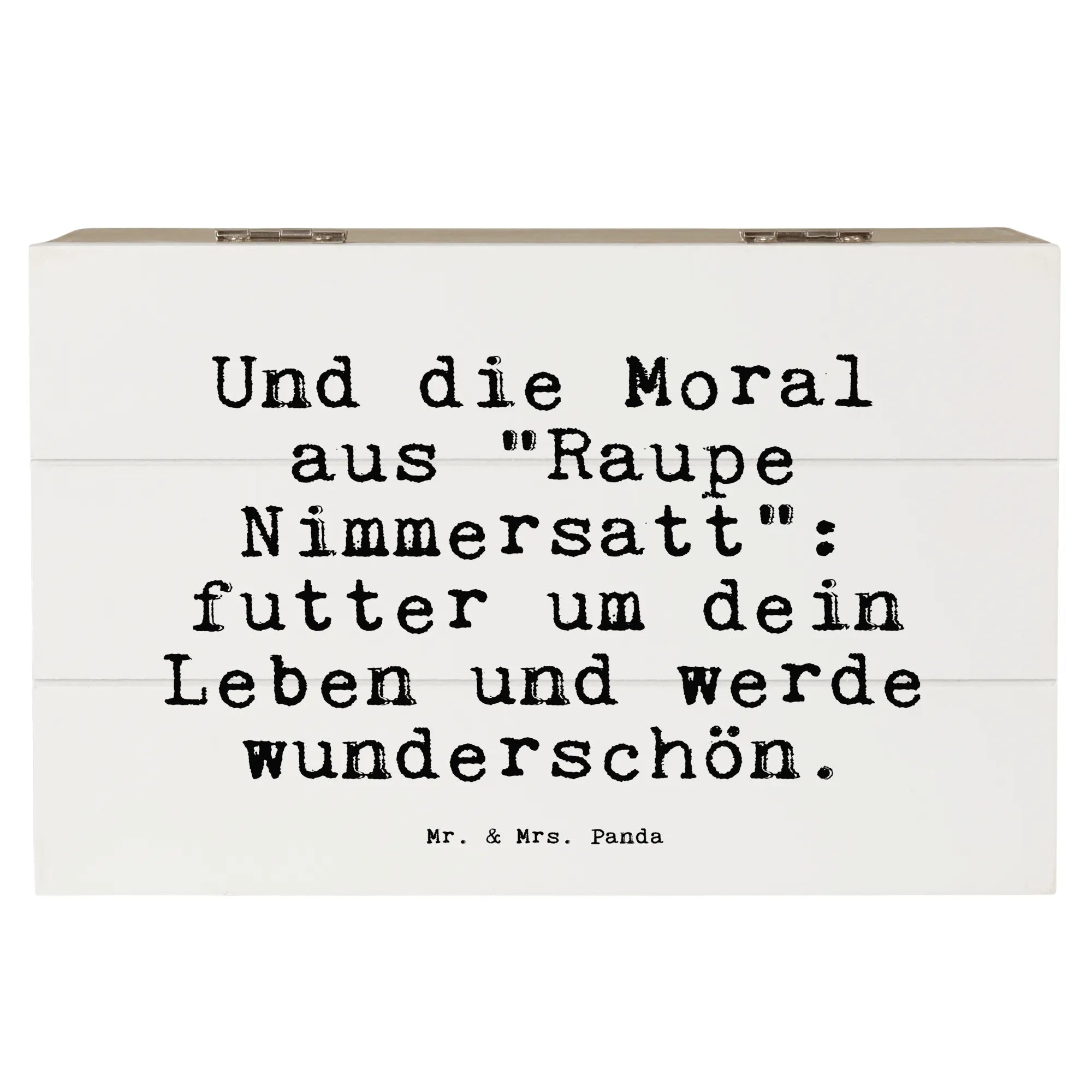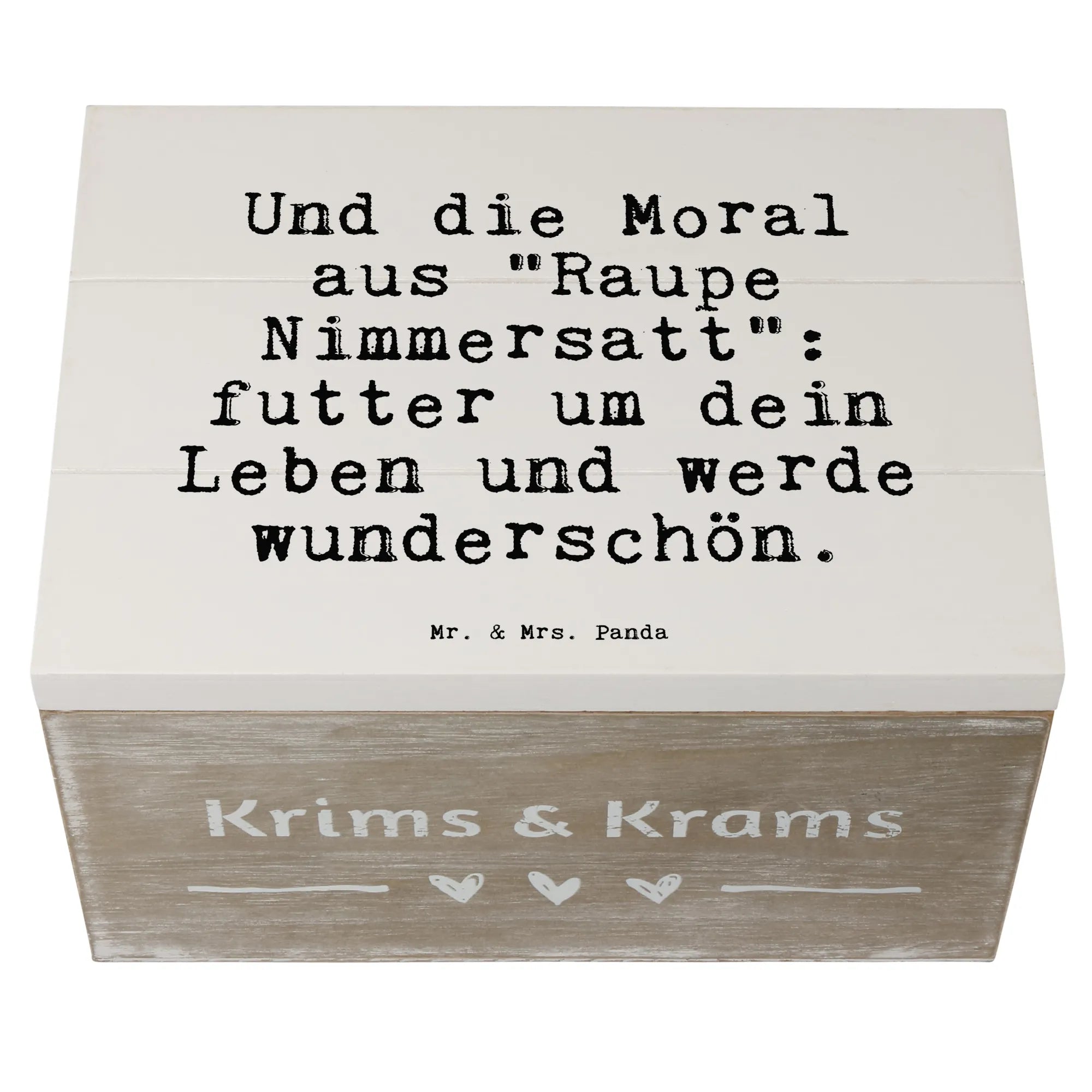 Die wunderschöne Holzkiste "Und die Moral aus 'Raupe Nimmersatt': futter um dein Leben und werde wunderschön." von Mr. & Mrs. Panda ist das perfekte Geschenk für alle, die das Leben mit einem Augenzwinkern betrachten. Egal, ob für Deine beste Freundin, Deine Frau oder jemanden, der gerade eine Diät macht und Motivation braucht, diese Kiste ist ein toller Begleiter.