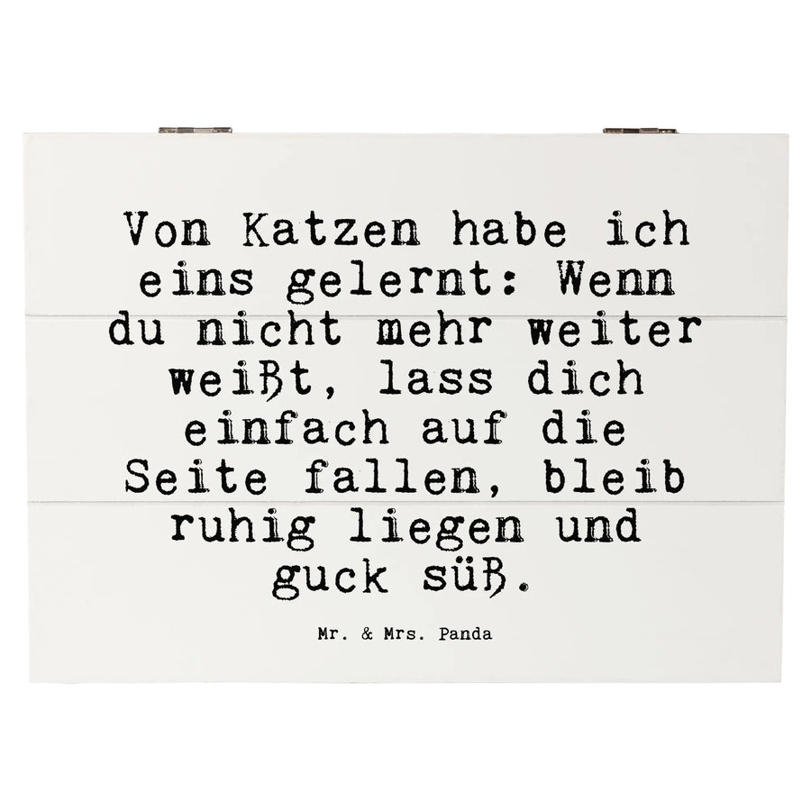 Holzkiste Sprüche und Zitate Von Katzen habe ich eins gelernt: Wenn du nicht mehr weiter weißt, lass dich einfach auf die Seite fallen, bleib ruhig liegen und guck süß. - 25 x 18 cm - Hartfaser