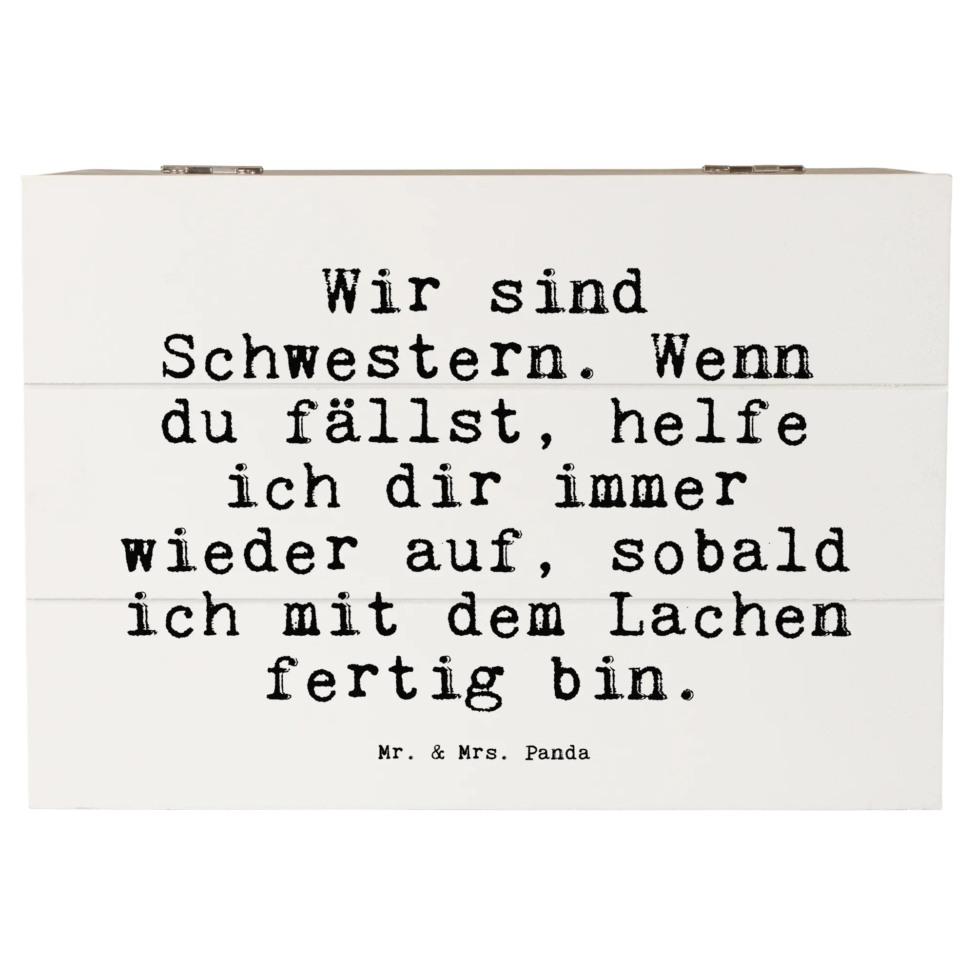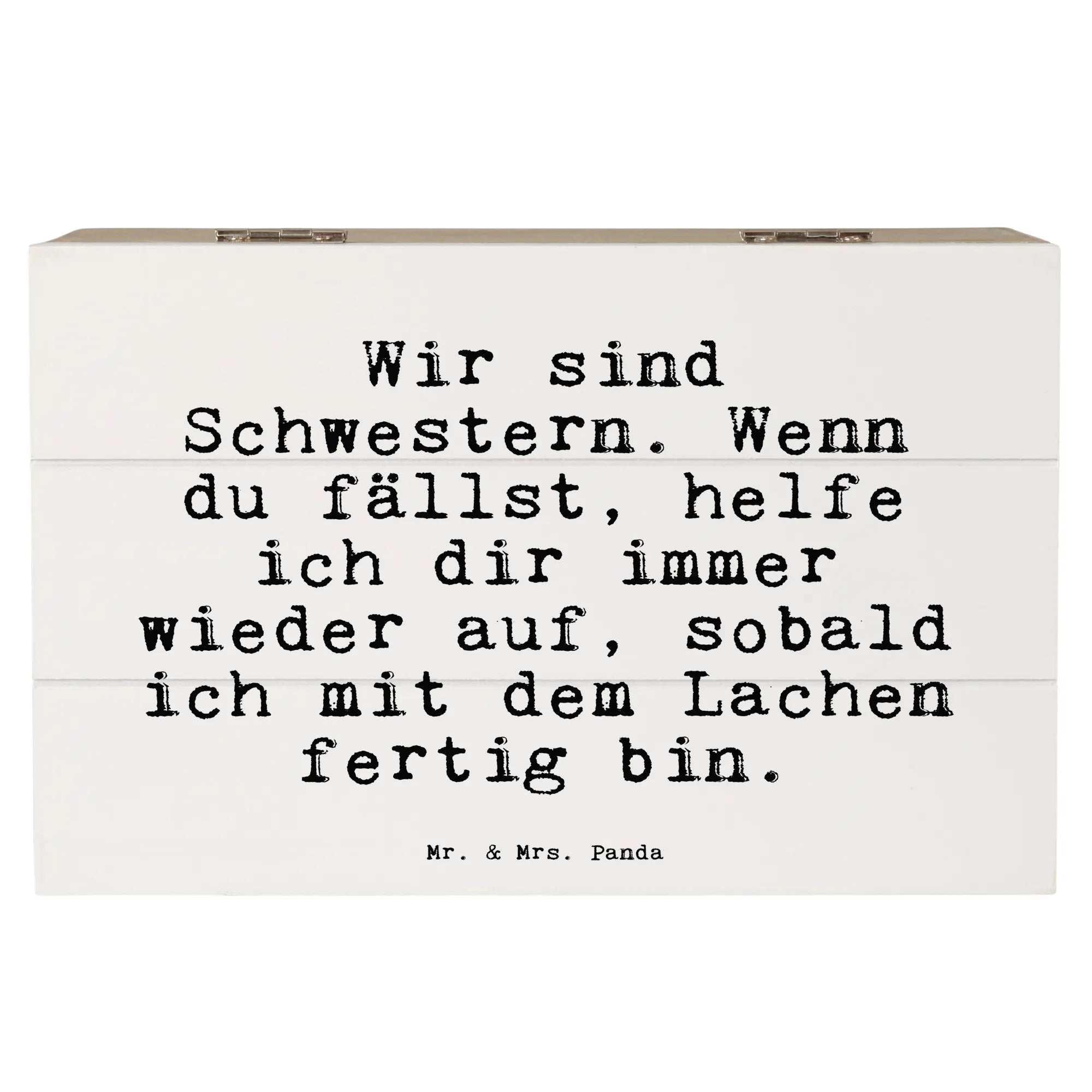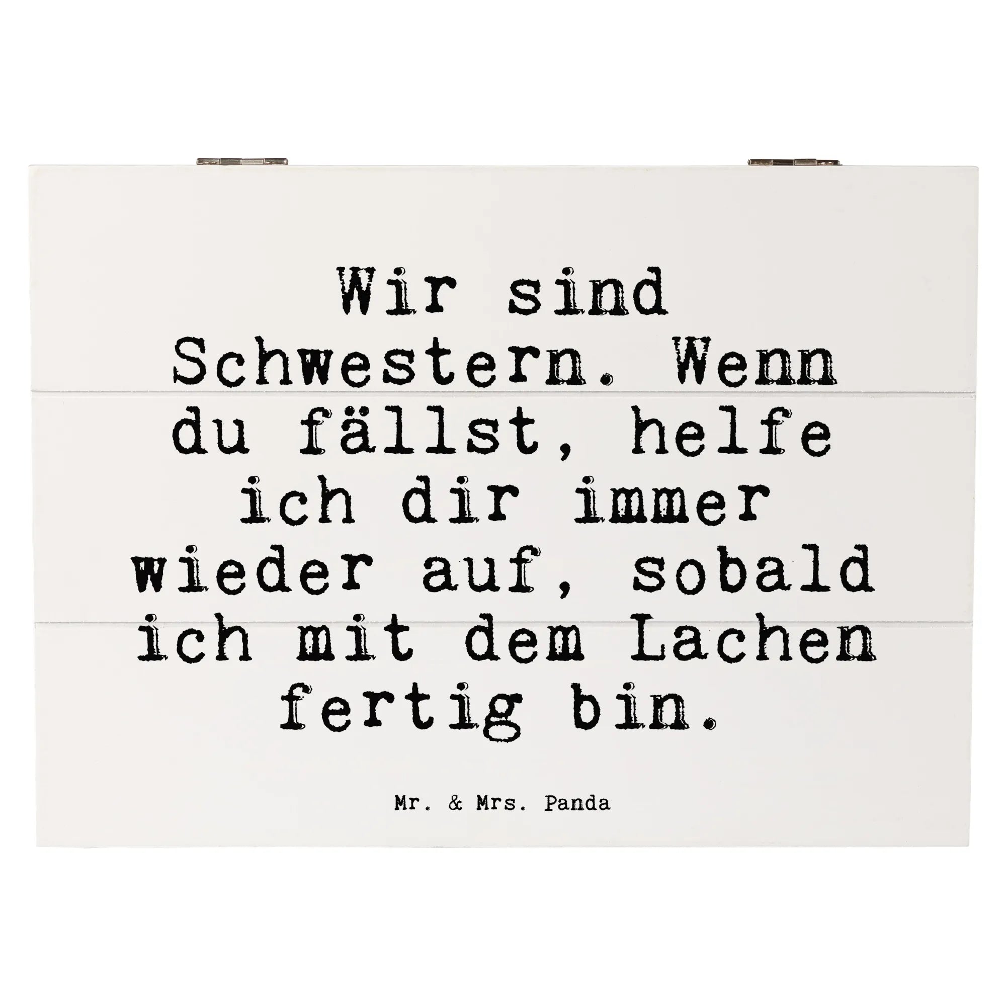 Die wunderschöne Holzkiste von Mr. & Mrs. Panda ist das perfekte Geschenk für Schwestern und beste Freundinnen. Mit dem liebevollen Spruch "Wir sind Schwestern. Wenn du fällst, helfe ich dir immer wieder auf, sobald ich mit dem Lachen fertig bin." bringt diese Kiste nicht nur Freude, sondern auch eine Botschaft von Zusammenhalt und Unterstützung.