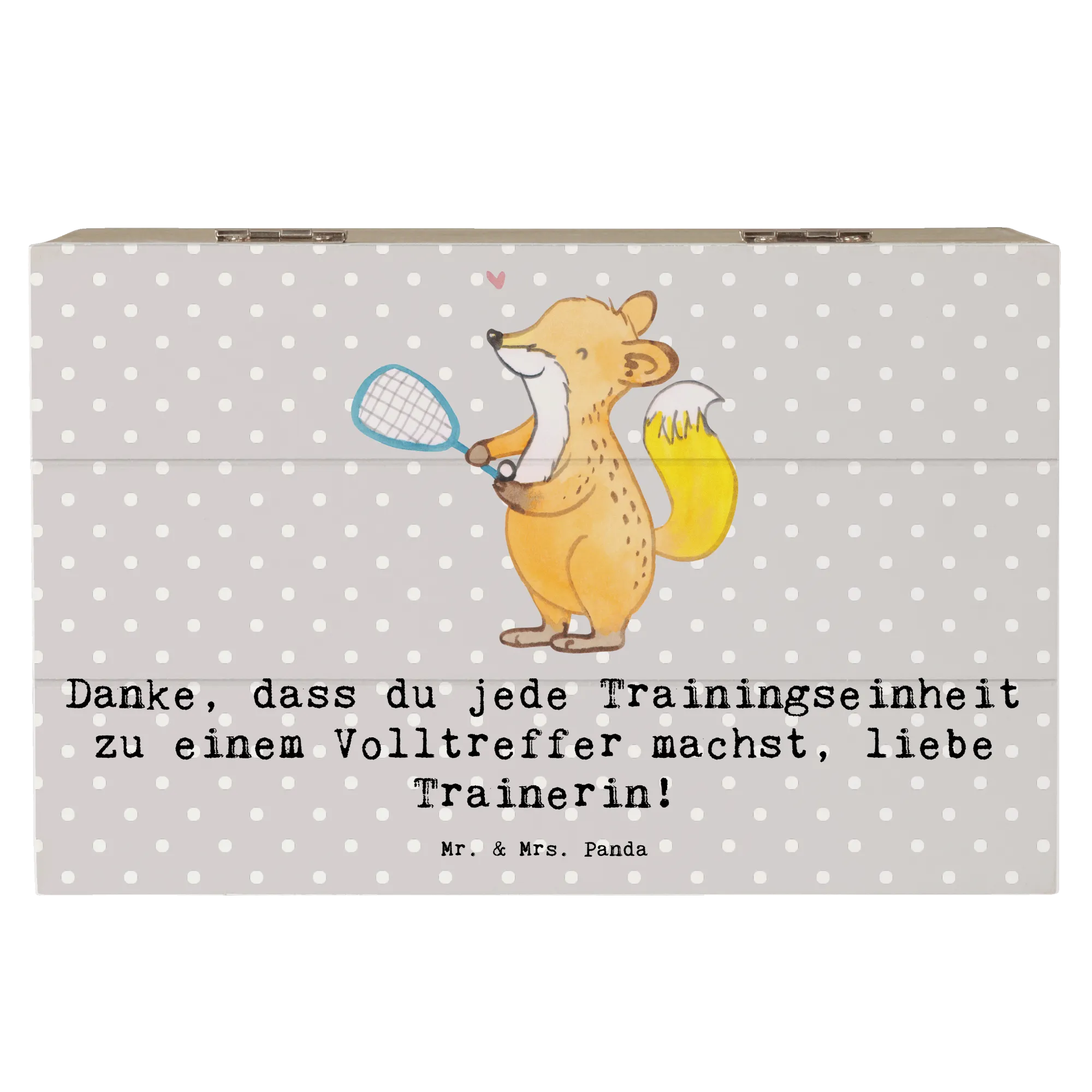 Auf der Vorderseite der Kiste prangt der liebevoll gestaltete Spruch: "Danke, dass du jede Trainingseinheit zu einem Volltreffer machst, liebe Trainerin!" – ein perfektes Zeichen der Wertschätzung für all die Mühe, die deine Trainerin in ihre sportliche Arbeit steckt. Du kannst dir sicher sein, dass diese einladende Kiste nicht nur praktisch ist, sondern auch ein echtes Unikat, das deine Trainerin mit Stolz zeigen kann.