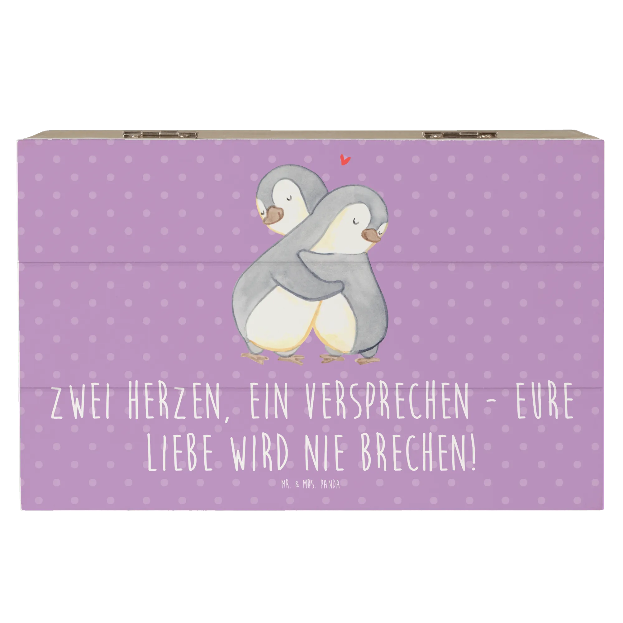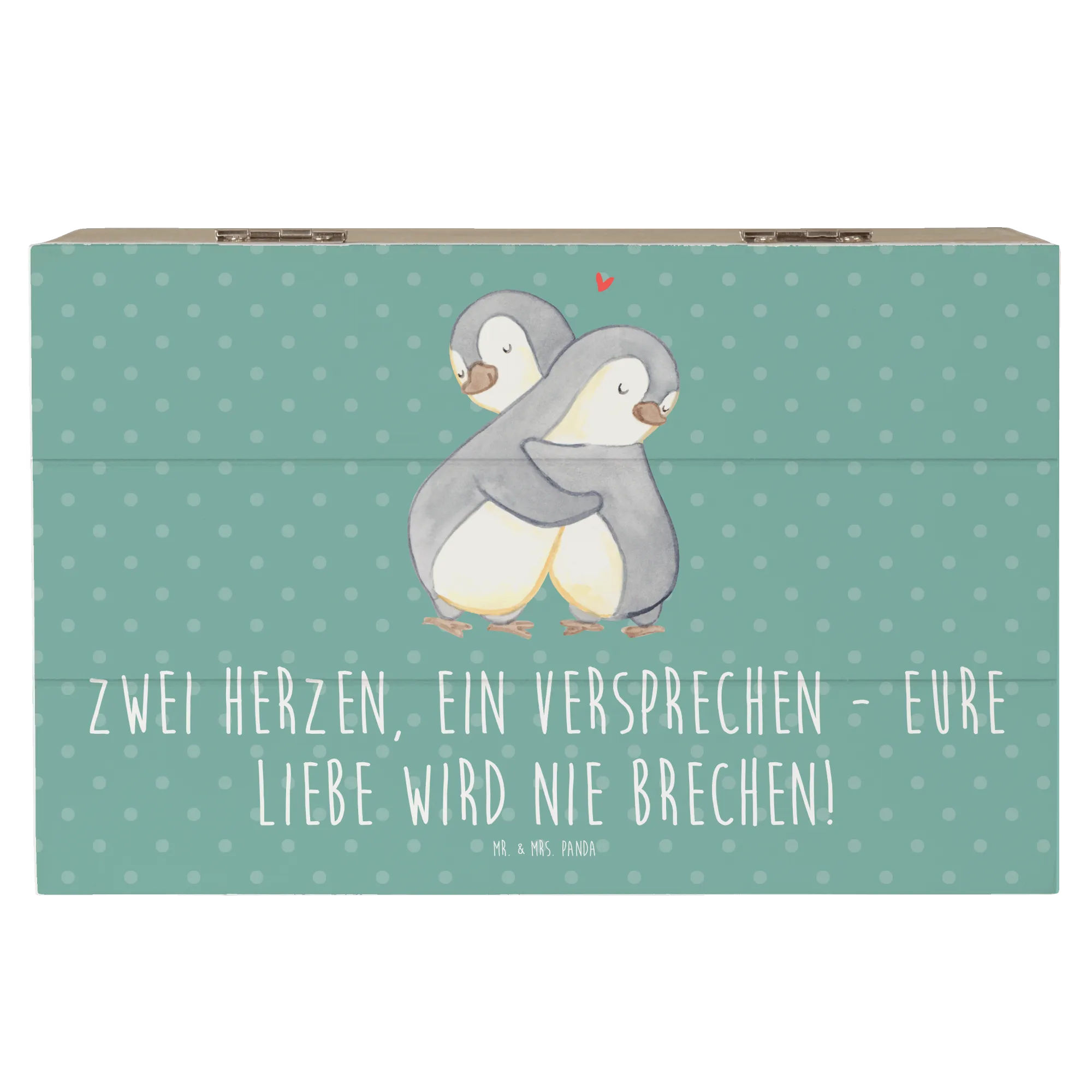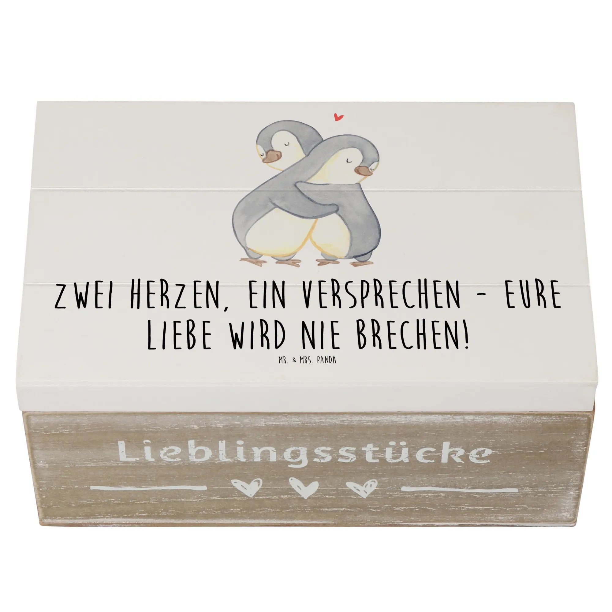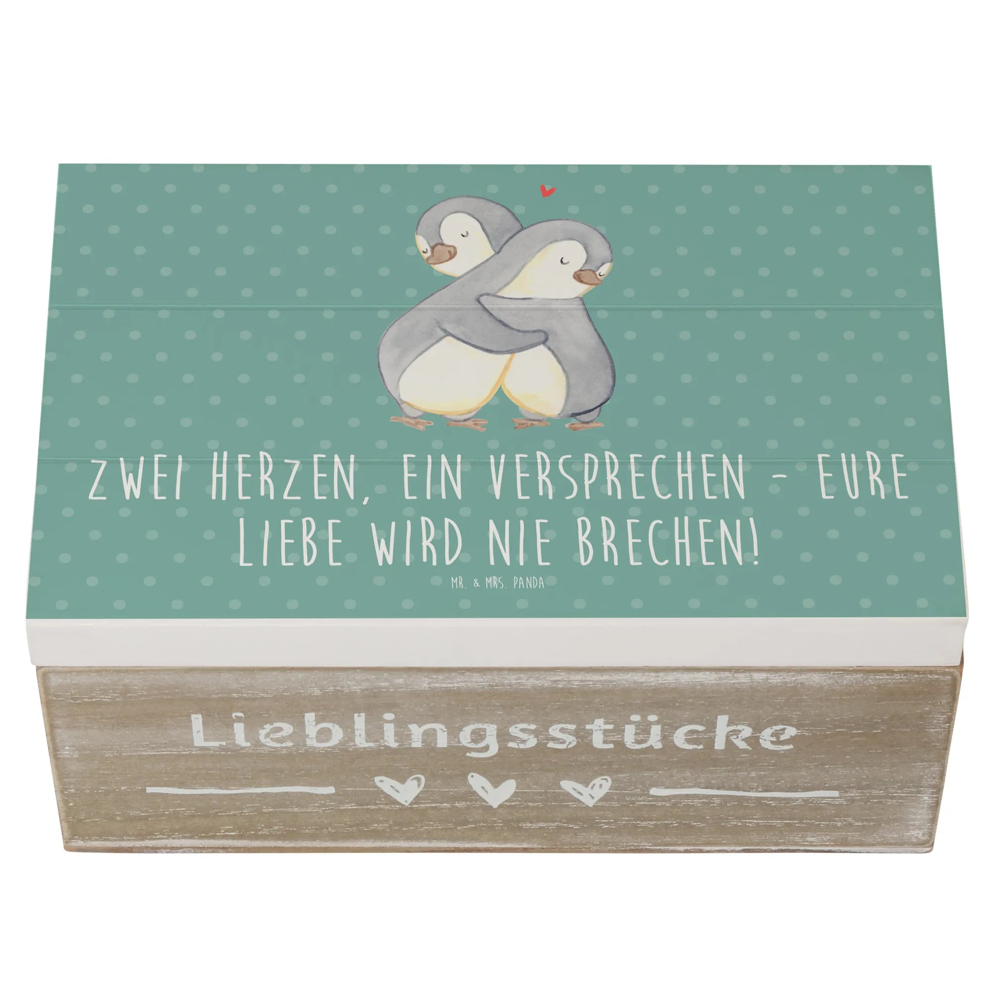 Entdecke die zauberhafte Holzkiste von Mr. & Mrs. Panda, die perfekte Erinnerungskiste für eure standesamtliche Trauung! Diese wunderschöne, robuste Holzkiste ist nicht nur ein stilvoller Aufbewahrungsort für all eure besonderen Momente, sondern auch ein einzigartiges Hochzeitsgeschenk, das Herzen berührt. Mit dem liebevollen Motto "Zwei Herzen, ein Versprechen - Eure Liebe wird nie brechen!" wird diese Schatzkiste zum Symbol für eure ewige Verbundenheit.