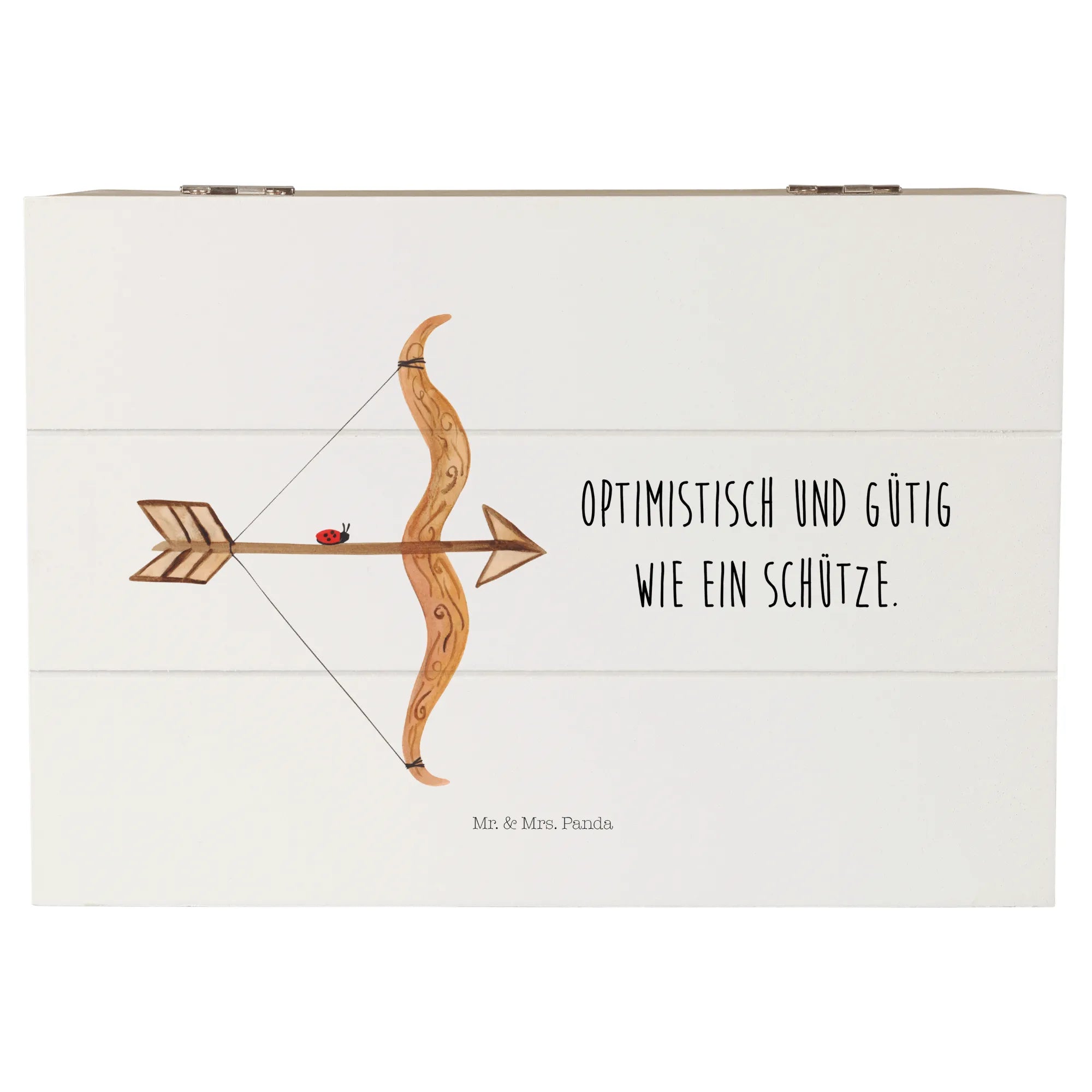 Entdecke die wunderschöne Holzkiste von Mr. & Mrs. Panda, die perfekt für alle Schützen-Geborenen und ihre Lieben ist!