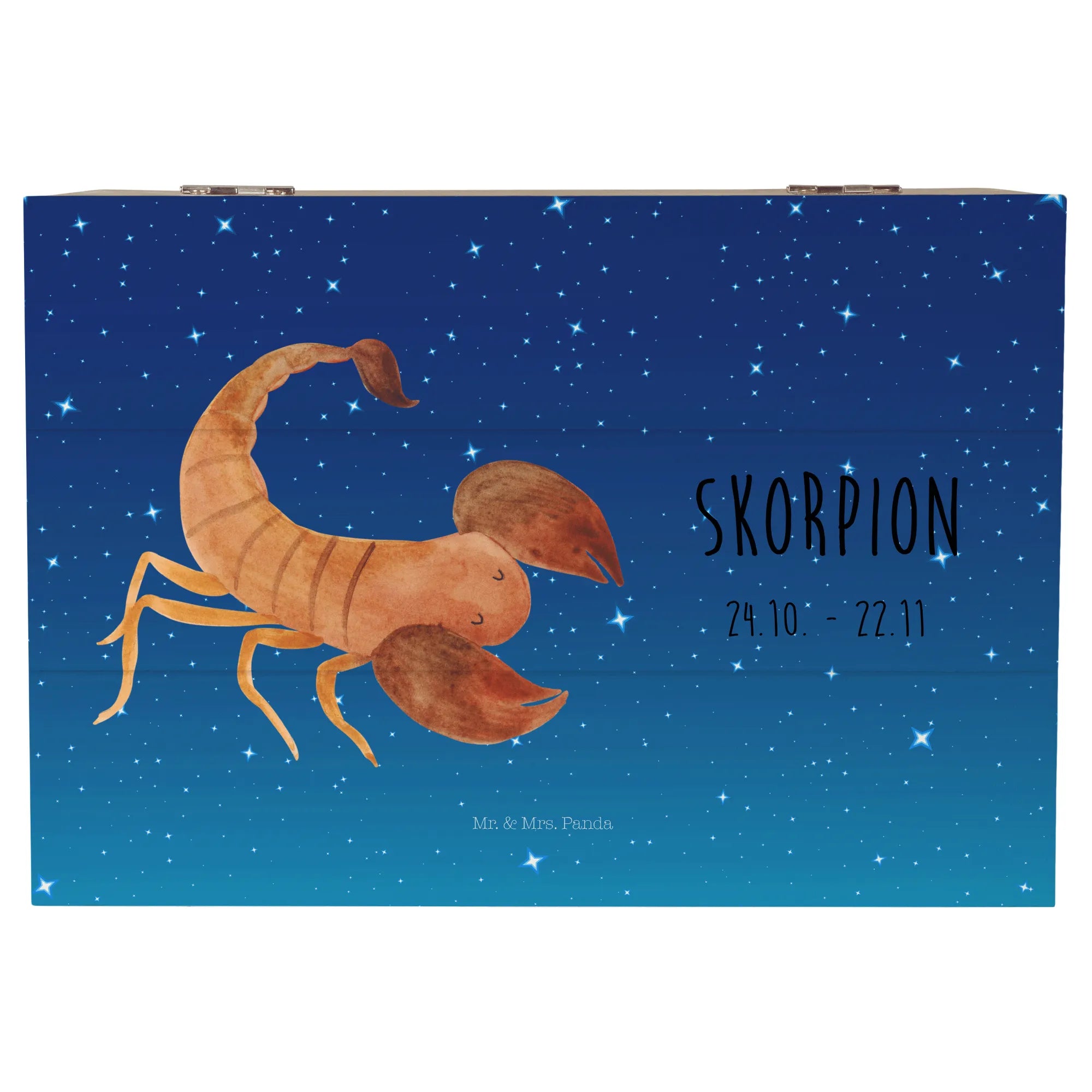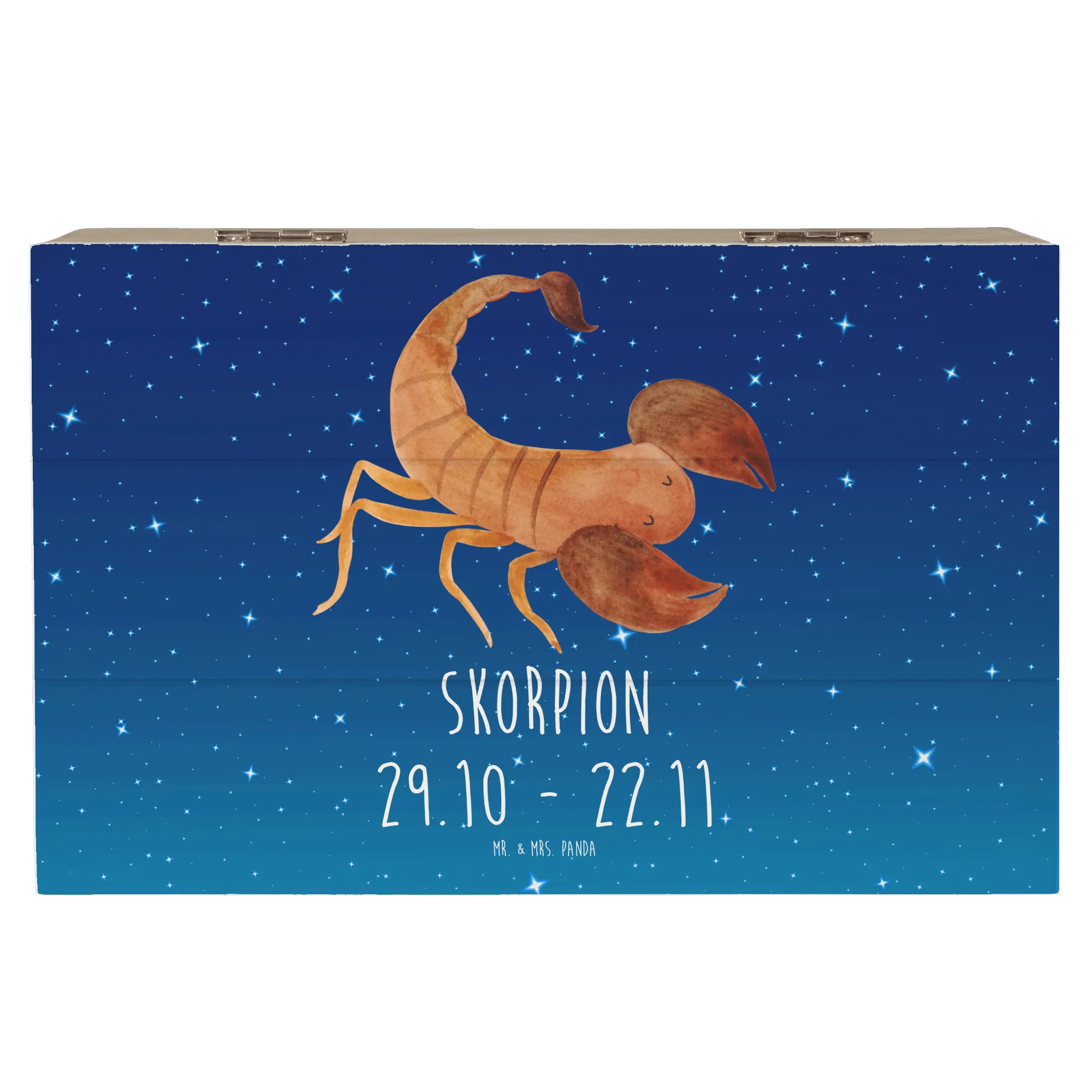 Entdecke die zauberhafte Holzkiste Sternzeichen Skorpion Classic von Mr. & Mrs. Panda – das perfekte Geschenk für Skorpion-Geburtstagskinder!