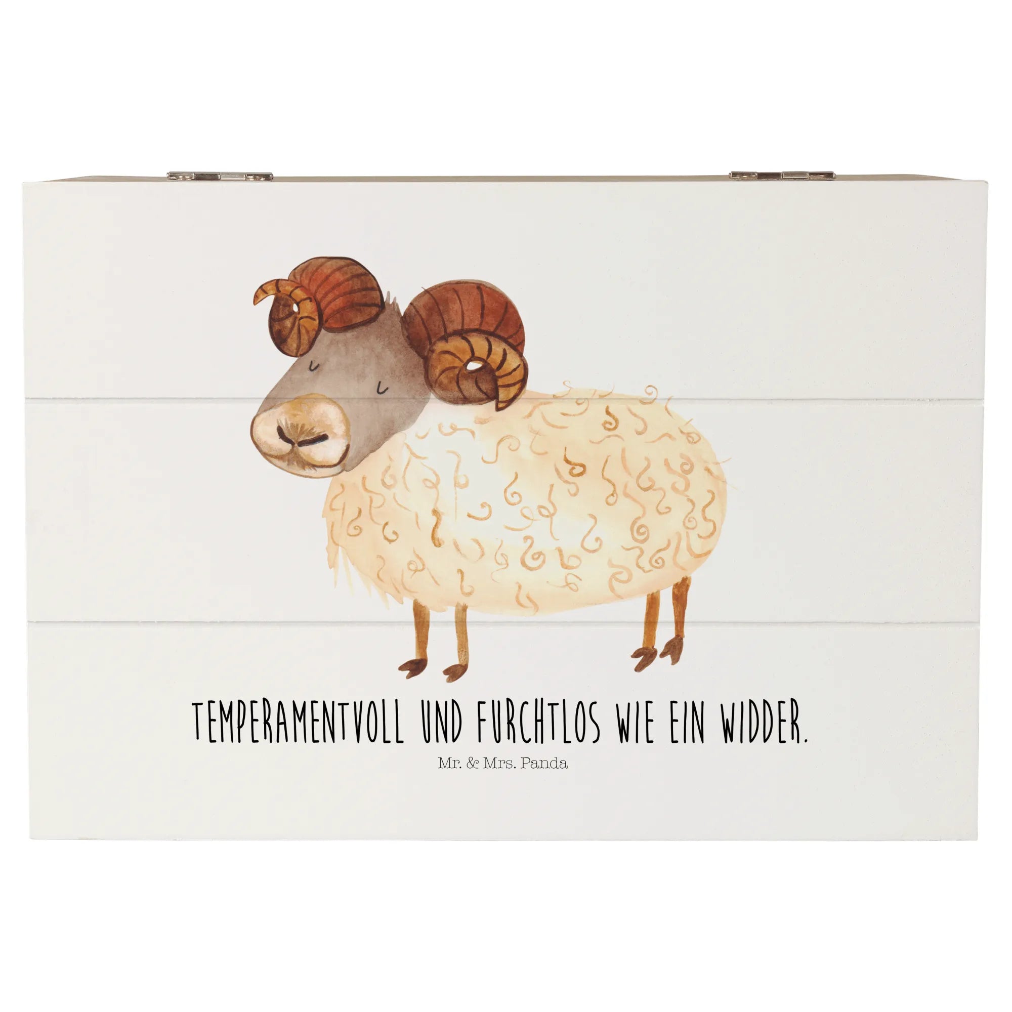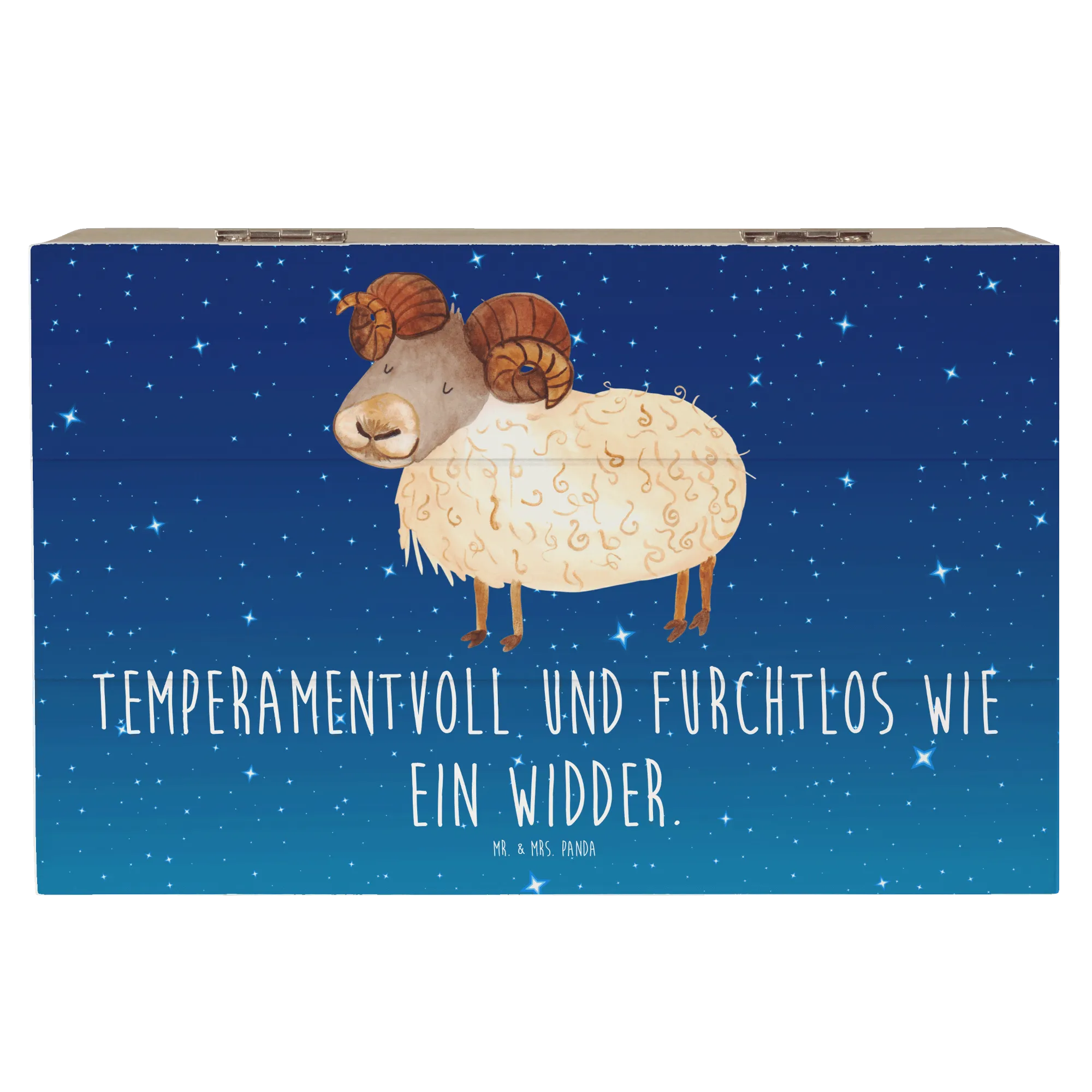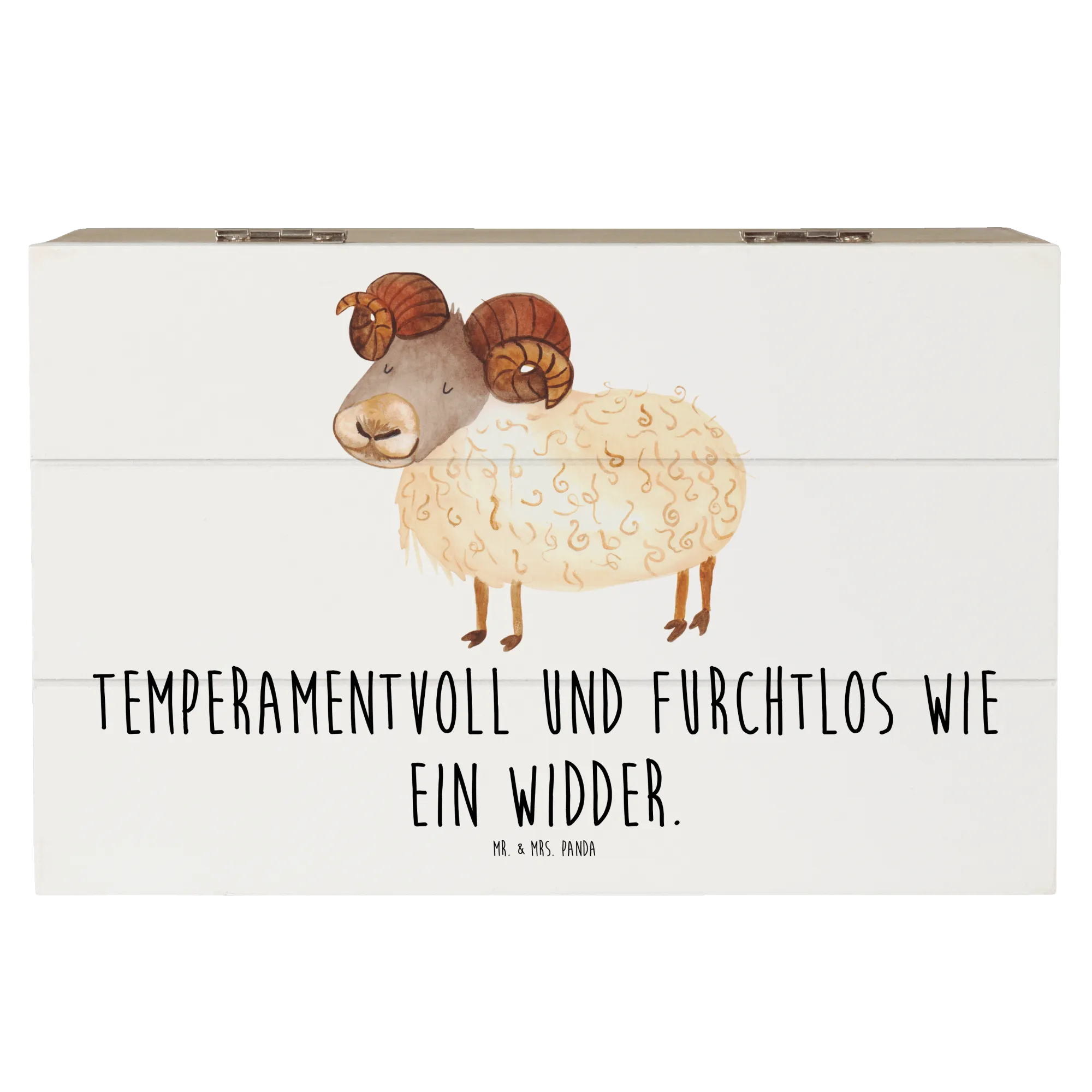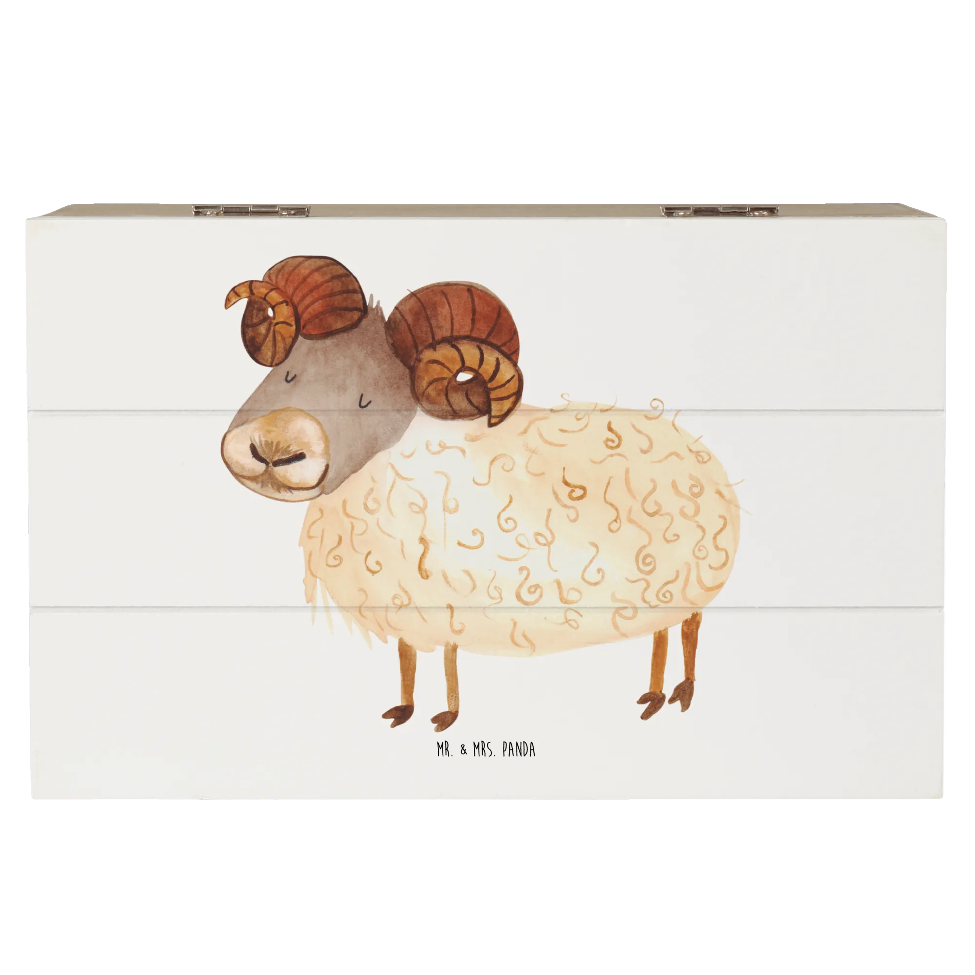 Entdecke die wunderschöne Holzkiste mit dem Motiv Sternzeichen Widder von Mr. & Mrs. Panda! Diese charmante Kiste ist nicht nur ein praktischer Aufbewahrungsort für all deine wertvollen Schätze, sondern auch ein ganz besonderes Geschenk für alle, die im März oder April Geburtstag haben oder einfach die Eigenschaften des Widder-Sternzeichens schätzen.