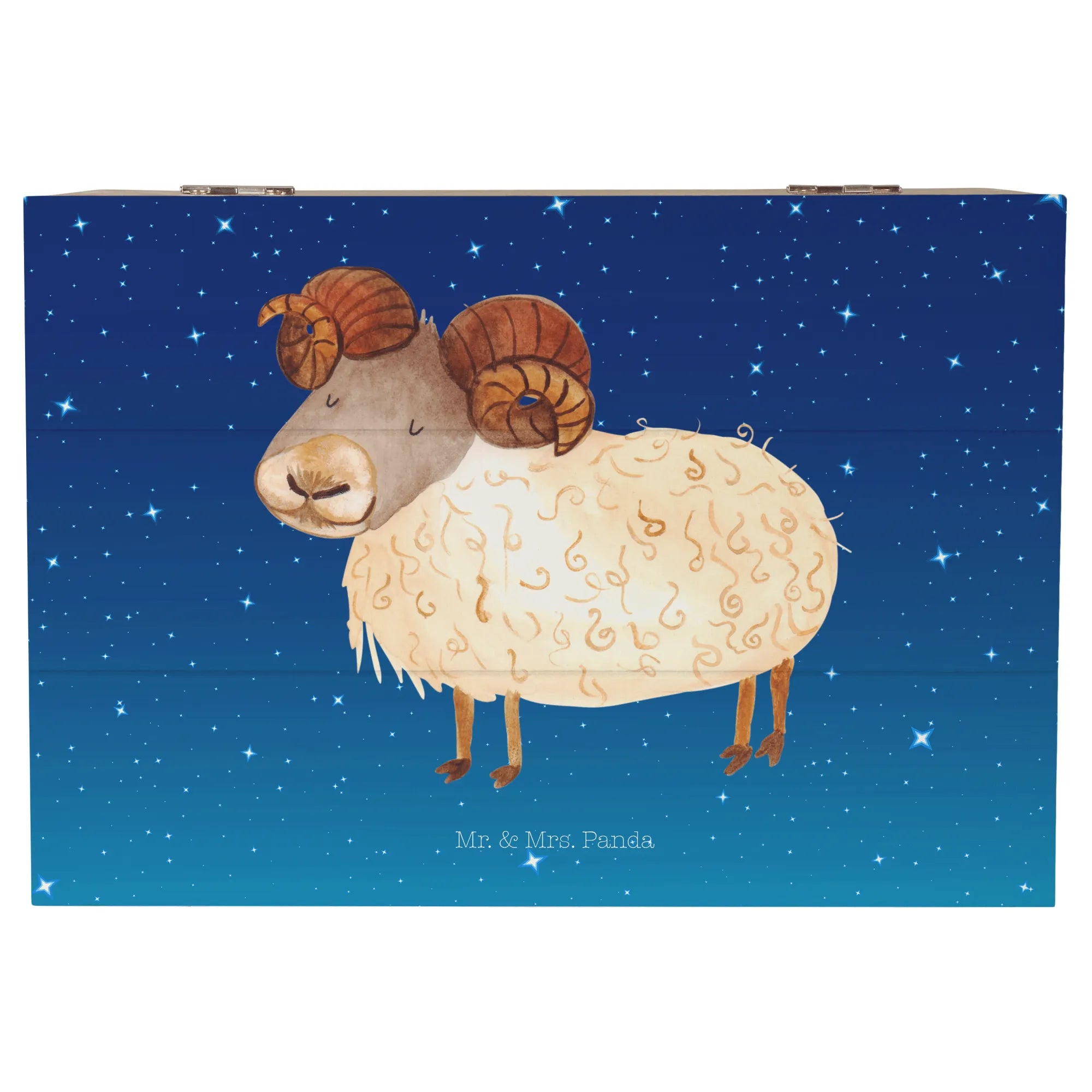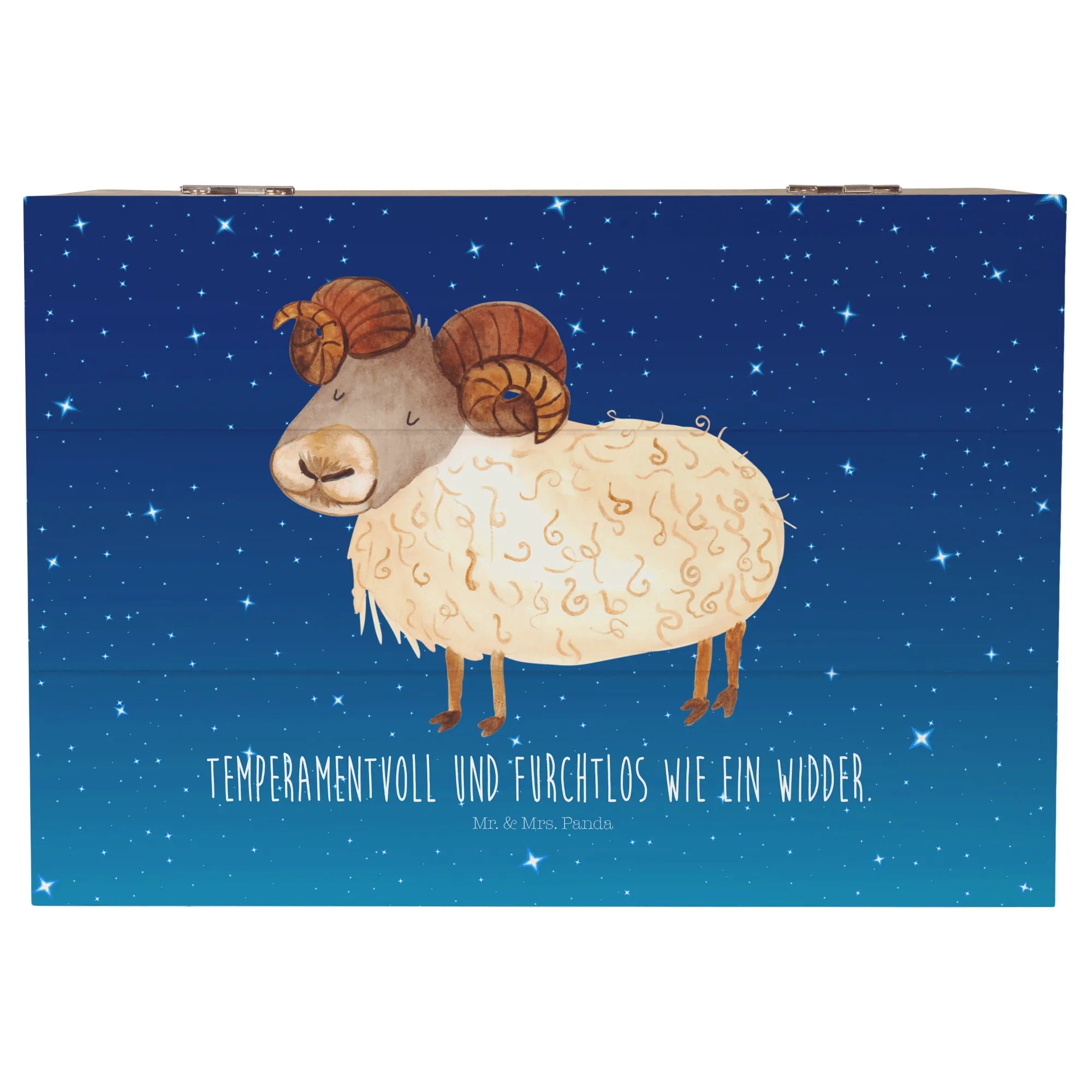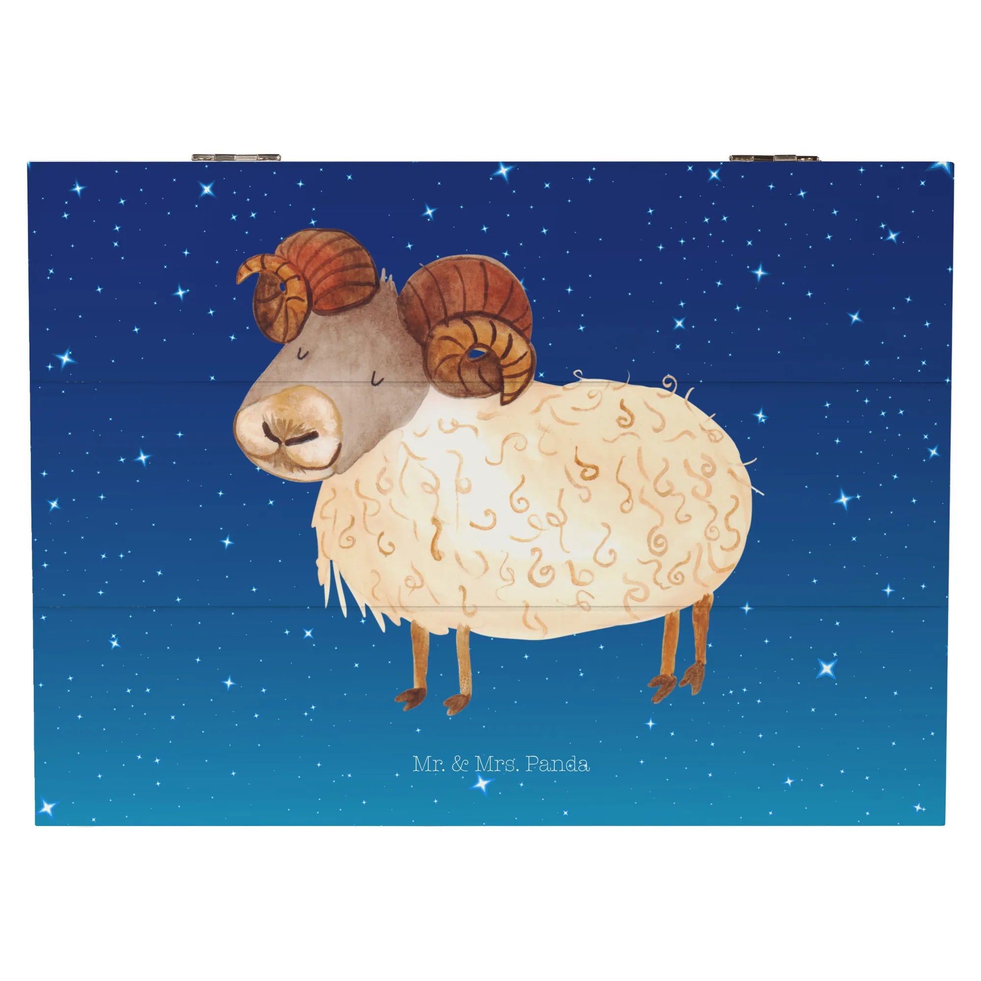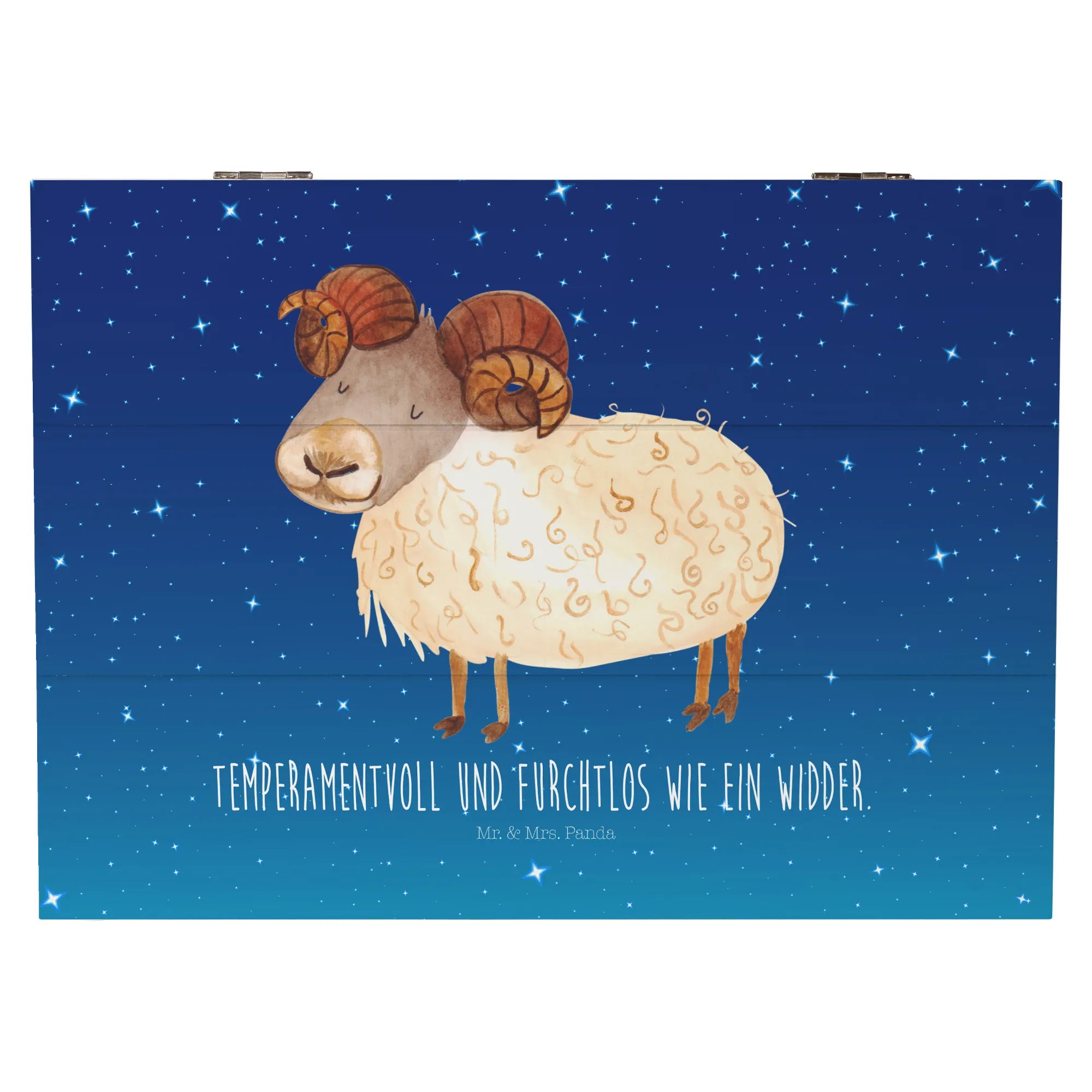 Entdecke die wunderschöne Holzkiste mit dem Motiv Sternzeichen Widder von Mr. & Mrs. Panda! Diese charmante Kiste ist nicht nur ein praktischer Aufbewahrungsort für all deine wertvollen Schätze, sondern auch ein ganz besonderes Geschenk für alle, die im März oder April Geburtstag haben oder einfach die Eigenschaften des Widder-Sternzeichens schätzen.