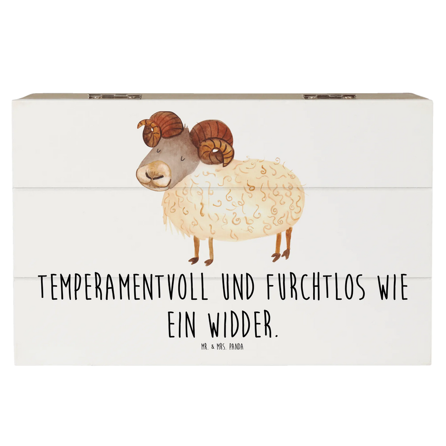 Entdecke die wunderschöne Holzkiste mit dem Motiv Sternzeichen Widder von Mr. & Mrs. Panda! Diese charmante Kiste ist nicht nur ein praktischer Aufbewahrungsort für all deine wertvollen Schätze, sondern auch ein ganz besonderes Geschenk für alle, die im März oder April Geburtstag haben oder einfach die Eigenschaften des Widder-Sternzeichens schätzen.
