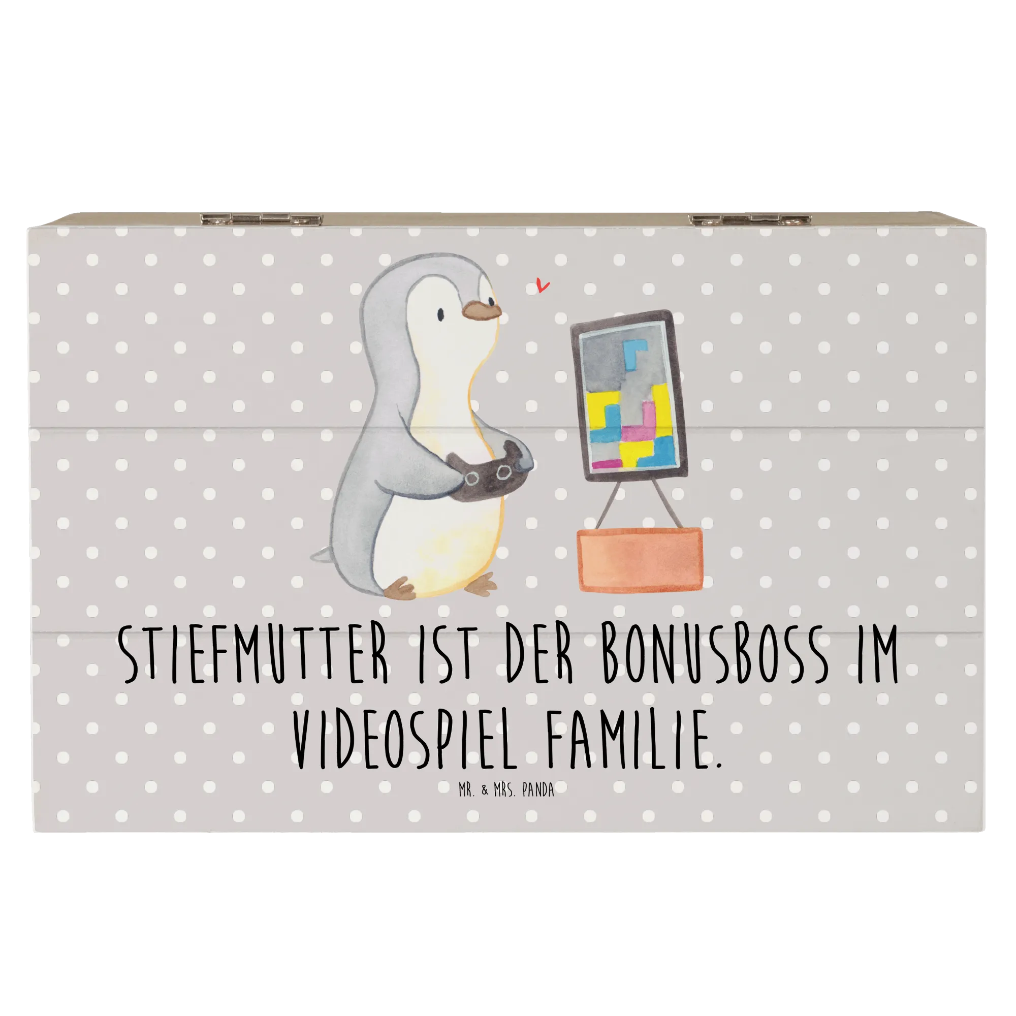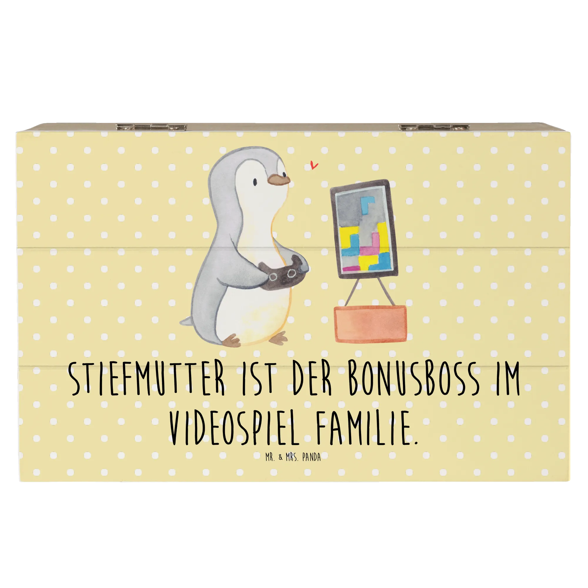 Die wunderschöne Holzkiste "Stiefmutter - der Bonusboss im Videospiel Familie" von Mr. & Mrs. Panda ist das perfekte Geschenk für alle Stiefmütter und ihre Stiefkinder. Mit der Kombination aus charmantem Design und einer liebevollen Botschaft ist sie nicht nur ein praktischer Aufbewahrungsort für wertvolle Erinnerungen, sondern auch ein liebevolles Zeichen der Wertschätzung.