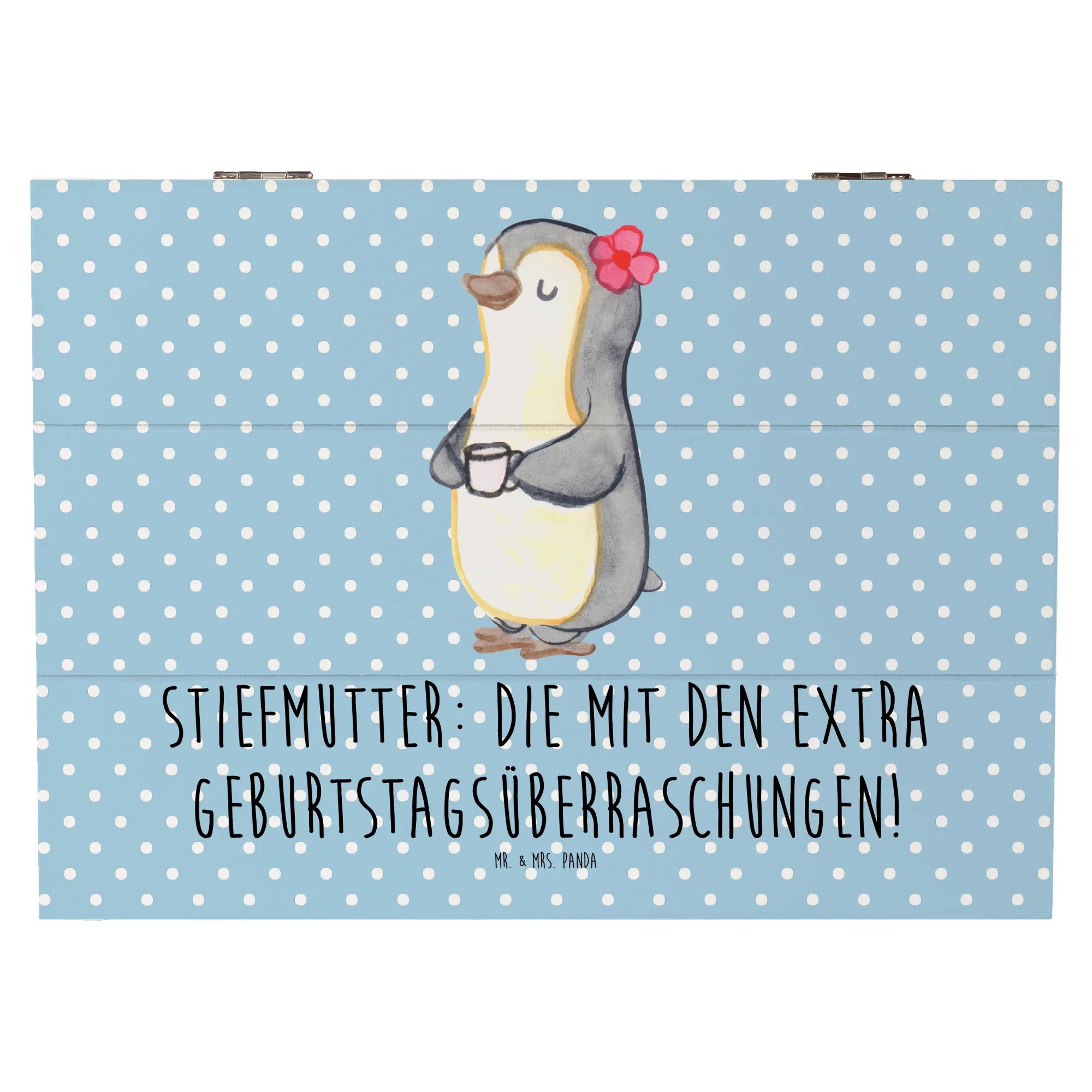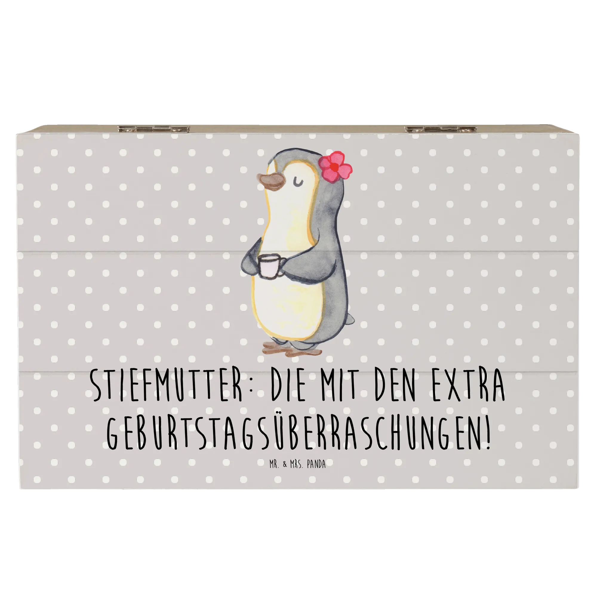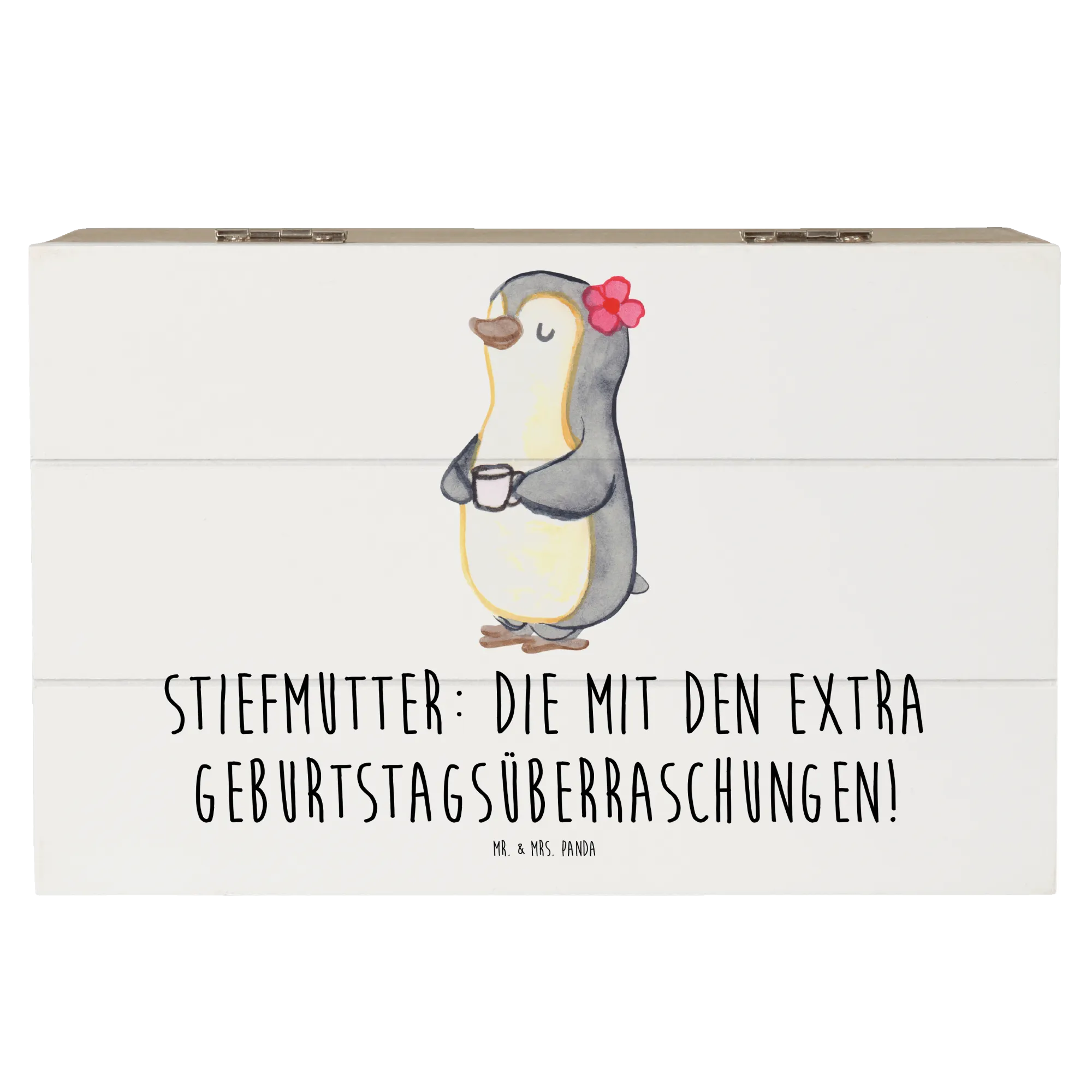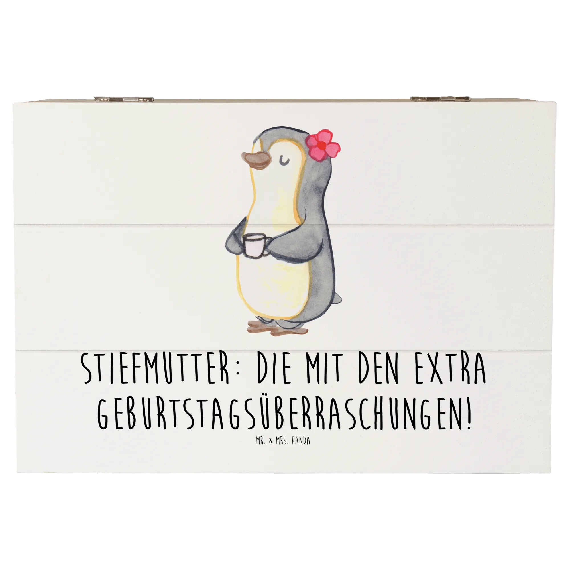 Du suchst nach dem perfekten Geschenk für deine Stiefmutter oder ein Stiefkind in deiner Patchwork-Familie? Dann ist die wunderschöne Holzkiste von Mr. & Mrs. Panda genau das Richtige! Diese liebevoll gestaltete Erinnerungskiste mit dem charmanten Motiv "Stiefmutter: Die mit den extra Geburtstagsüberraschungen!" bietet nicht nur einen praktischen Stauraum für all deine Schätze, sondern auch eine ganz besondere Möglichkeit, Wertschätzung zu zeigen.