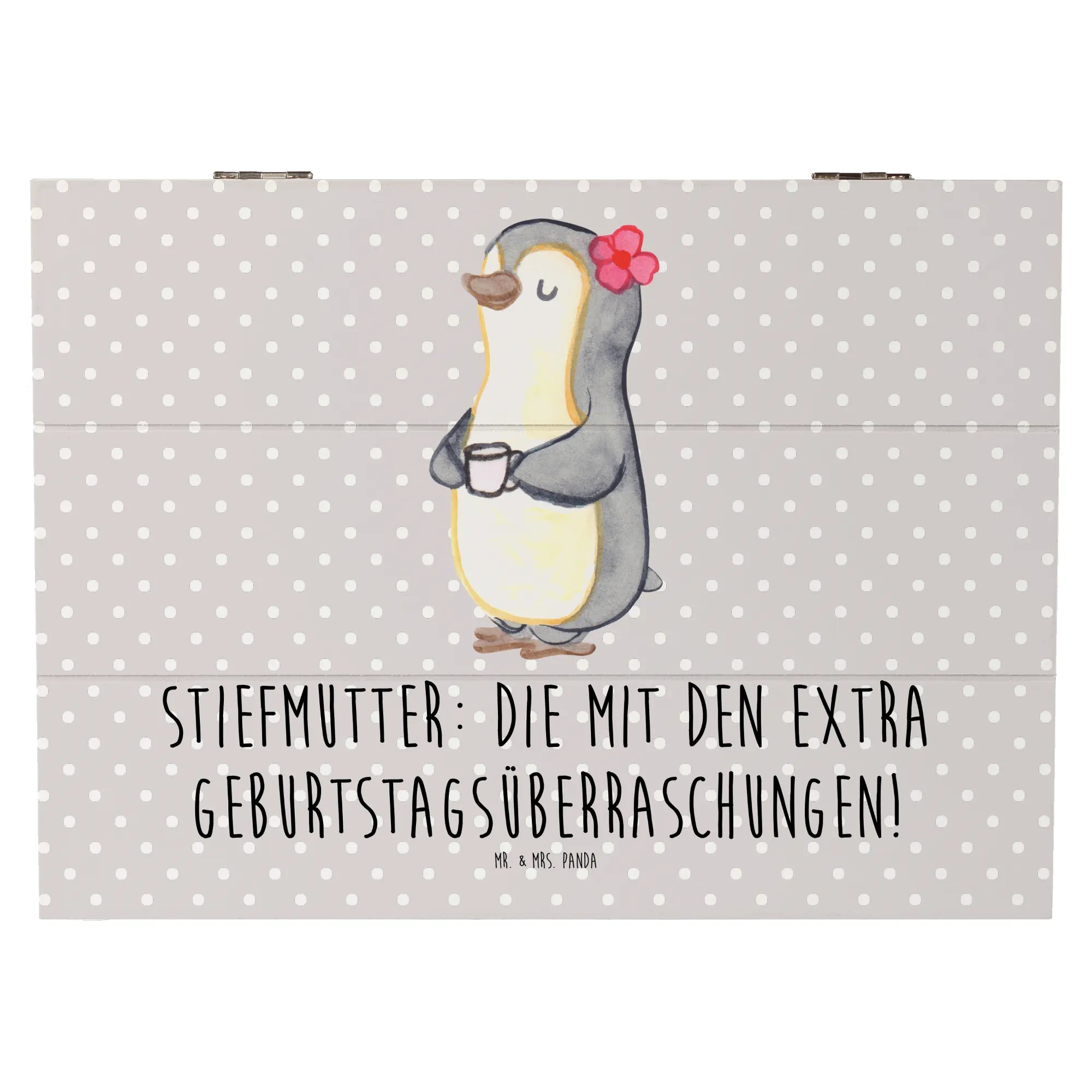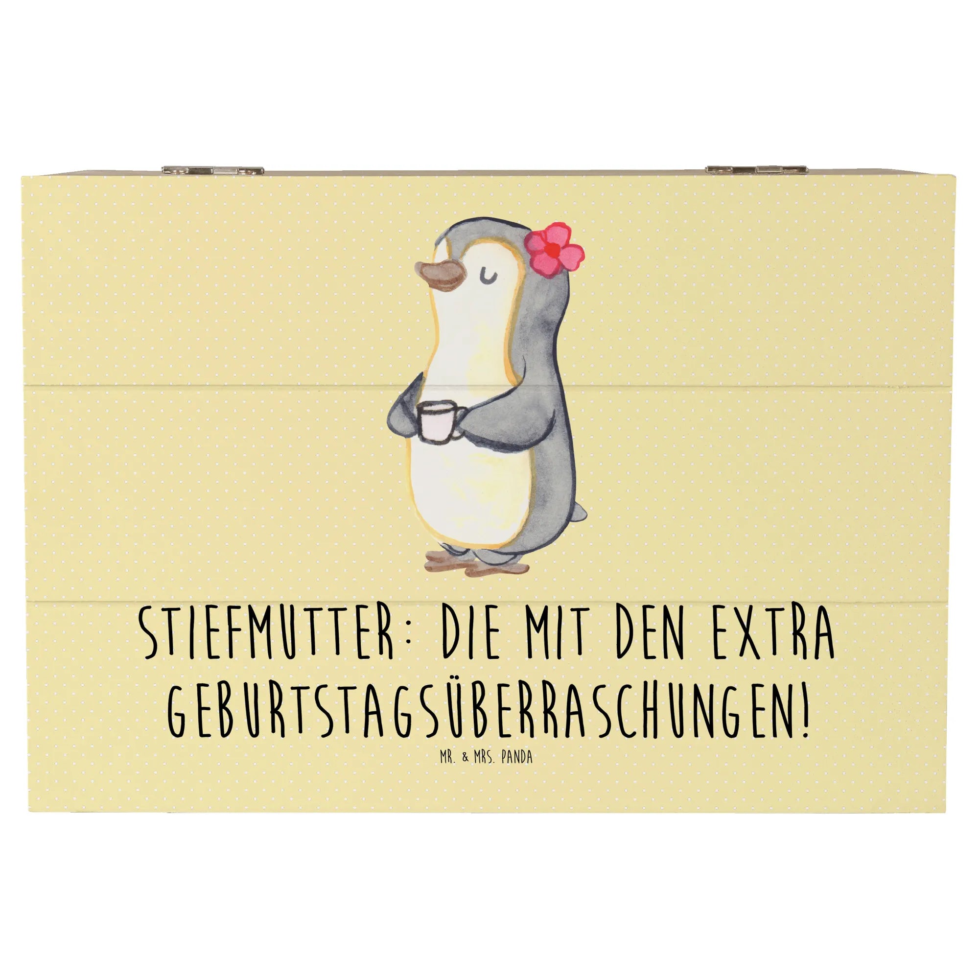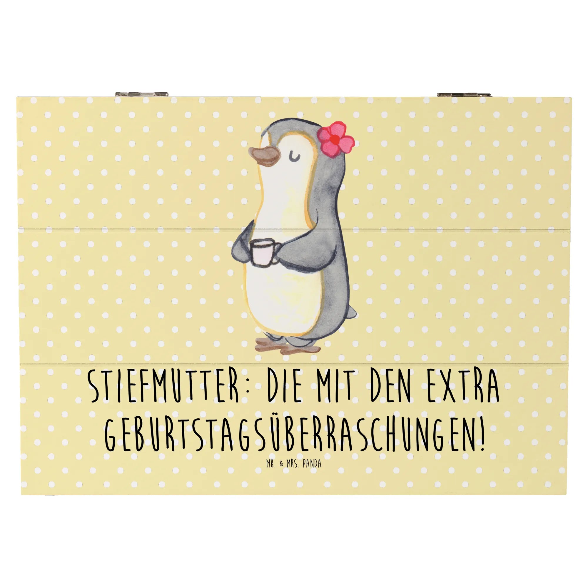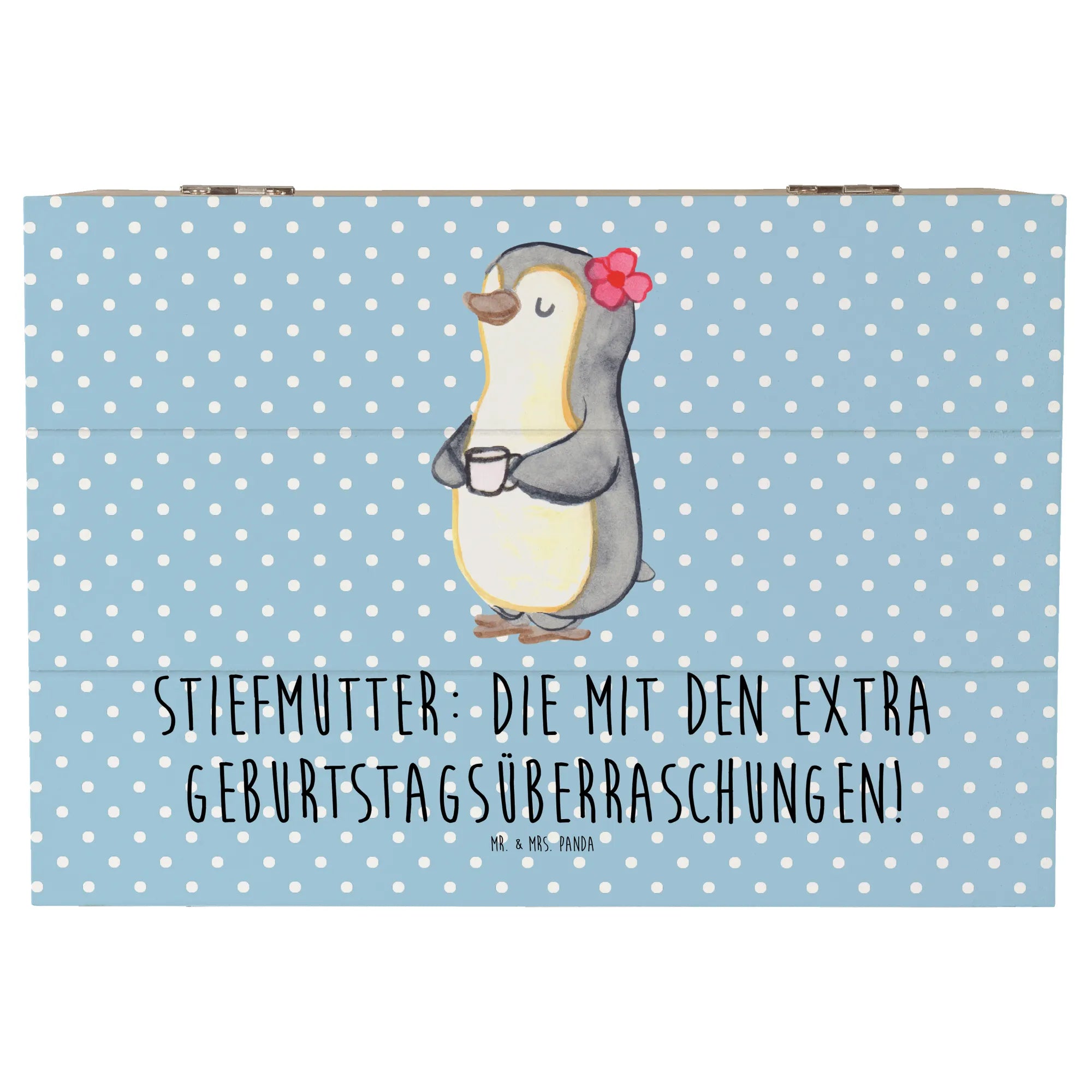 Du suchst nach dem perfekten Geschenk für deine Stiefmutter oder ein Stiefkind in deiner Patchwork-Familie? Dann ist die wunderschöne Holzkiste von Mr. & Mrs. Panda genau das Richtige! Diese liebevoll gestaltete Erinnerungskiste mit dem charmanten Motiv "Stiefmutter: Die mit den extra Geburtstagsüberraschungen!" bietet nicht nur einen praktischen Stauraum für all deine Schätze, sondern auch eine ganz besondere Möglichkeit, Wertschätzung zu zeigen.
