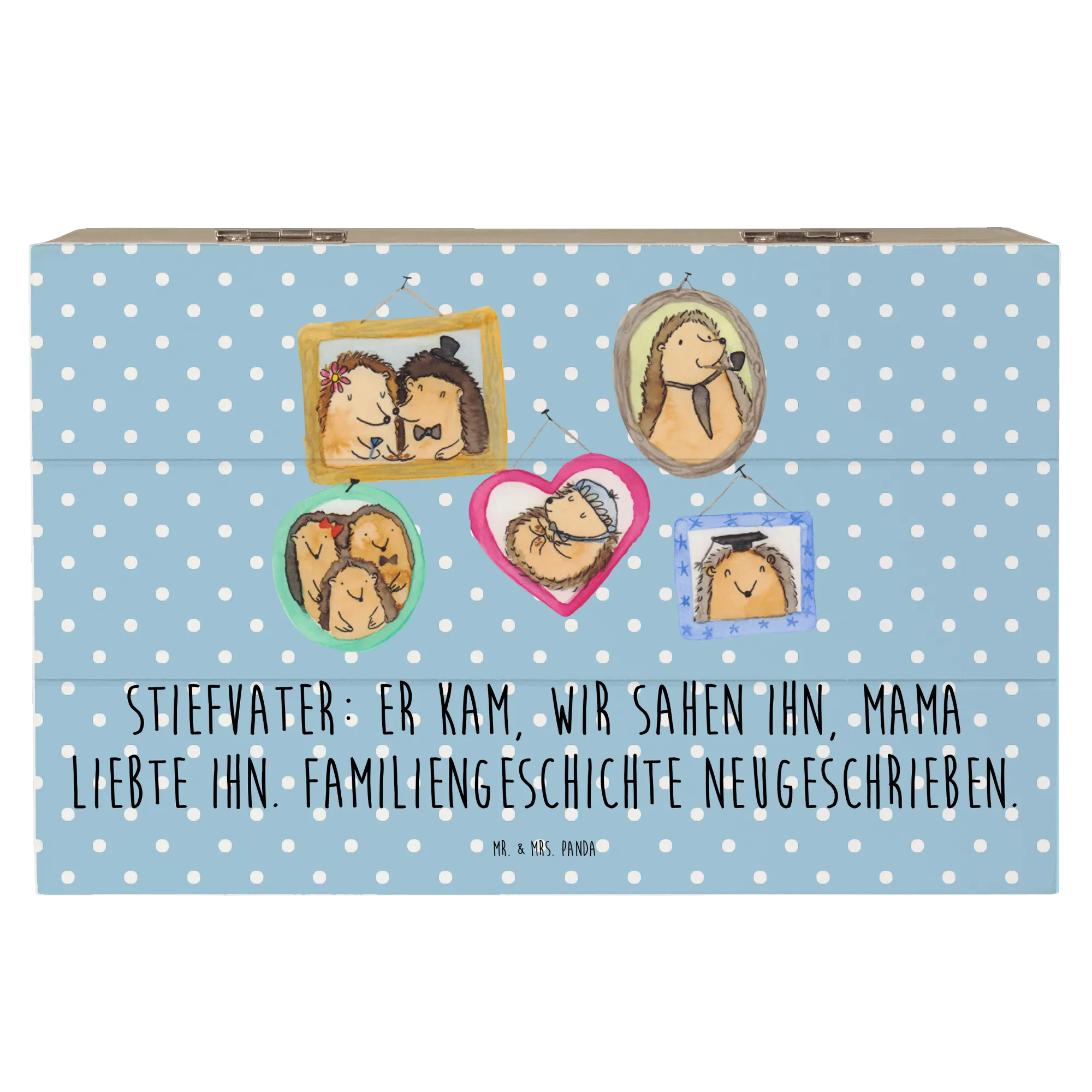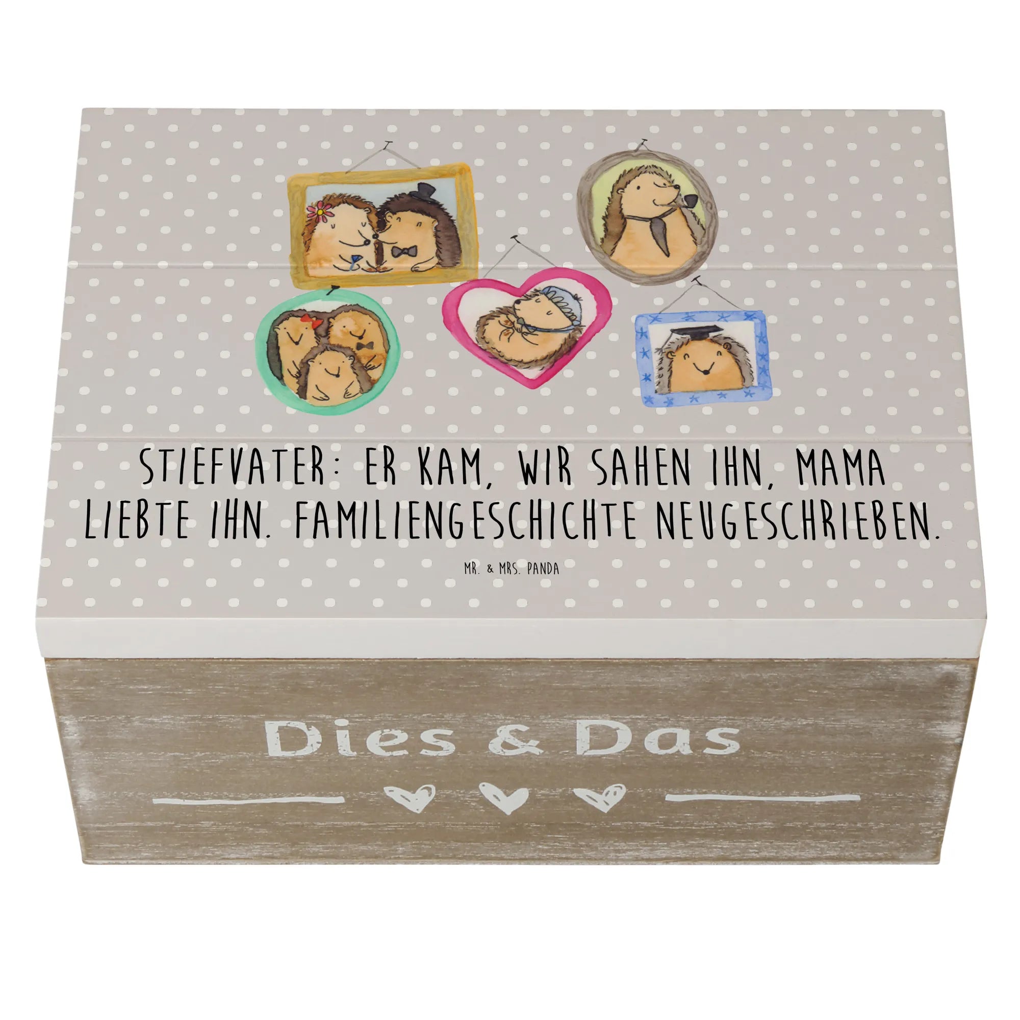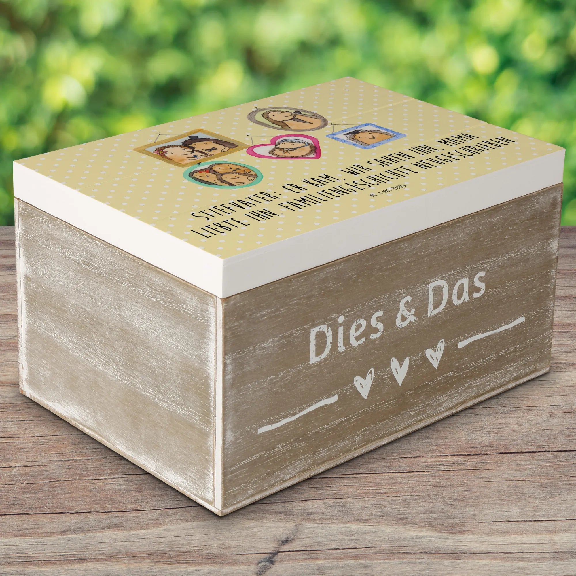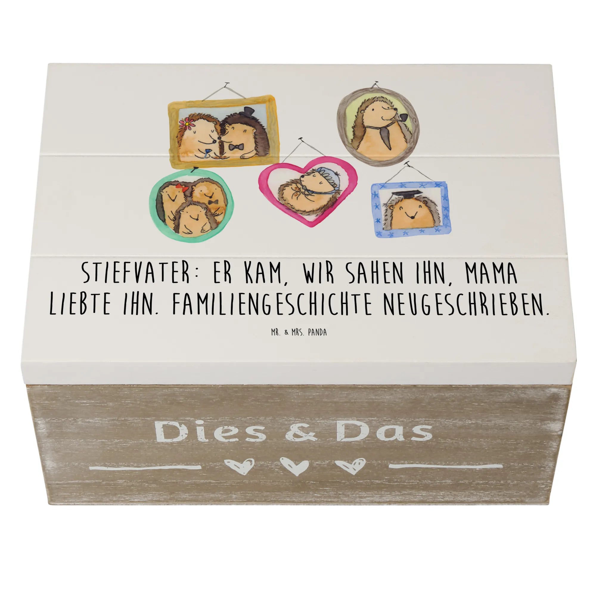 Diese wunderschöne Holzkiste von Mr. & Mrs. Panda ist das perfekte Geschenk für deinen Stiefvater oder für Stiefkinder! Mit einem liebevollen Design, das die einzigartige Rolle, die Stiefväter in Patchwork-Familien spielen, zelebriert, ist diese Kiste ideal, um wertvolle Erinnerungen zu bewahren.