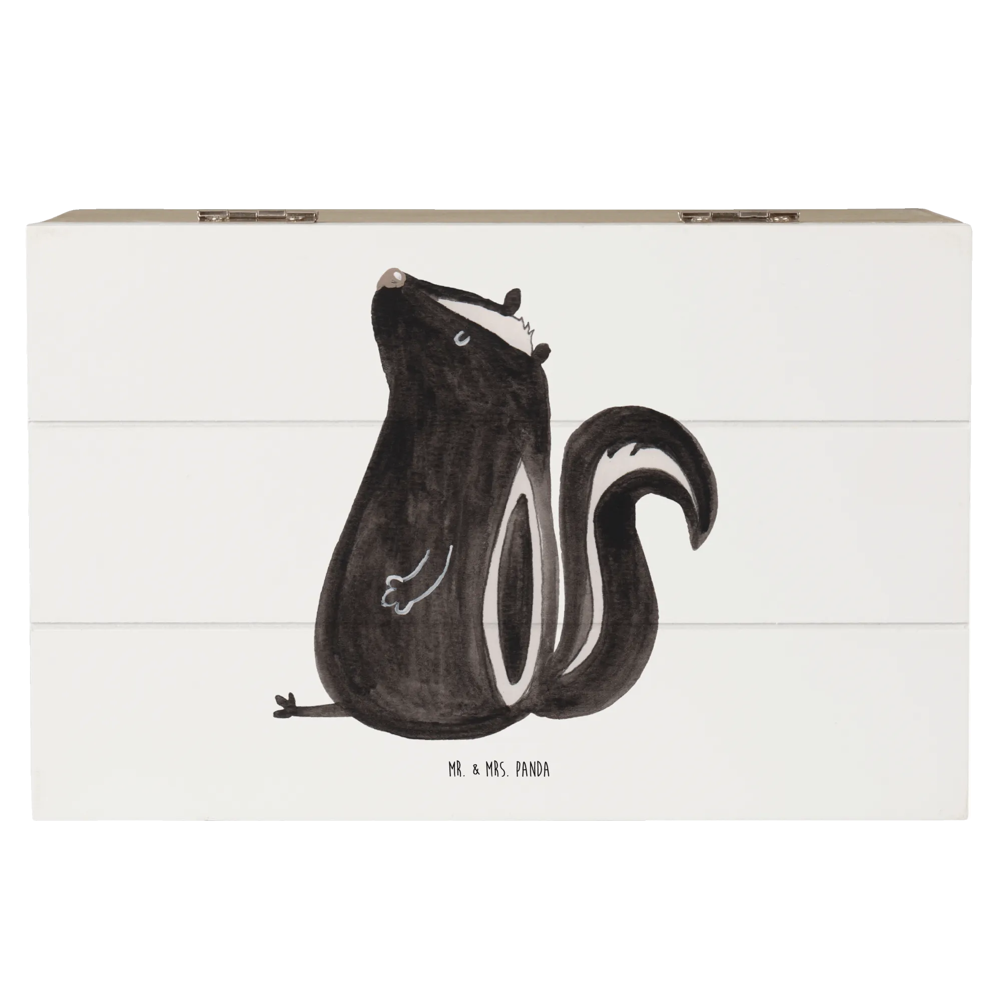 Die wunderschöne Holzkiste Stinktier sitzend von Mr. & Mrs. Panda ist das perfekte Geschenk für all diejenigen, die das Besondere schätzen. Mit ihrem charmanten Stinktier-Motiv bringt die Kiste nicht nur Freude, sondern bietet auch einen praktischen Platz für wundervolle Schätze.
