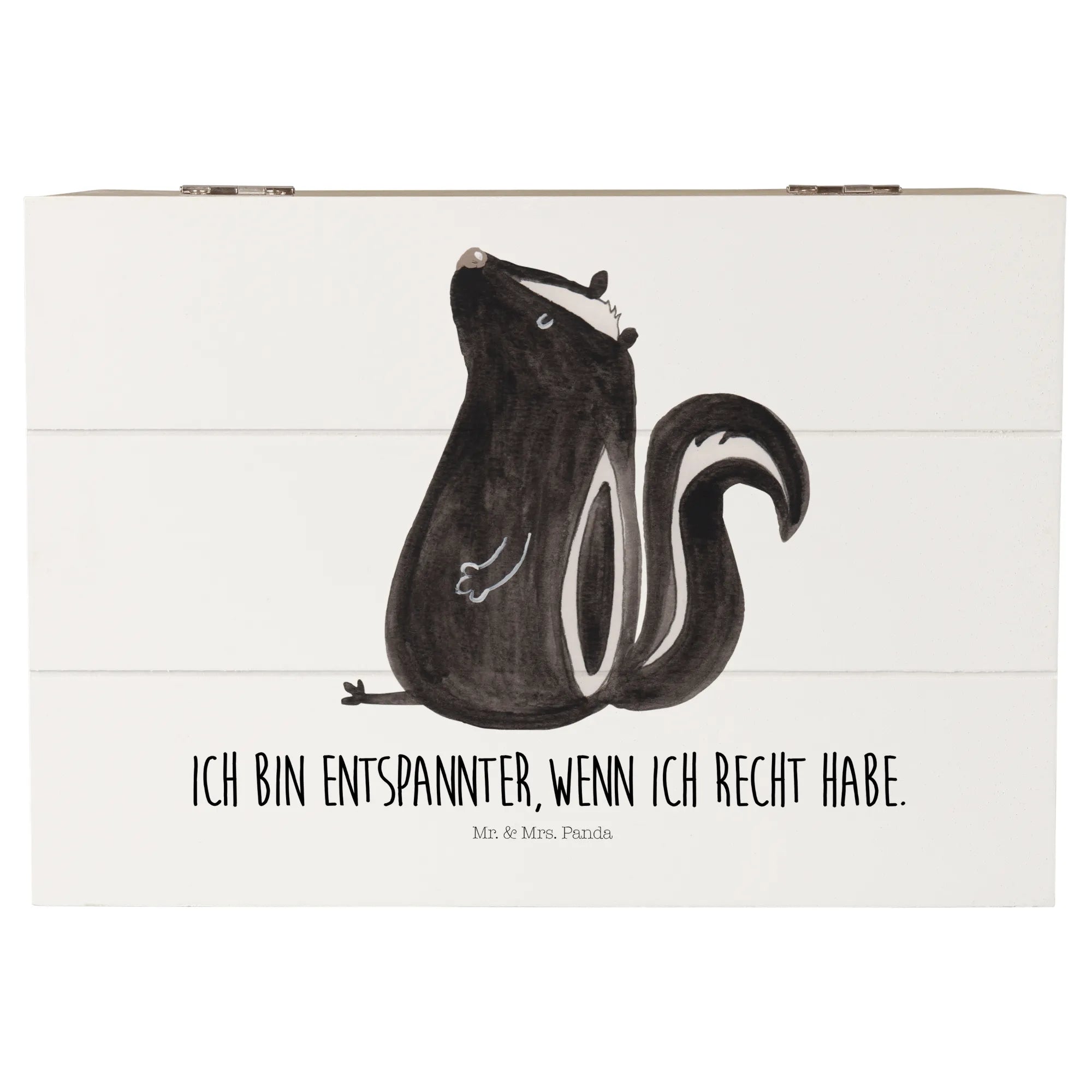 Die wunderschöne Holzkiste von Mr. & Mrs. Panda mit dem niedlichen Motiv des sitzenden Stinktieres ist das perfekte Geschenk für jeden Anlass! Ob zur Kommunion, Konfirmation oder einfach als Erinnerungskiste für besondere Momente, diese Kiste bietet einen stilvollen und robusten Aufbewahrungsort für all deine wertvollen Schätze.