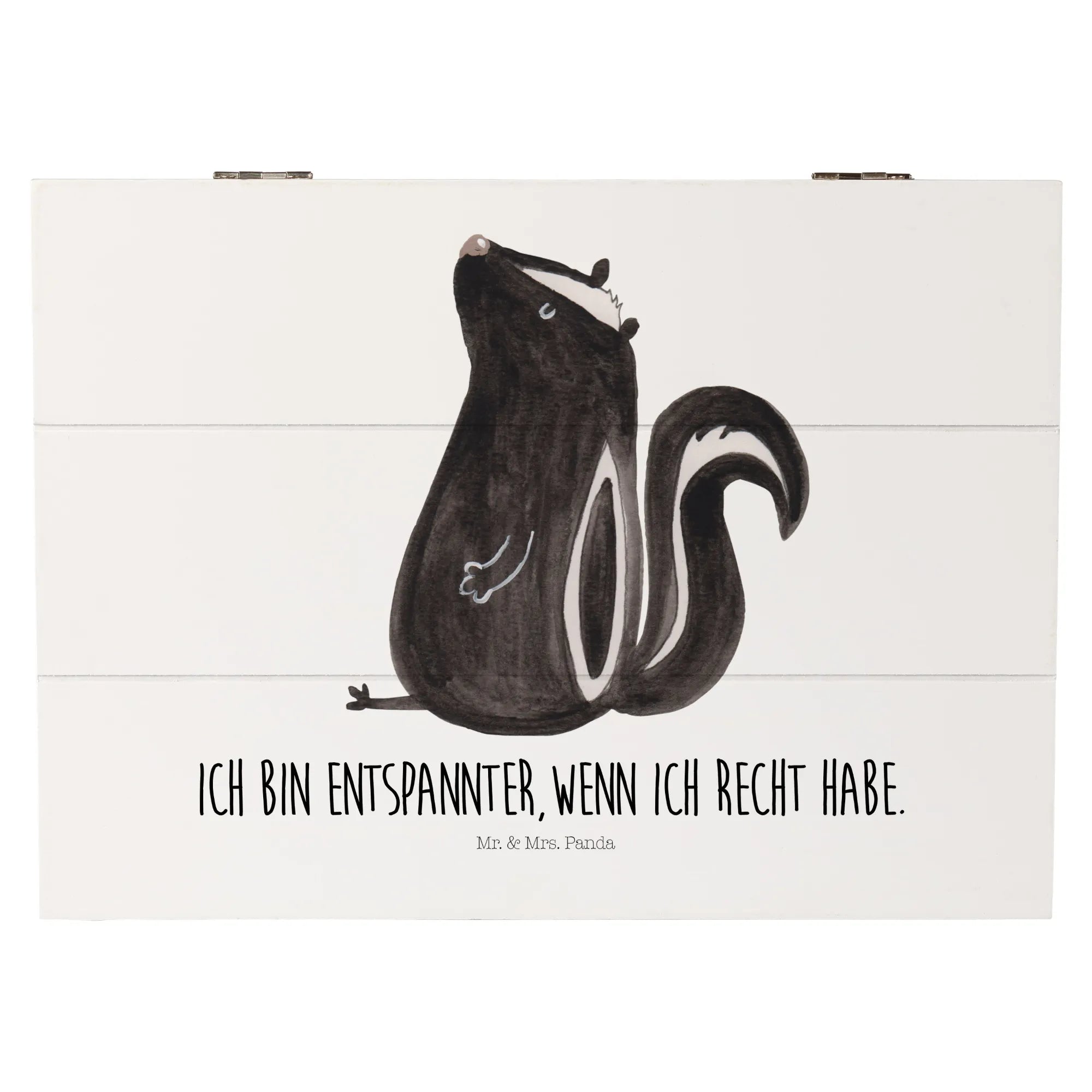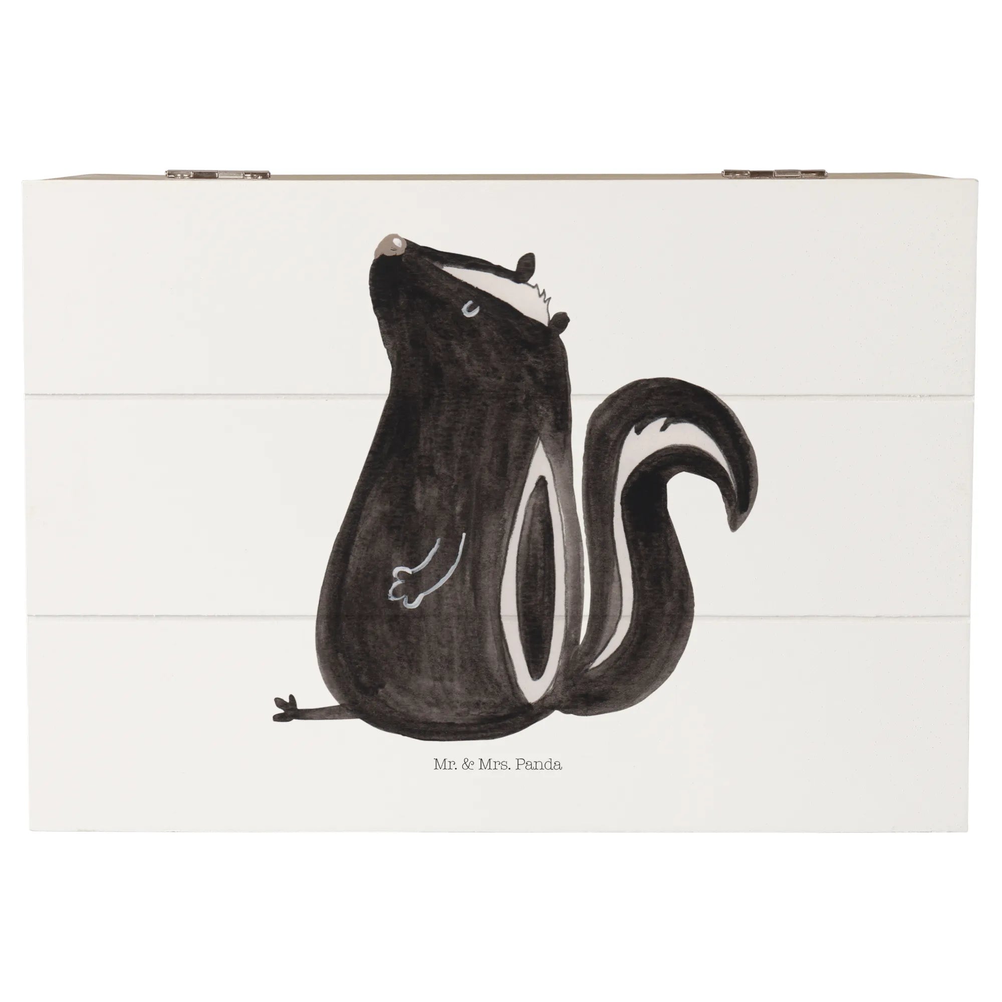 Suchst du nach dem perfekten Geschenk, das gleichzeitig nachhaltig und praktisch ist? Dann ist die wunderschöne Holzkiste mit dem sitzenden Stinktier-Motiv aus der Stinktier-Kollektion von Mr. & Mrs. Panda genau das Richtige für dich! Diese Erinnerungsbox ist mehr als nur eine Kiste - sie ist der ideale Aufbewahrungsort für deine wertvollsten Schätze, sei es für Fotos, besondere Erinnerungen oder kleine Andenken.