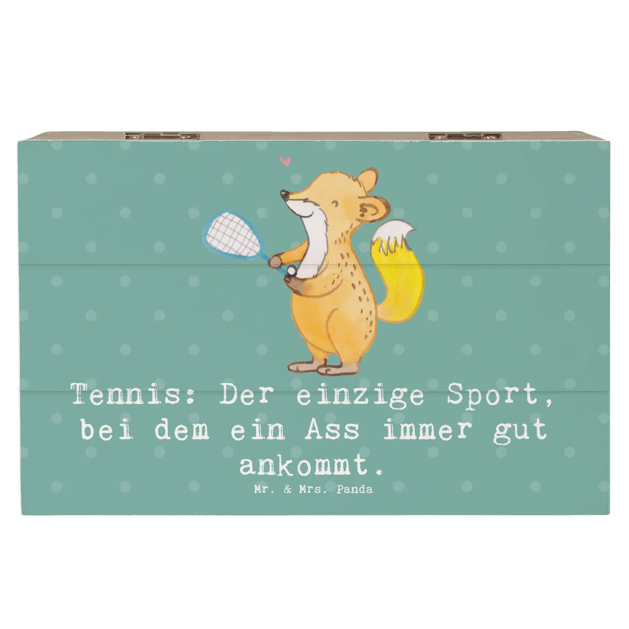 Du suchst nach dem perfekten Geschenk für einen Sportbegeisterten? Dann ist die großartige Holzkiste von Mr. & Mrs. Panda mit dem Motiv Tennis genau das Richtige!