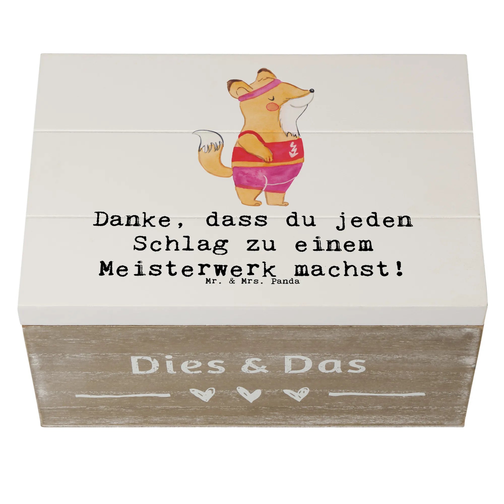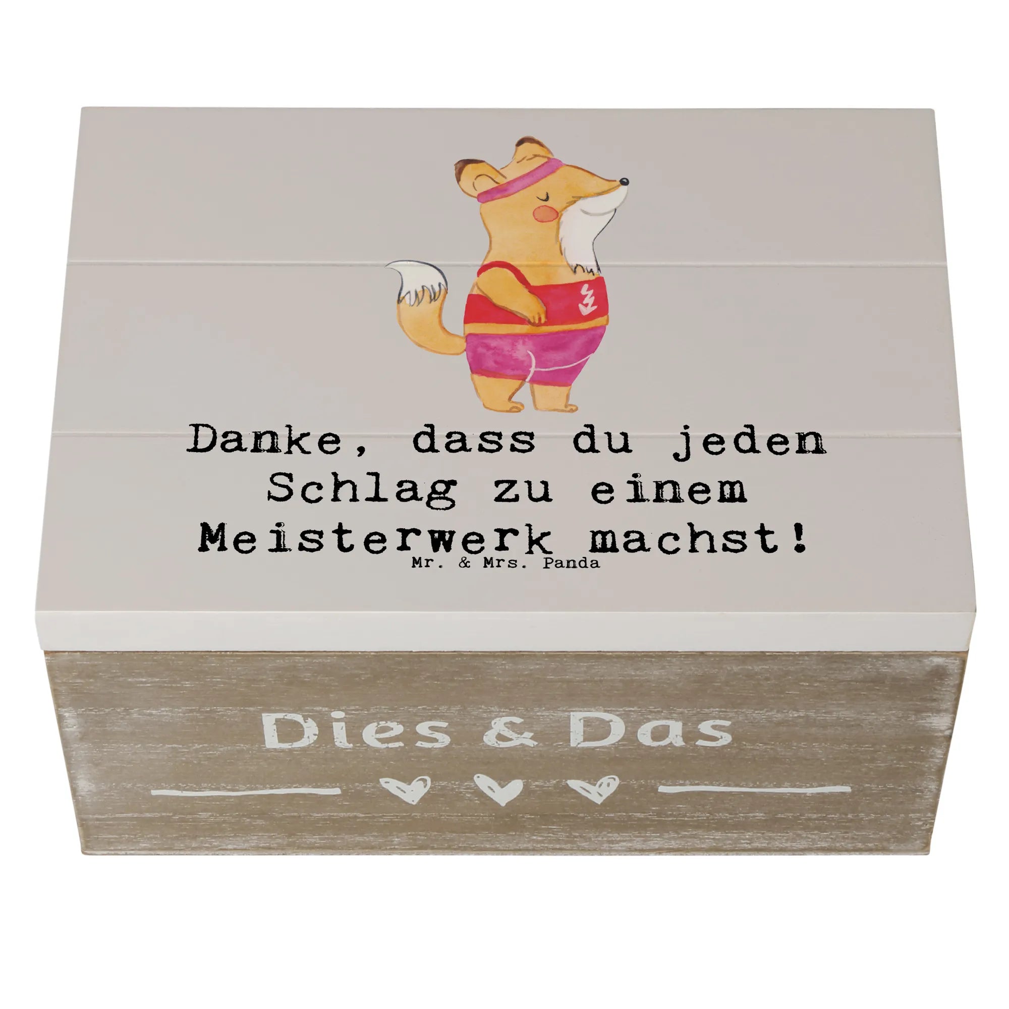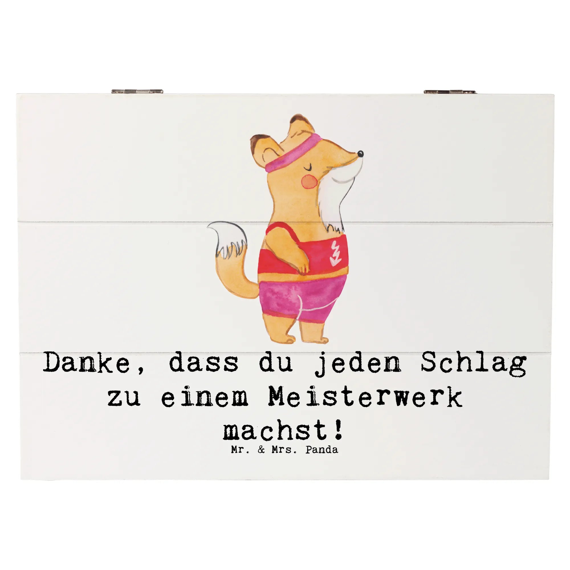 Diese Holzkiste von Mr. & Mrs. Panda trägt das wunderschöne Motiv „Tischtennis Trainerin“ und den bewegenden Spruch „Danke, dass du jeden Schlag zu einem Meisterwerk machst!“. Sie ist die perfekte Geschenkidee als Dankeschön Trainerin, Abschiedsgeschenk Trainerin oder Erinnerungsgeschenk Trainerin nach einer besonderen Saison oder einem großen Turnier.