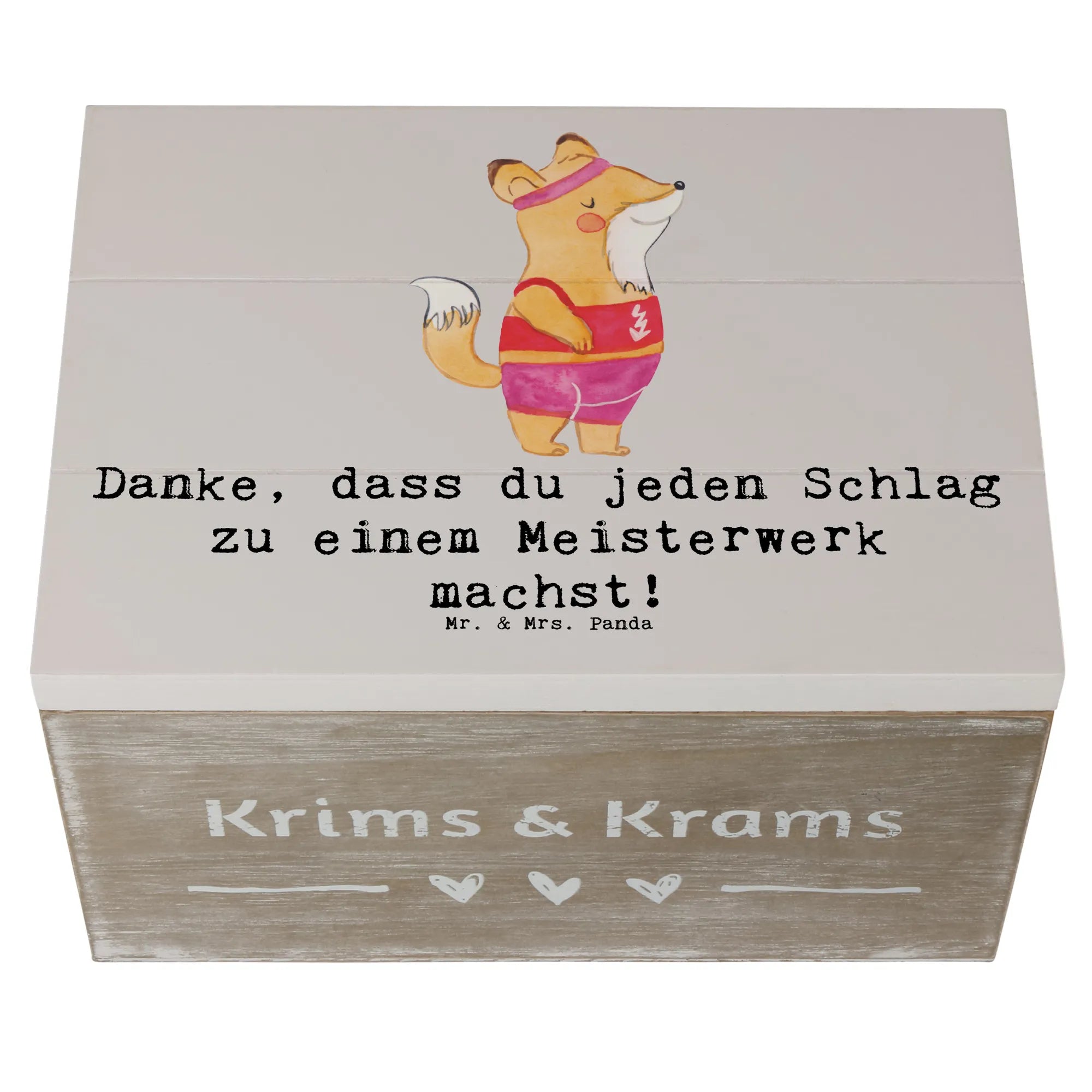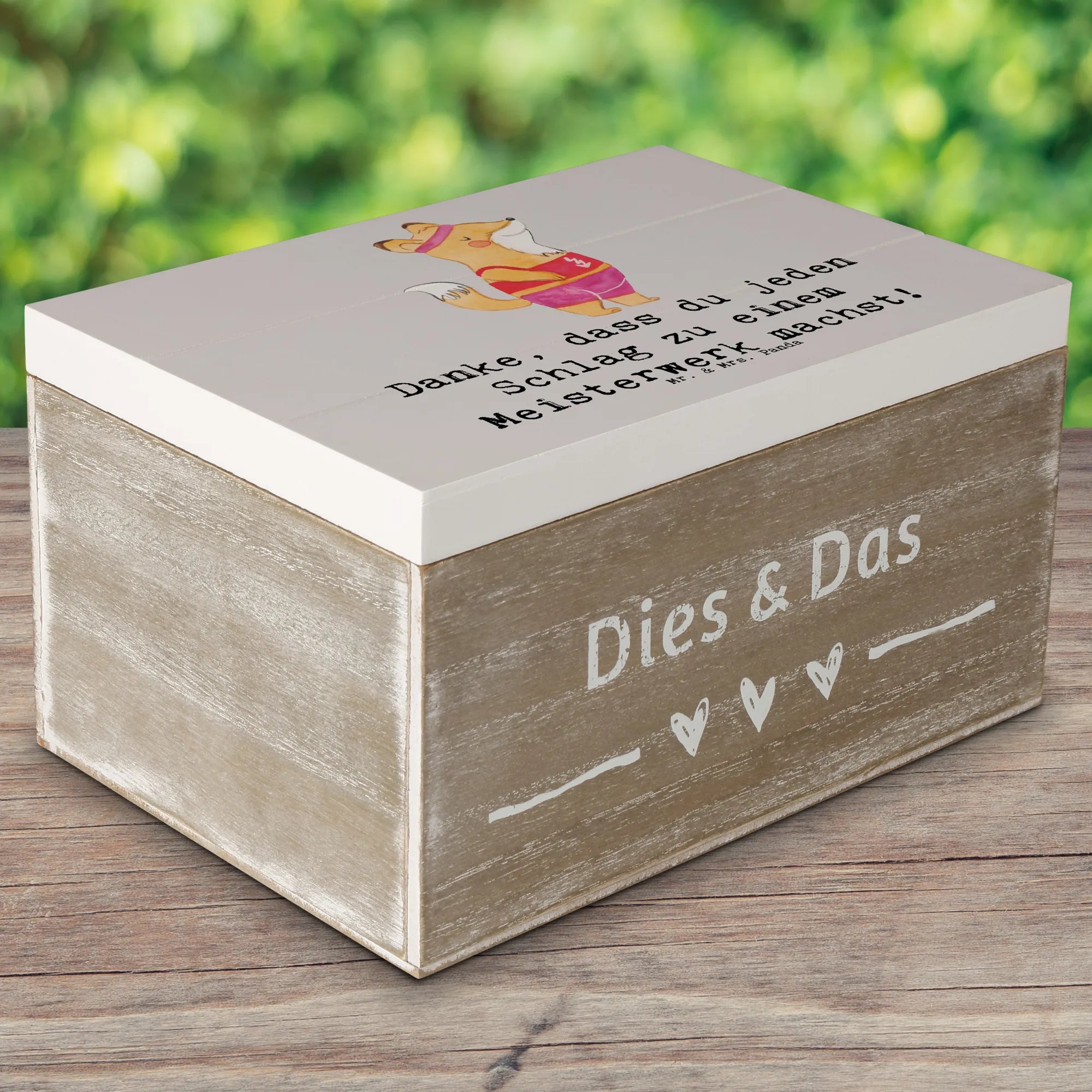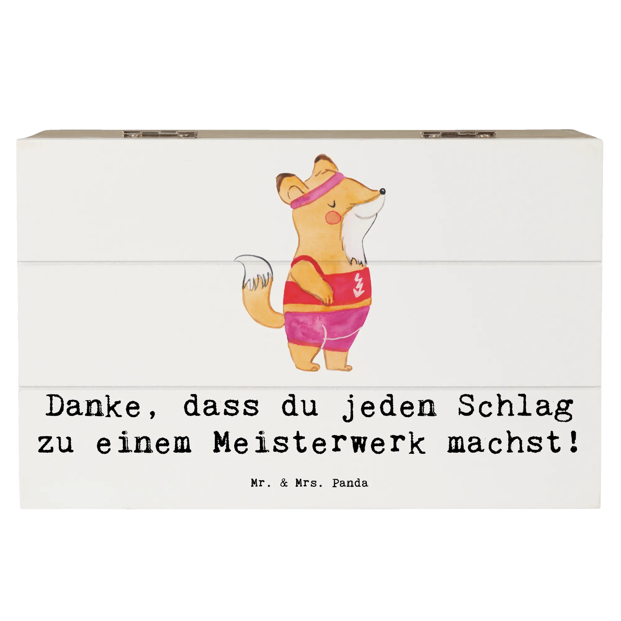Diese Holzkiste von Mr. & Mrs. Panda trägt das wunderschöne Motiv „Tischtennis Trainerin“ und den bewegenden Spruch „Danke, dass du jeden Schlag zu einem Meisterwerk machst!“. Sie ist die perfekte Geschenkidee als Dankeschön Trainerin, Abschiedsgeschenk Trainerin oder Erinnerungsgeschenk Trainerin nach einer besonderen Saison oder einem großen Turnier.