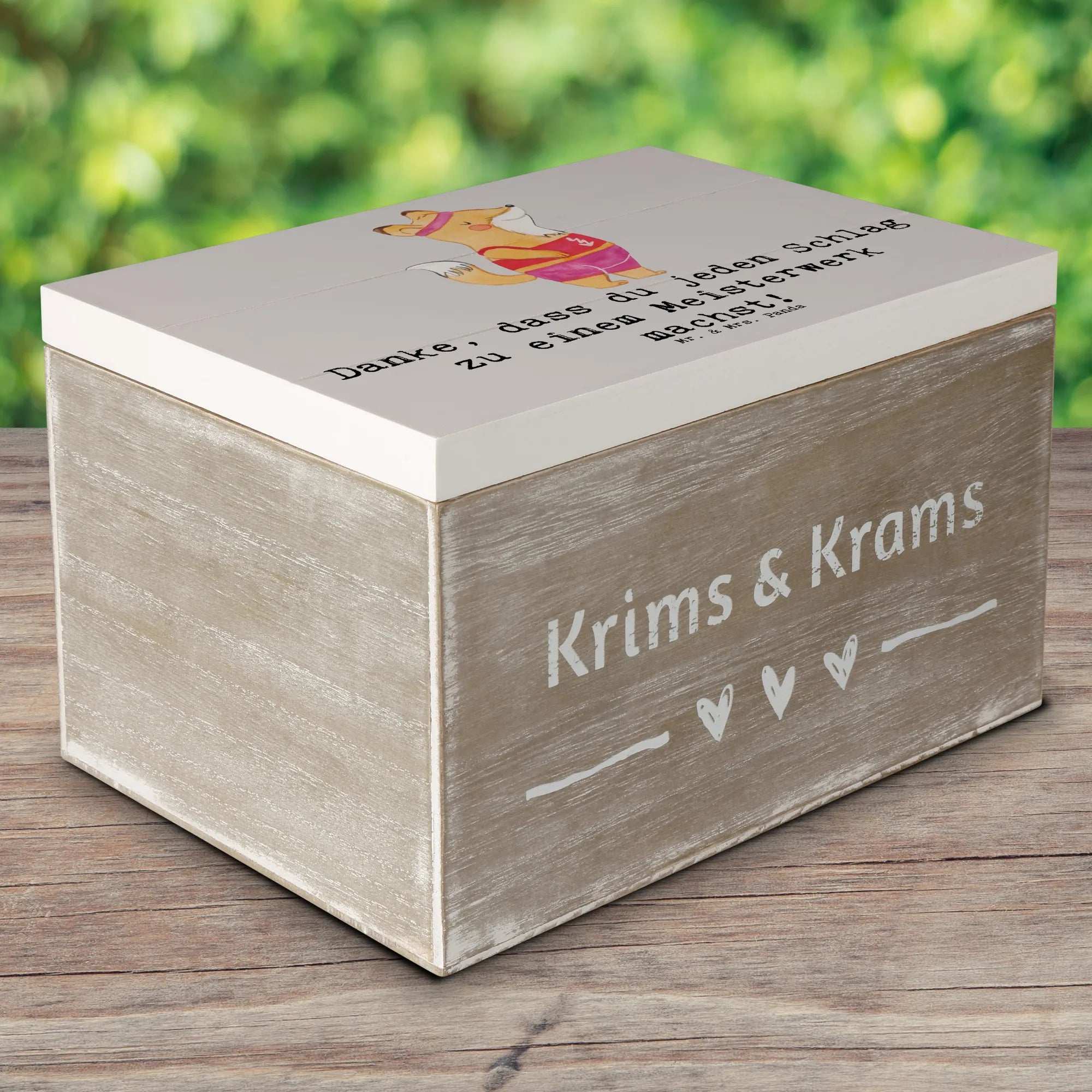 Jeder, der seiner Trainerin einmal „Danke“ sagen möchte, wird mit dieser Holzkiste genau richtig liegen und Freude verteilen. Sie ist das perfekte Geschenk für Trainer und Trainerinnen, die im Sport täglich Außergewöhnliches leisten. Denke daran, die Kiste vorsichtig mit einem feuchten Tuch abwischen, um sie schön zu halten.