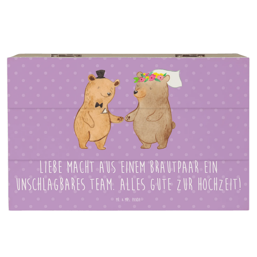 Die wunderschöne Holzkiste von Mr. & Mrs. Panda ist das perfekte Geschenk für alle, die eine Hochzeit feiern oder einem Brautpaar eine besondere Freude machen möchten. Mit dem liebevollen Motiv des Brautpaars und dem herzlichen Spruch "Liebe macht aus einem Brautpaar ein unschlagbares Team. Alles Gute zur Hochzeit!" wird diese Erinnerungskiste schnell zum Schatzkästchen für die schönsten Momente des Lebens.