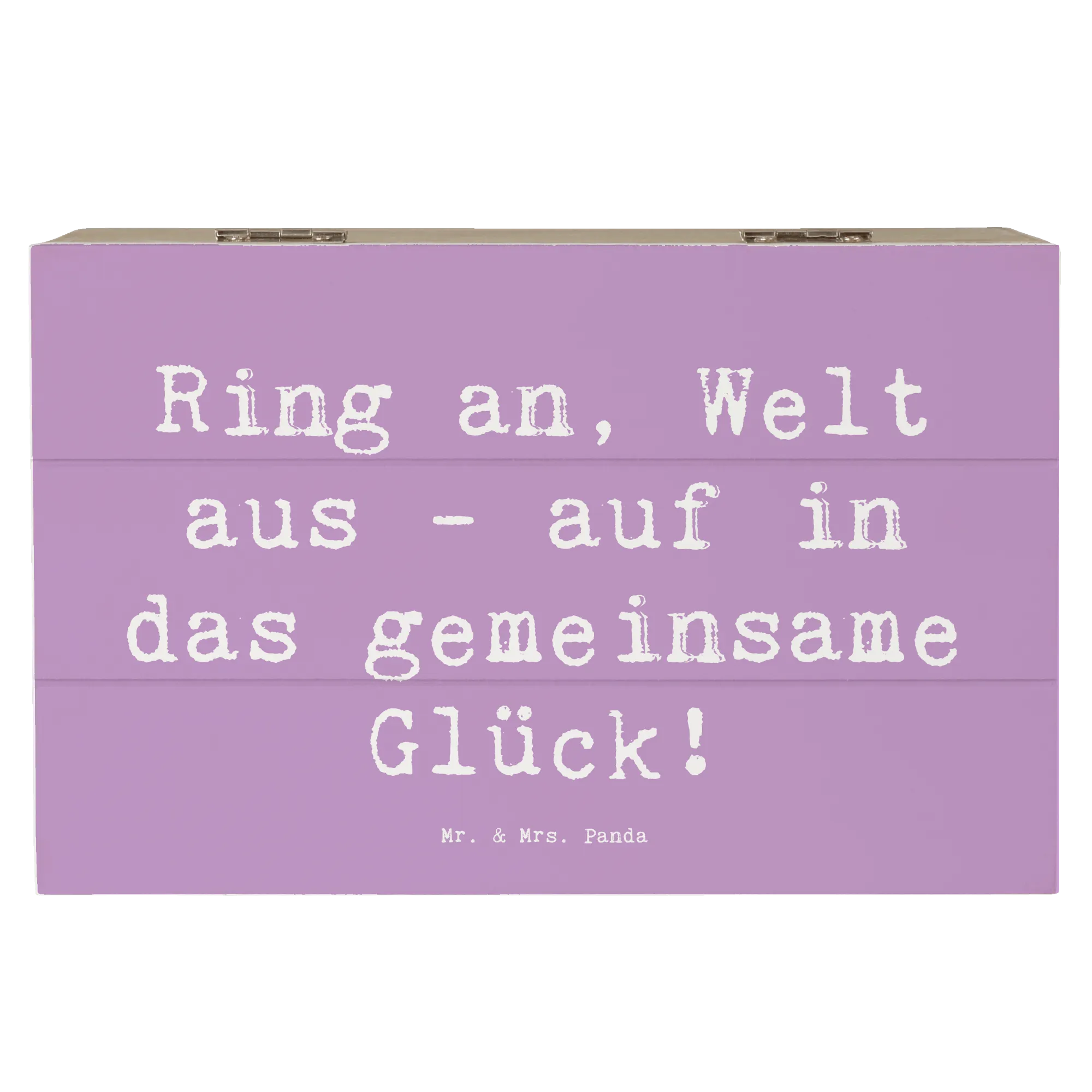 Die wunderschöne Holzkiste von Mr. & Mrs. Panda ist das perfekte Geschenk für all jene, die ihre besonderen Momente gebührend festhalten möchten. Mit dem inspirierenden Spruch "Ring an, Welt aus - auf in das gemeinsame Glück!" aus der einzigartigen Hochzeitskollektion ist diese Kiste der ideale Aufbewahrungsort für all deine wertvollen Erinnerungen an die Verlobung und das bevorstehende Leben zu zweit.