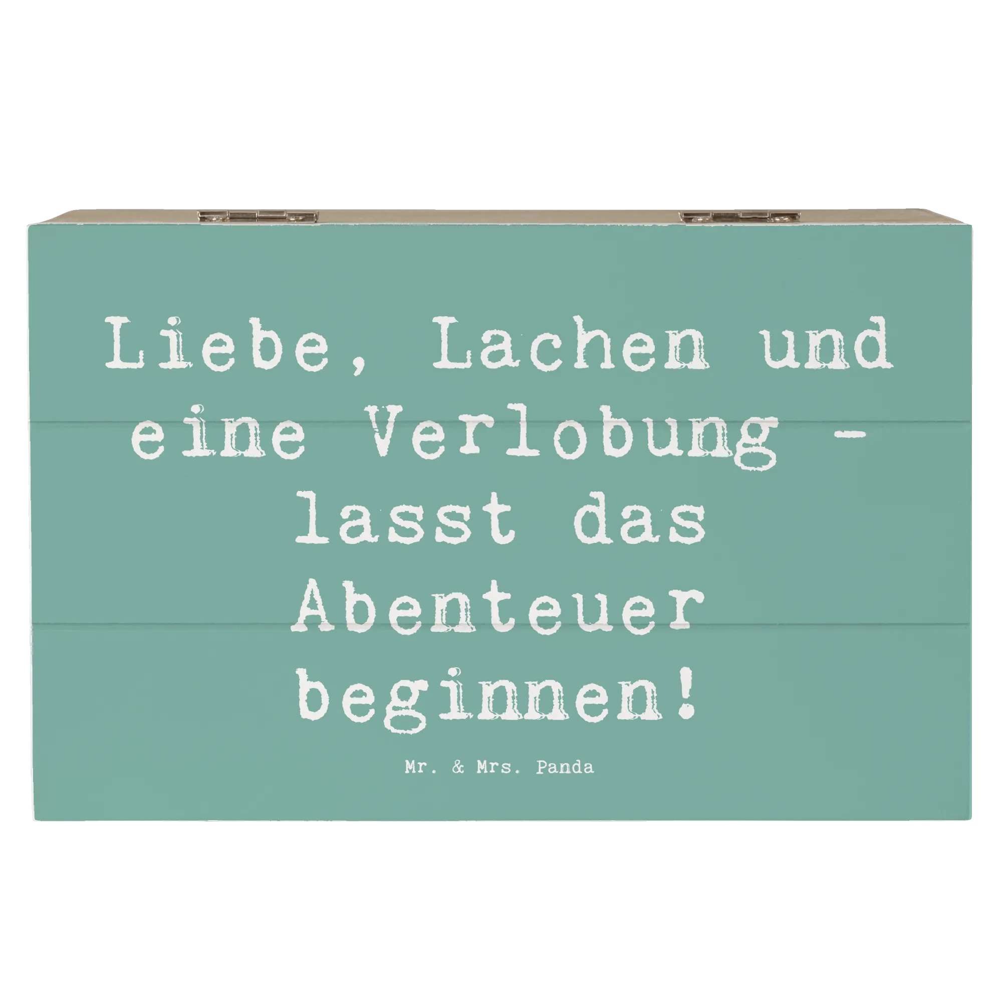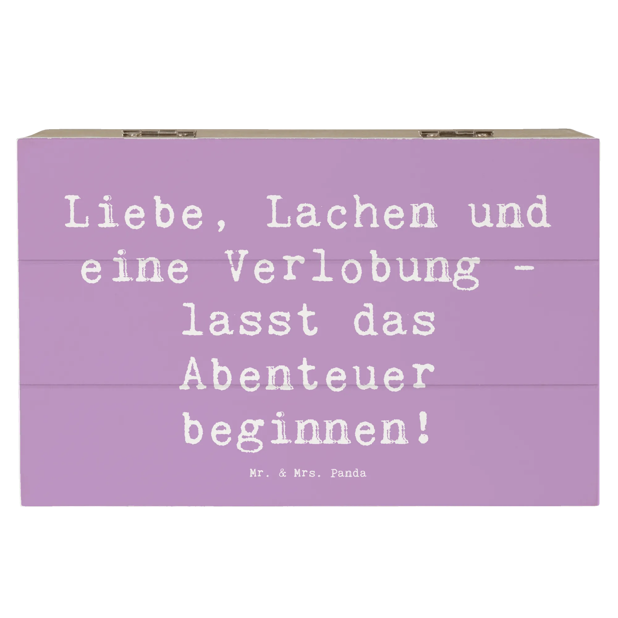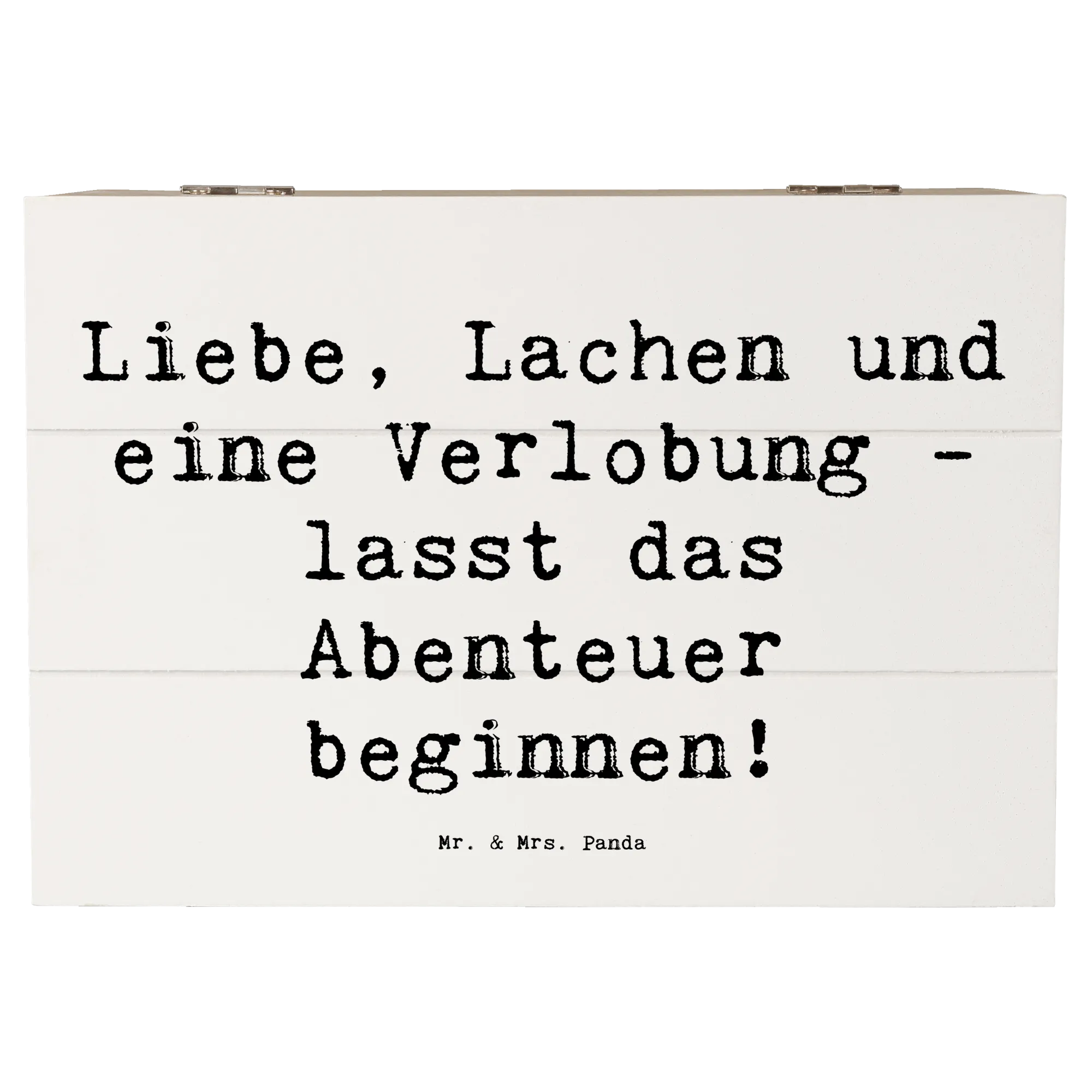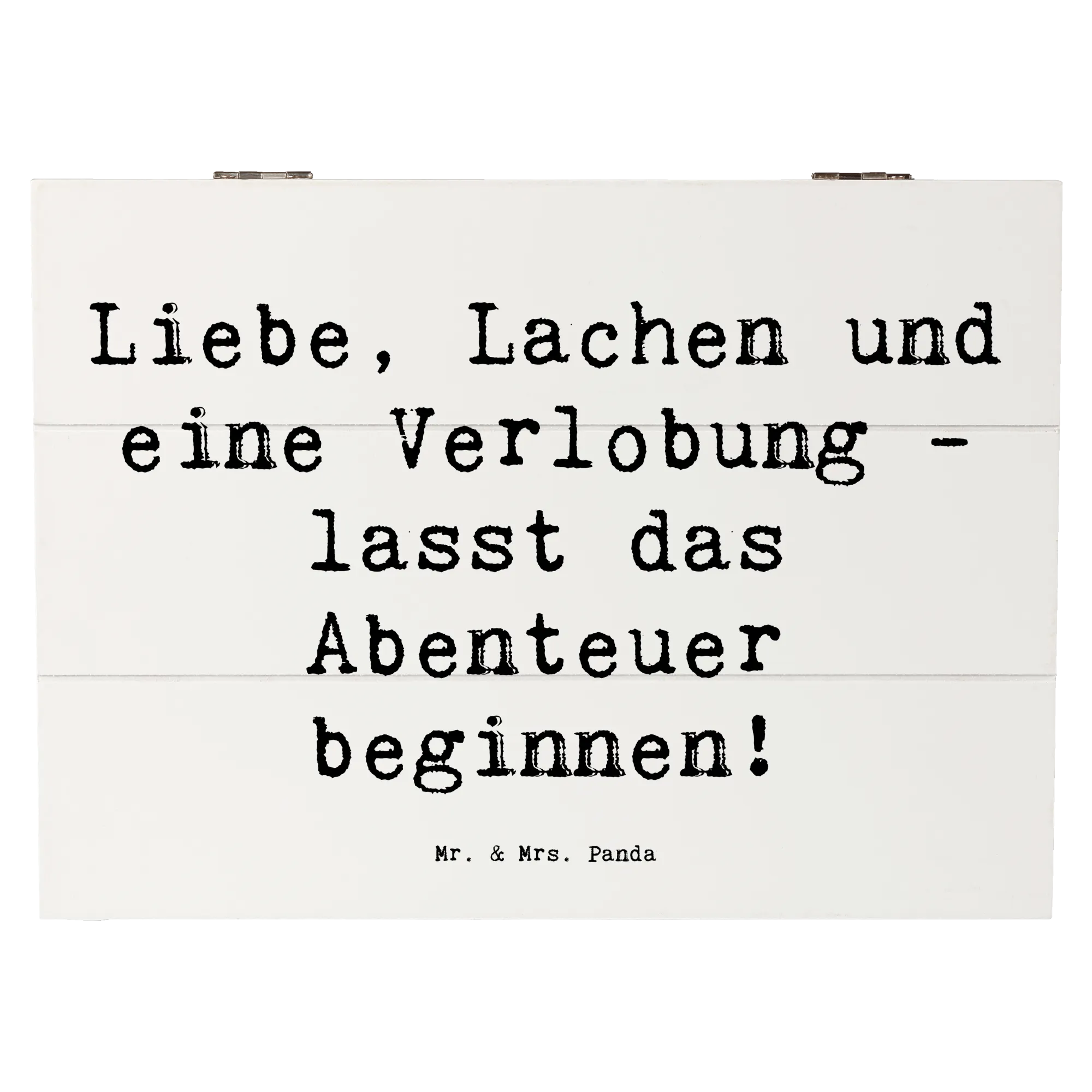 Du bist auf der Suche nach dem perfekten Geschenk für eine Verlobungsfeier? Dann ist die wunderschöne Holzkiste von Mr. & Mrs. Panda genau das richtige für dich! Mit dem liebevollen Motiv "Verlobungsfeier" und dem Spruch "Liebe, Lachen und eine Verlobung - lasst das Abenteuer beginnen!" ist sie ein Highlight für jedes künftige Brautpaar. Diese Holzkiste ist nicht nur stabil und nachhaltig, sondern auch ein idealer Aufbewahrungsort für all die besonderen Dinge, die während der Hochzeitsvorbereitungen oder bei der Verlobung gesammelt werden.