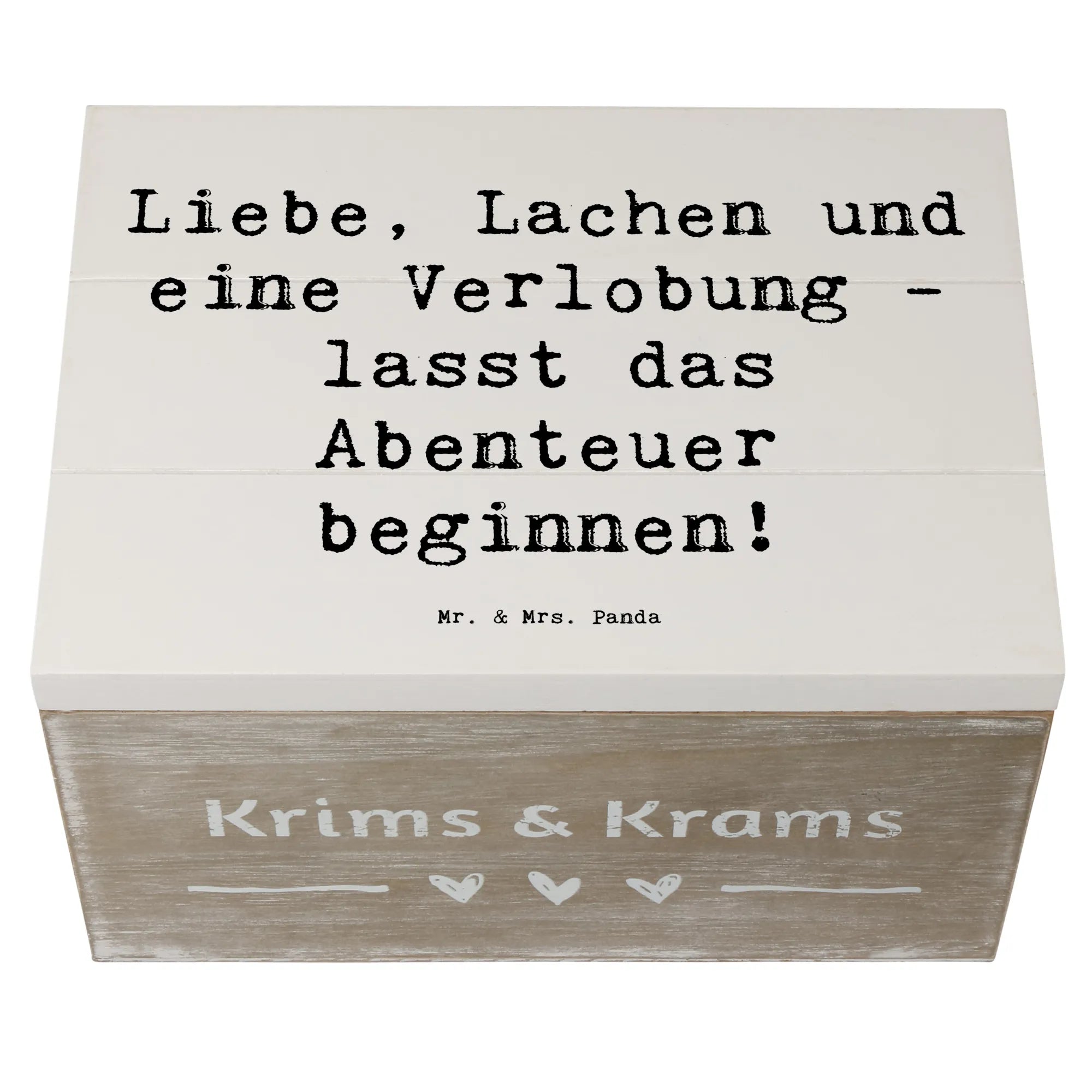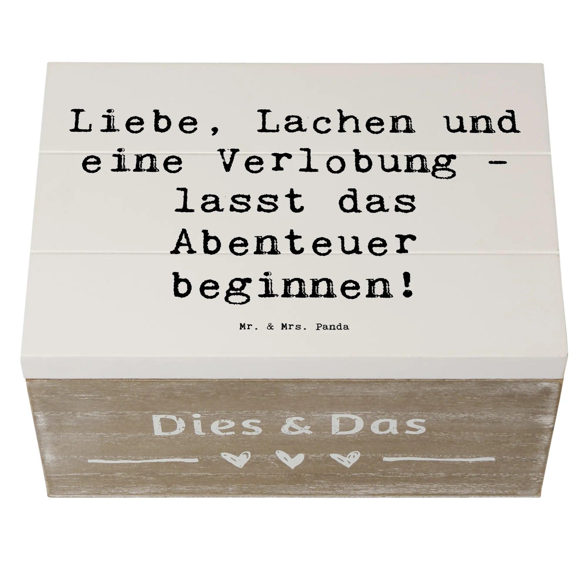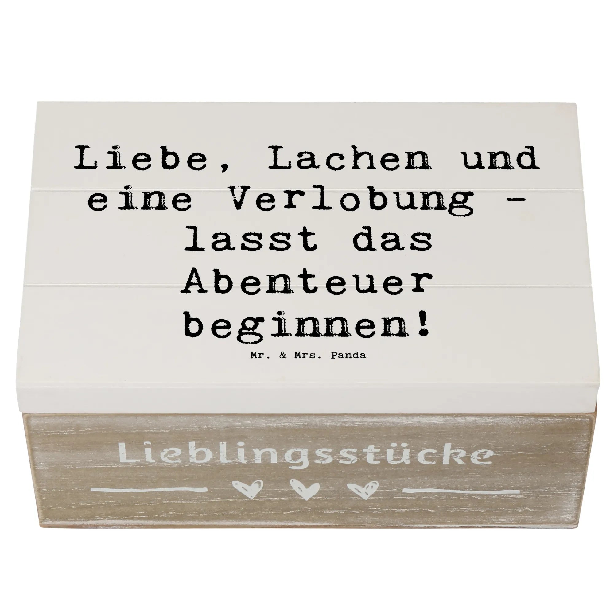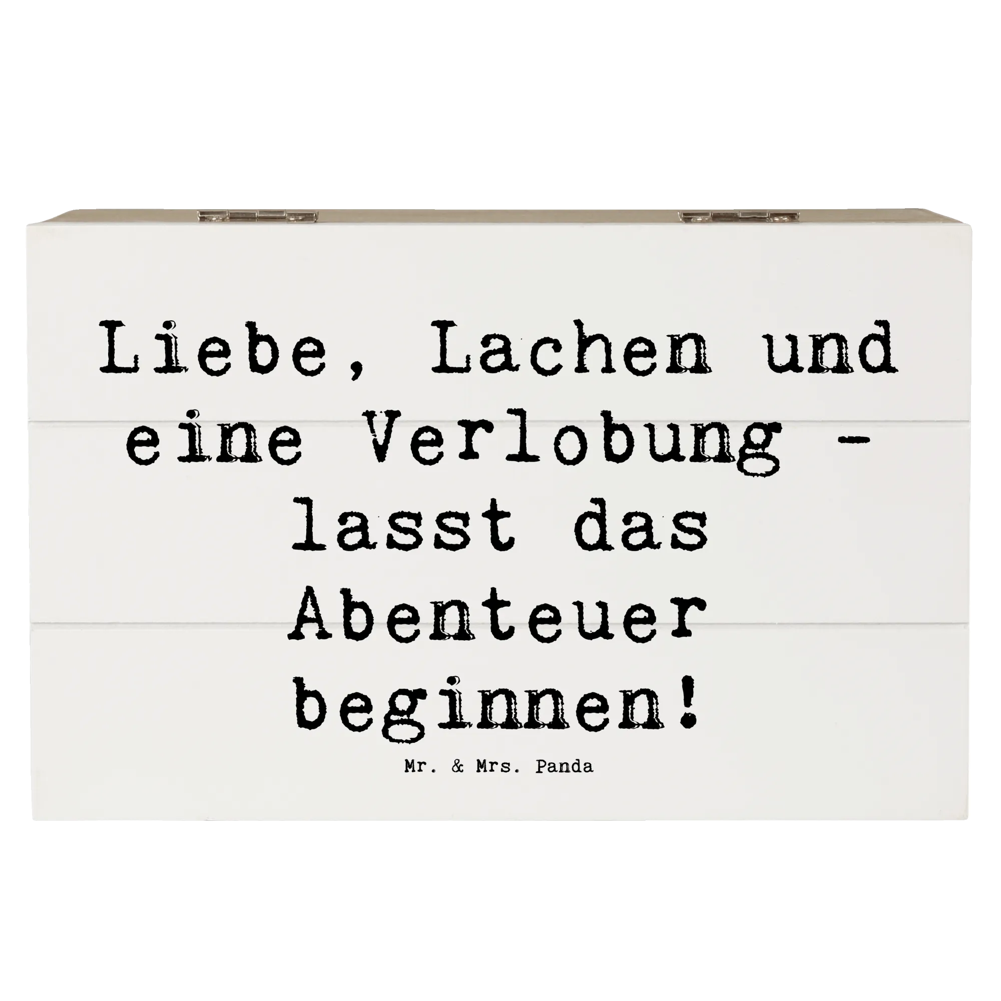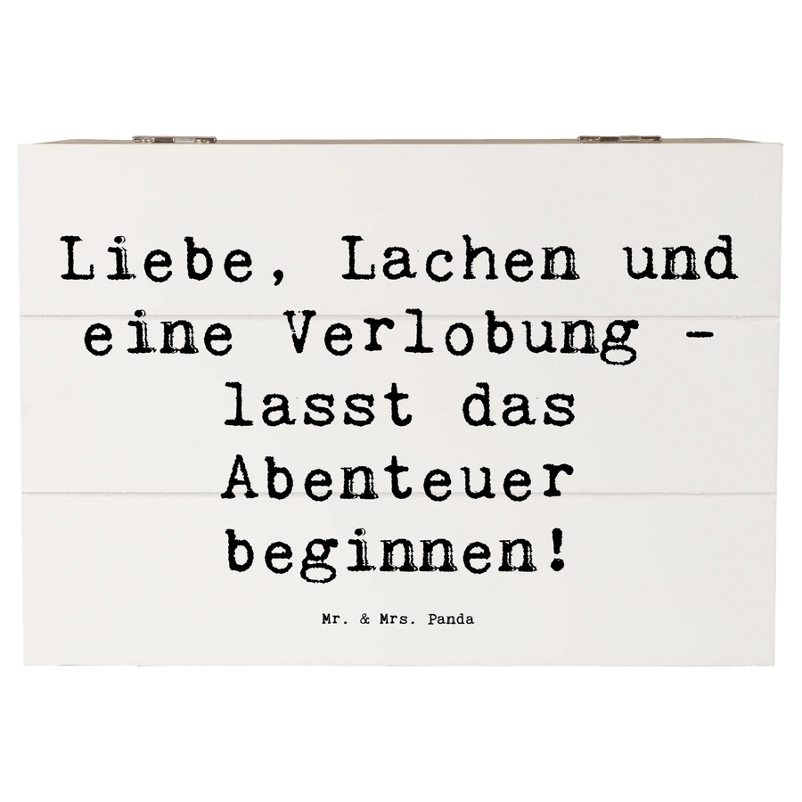 Entdecke die zauberhafte Holzkiste zur Verlobungsfeier von Mr. & Mrs. Panda – das perfekte Accessoire für einen der schönsten Momente deines Lebens! Diese wunderbare Kiste ist nicht nur eine erstklassige Aufbewahrungsbox, sondern auch eine liebevolle Erinnerungskiste für eure einzigartige Verlobung. Mit dem eingängigen Spruch "Liebe, Lachen und eine Verlobung - lasst das Abenteuer beginnen!" macht sie jeden festlichen Anlass noch besonderer.