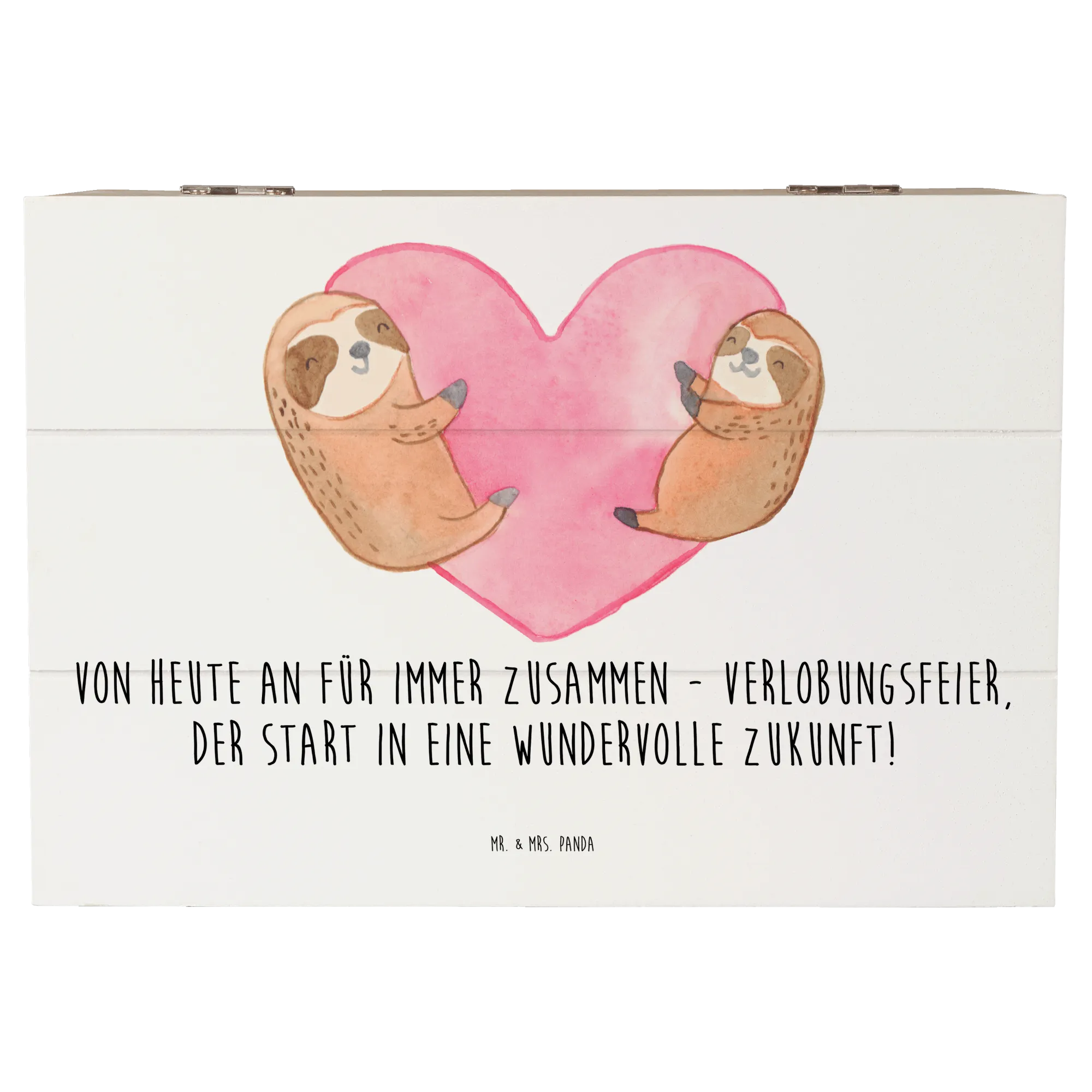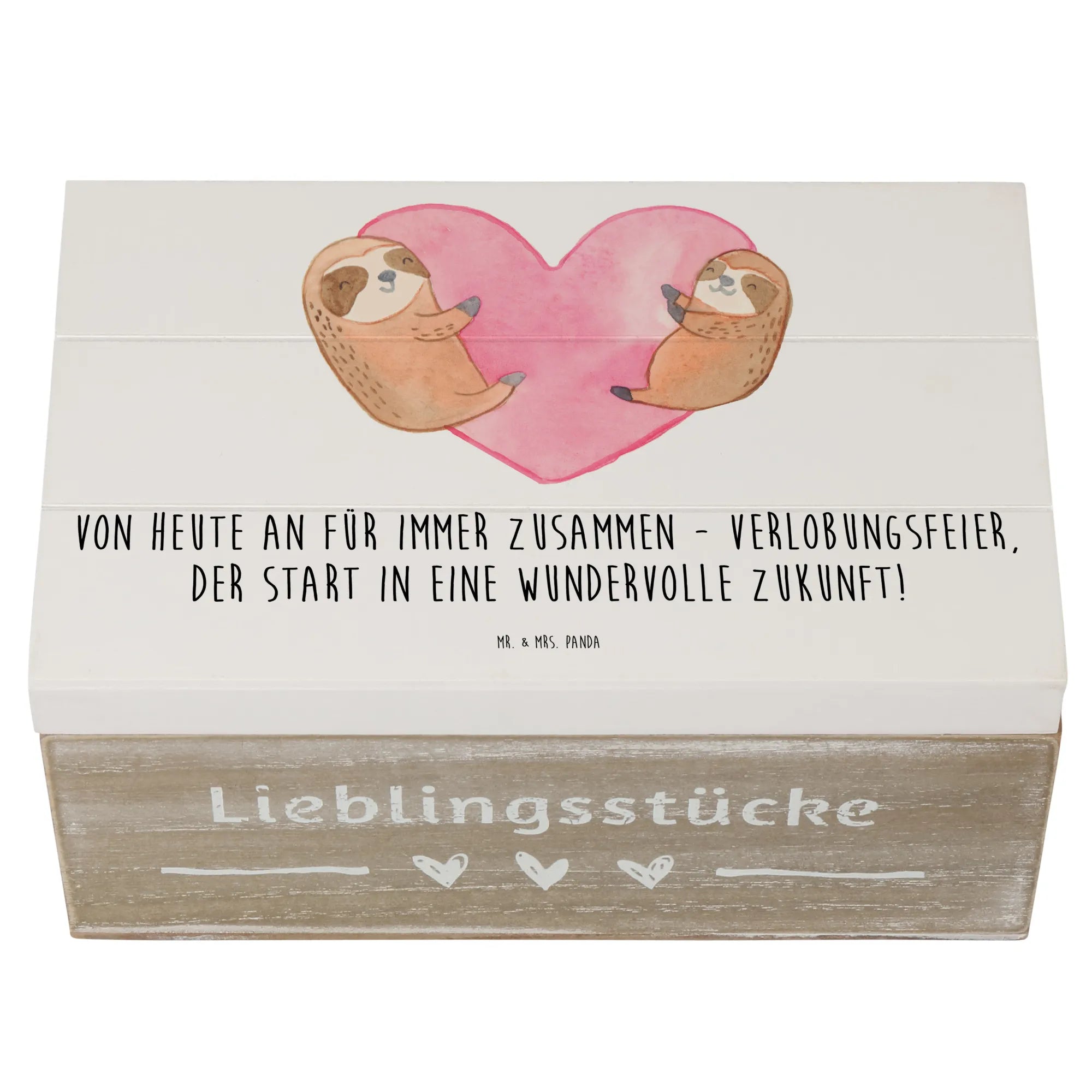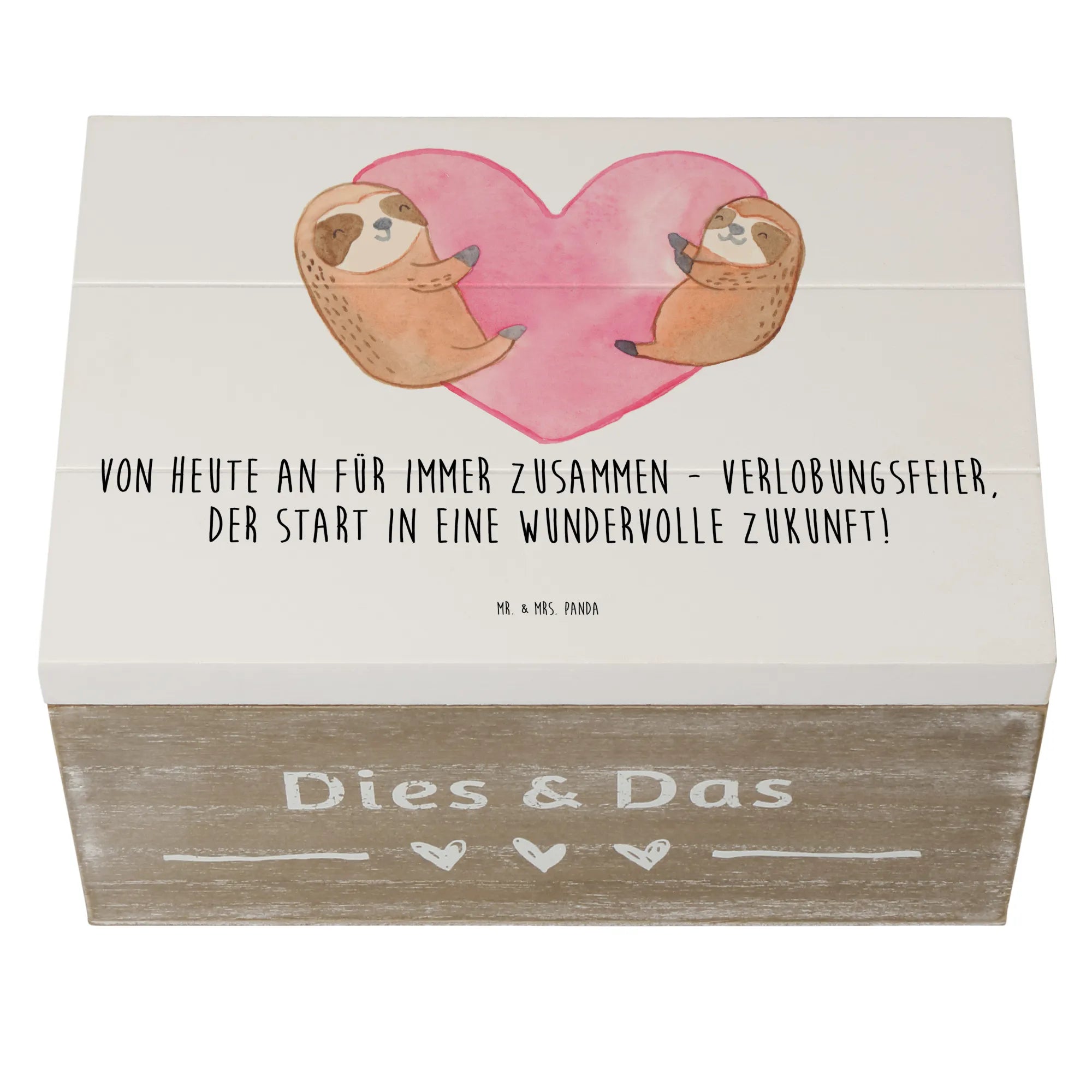 Die Holzkiste zur Verlobungsfeier von Mr. & Mrs. Panda ist das perfekte Geschenk für all jene besonderen Anlässe, die eure Herzen höher schlagen lassen! Sie ist nicht nur eine wunderschöne Erinnerungskiste, sondern auch ein idealer Aufbewahrungsort für alle schätzbaren Momente. Mit dem liebevollen Spruch "Von heute an für immer zusammen - Verlobungsfeier, der Start in eine wundervolle Zukunft!" zaubert sie jedem ein Lächeln ins Gesicht.