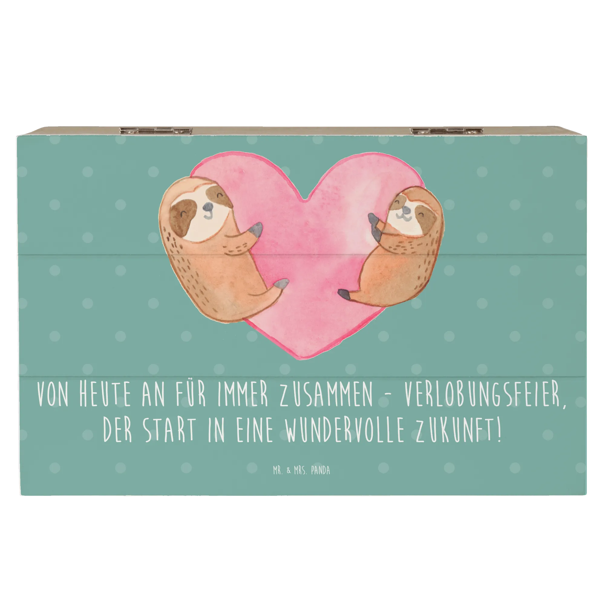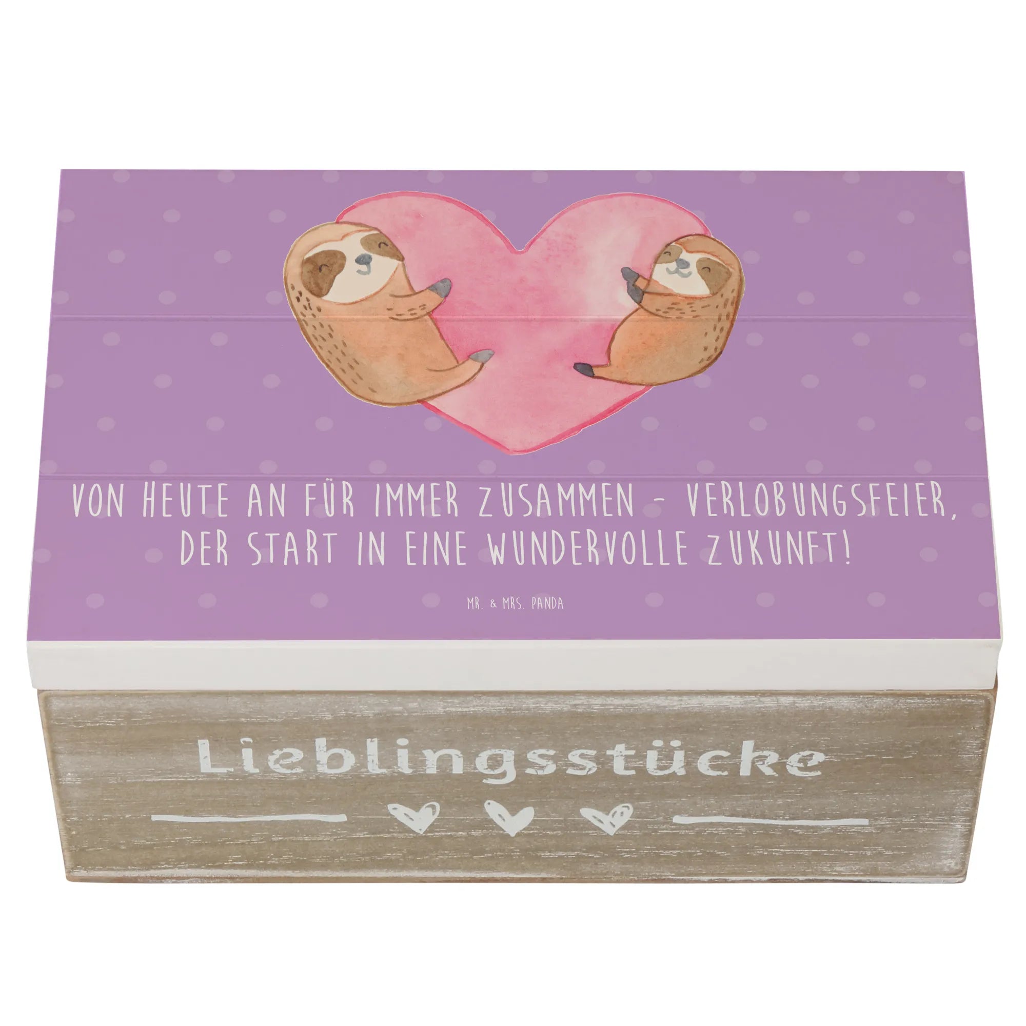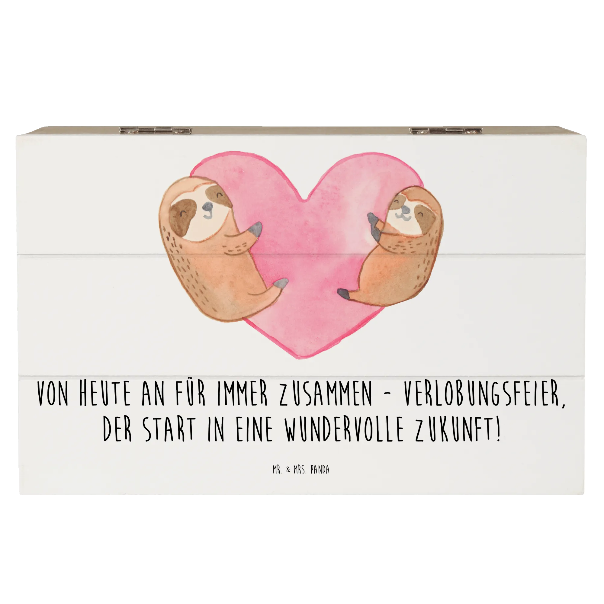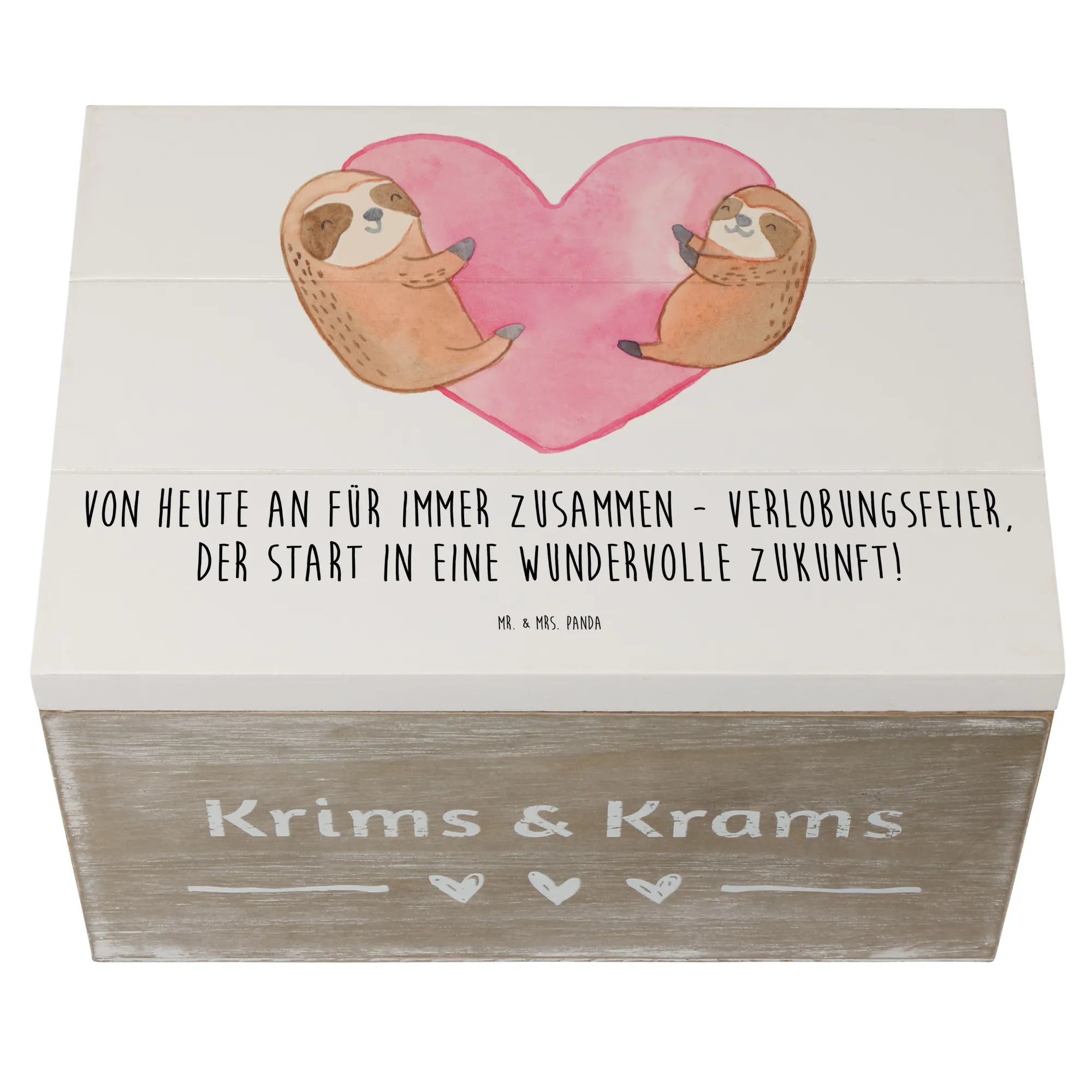 Die Holzkiste zur Verlobungsfeier von Mr. & Mrs. Panda ist das perfekte Geschenk für all jene besonderen Anlässe, die eure Herzen höher schlagen lassen! Sie ist nicht nur eine wunderschöne Erinnerungskiste, sondern auch ein idealer Aufbewahrungsort für alle schätzbaren Momente. Mit dem liebevollen Spruch "Von heute an für immer zusammen - Verlobungsfeier, der Start in eine wundervolle Zukunft!" zaubert sie jedem ein Lächeln ins Gesicht.