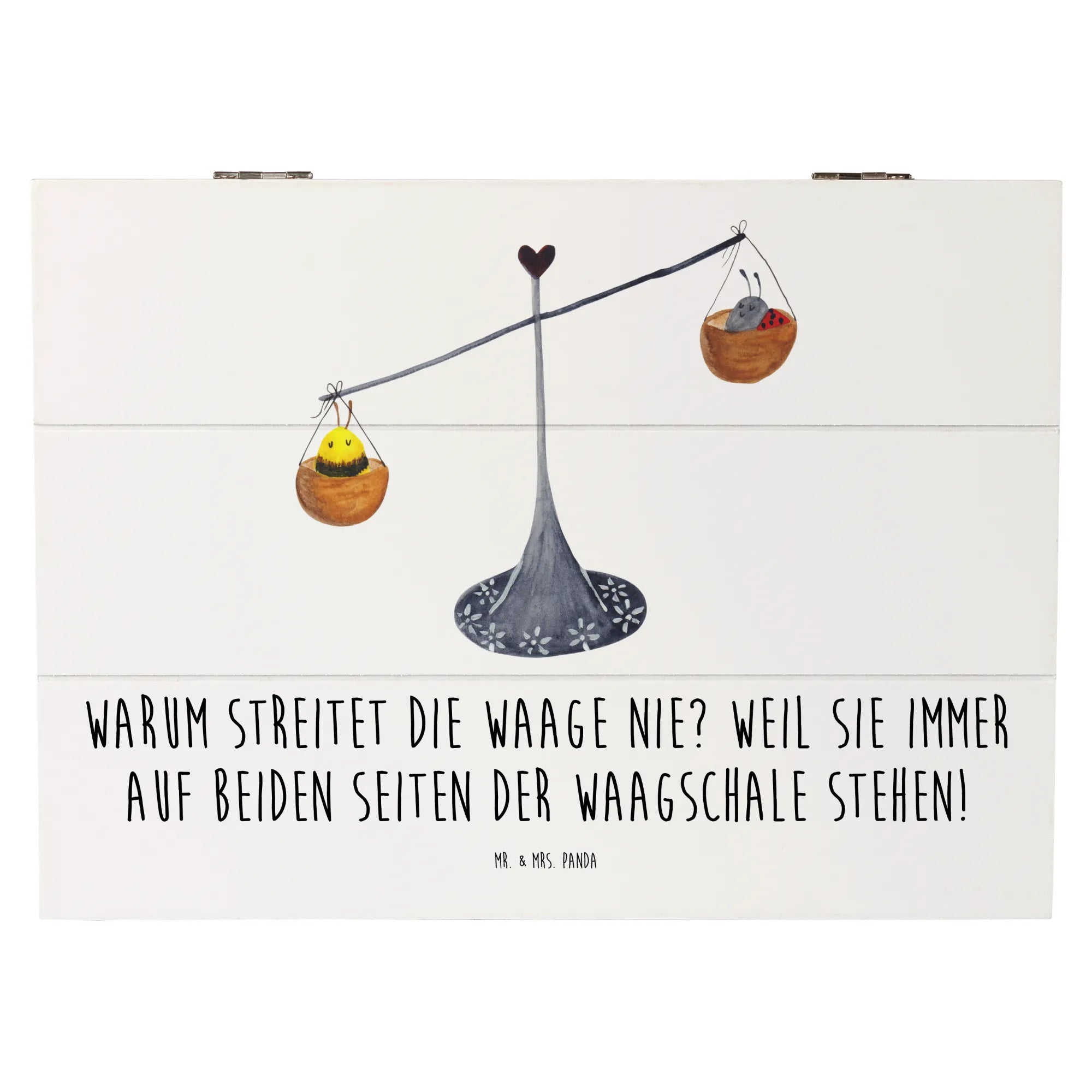 Die Holzkiste Waage von Mr. & Mrs. Panda ist nicht nur ein wunderschönes Deko-Element, sondern auch die perfekte Erinnerungskiste für alle Lebewesen unter dem Sternzeichen Waage. Mit ihren abgerundeten Ecken und dem hellen, freundlichen Design ist diese Kiste ideal, um Deine kostbaren Schätze stilvoll zu präsentieren. Egal, ob für persönliche Erinnerungen, Kindheitserlebnisse, Fotos oder kleine Geschenke – in dieser stabilen und robusten Aufbewahrungsbox finden all Deine wertvollen Schätze ihren Platz. Mit den Maßen von 19 x 12 x 10 cm bietet diese Kiste genug Platz, um all die Dinge zu verstauen, die Dir am Herzen liegen.
