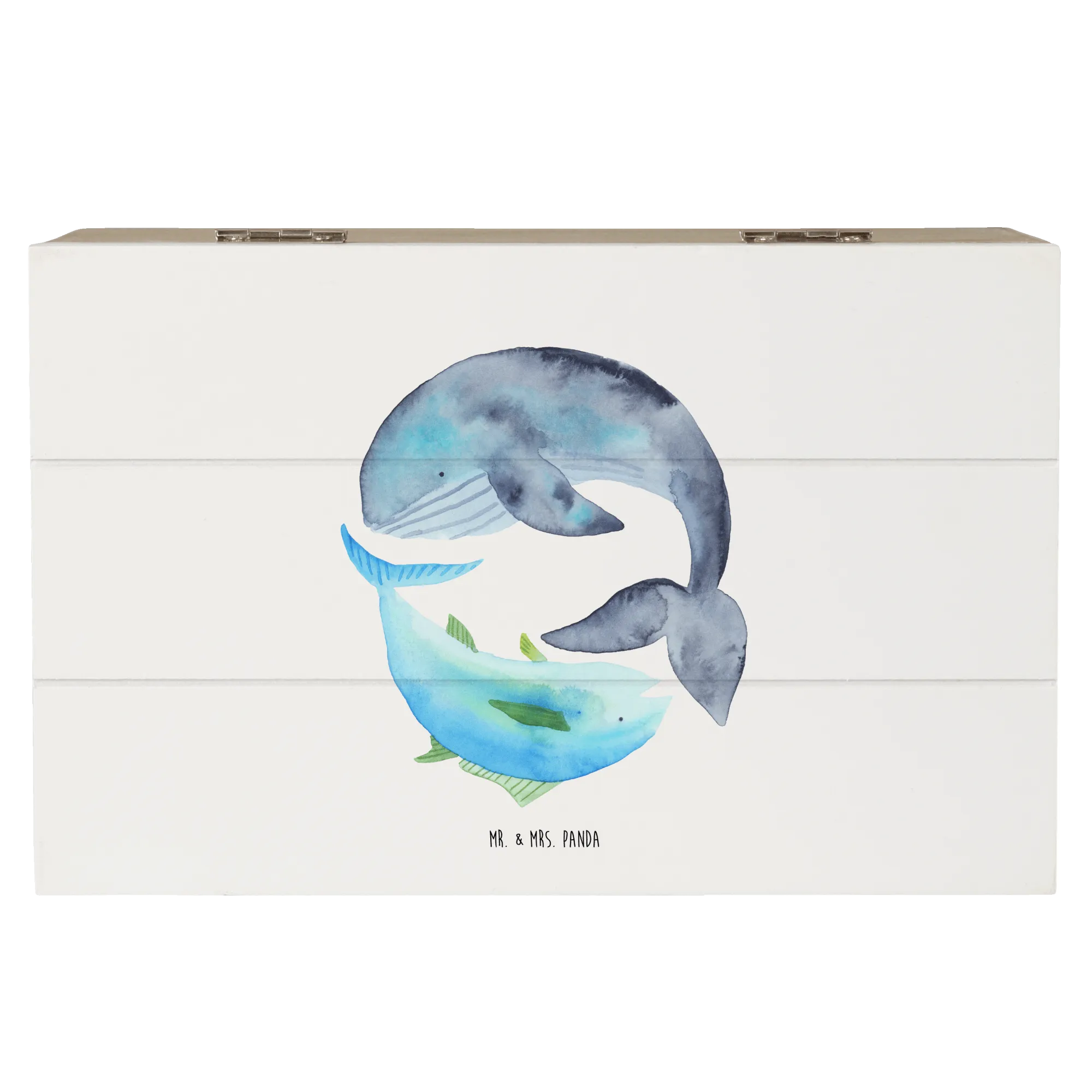 Die wunderschöne Holzkiste mit dem liebevollen Motiv von Walfisch und Thunfisch aus der Small World Kollektion von Mr. & Mrs. Panda ist der perfekte Begleiter für all deine wertvollen Erinnerungen!