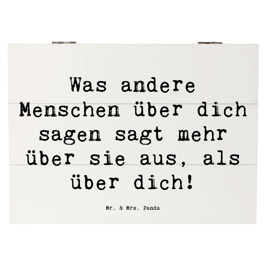 Diese nachhaltige und liebevoll gestaltete Erinnerungskiste aus robuster Premium Hartfaser bietet nicht nur einen sicheren Platz für all die wertvollen Schätze, sondern auch eine Botschaft, die Mut macht. Bedruckt mit dem inspirierenden Spruch "Was andere Menschen über dich sagen, sagt mehr über sie aus, als über dich!", bringt sie nicht nur Erinnerungen, sondern auch Trost und Zuversicht.
