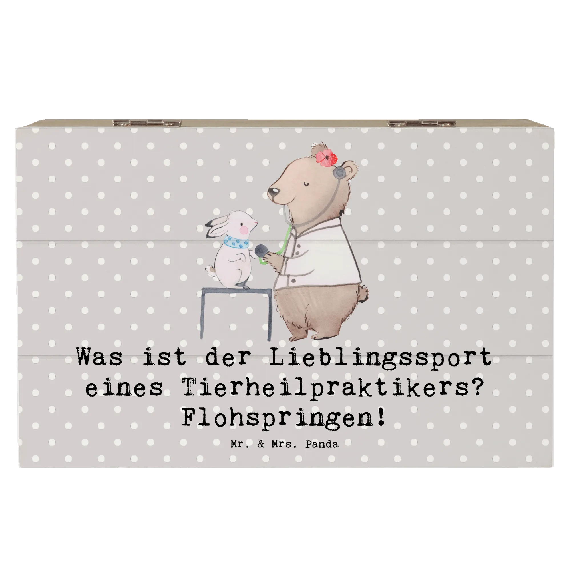 Holzkiste Was ist der Lieblingssport eines Tierheilpraktikers? Flohspringen! - 22 x 15 cm - Grau Pastell