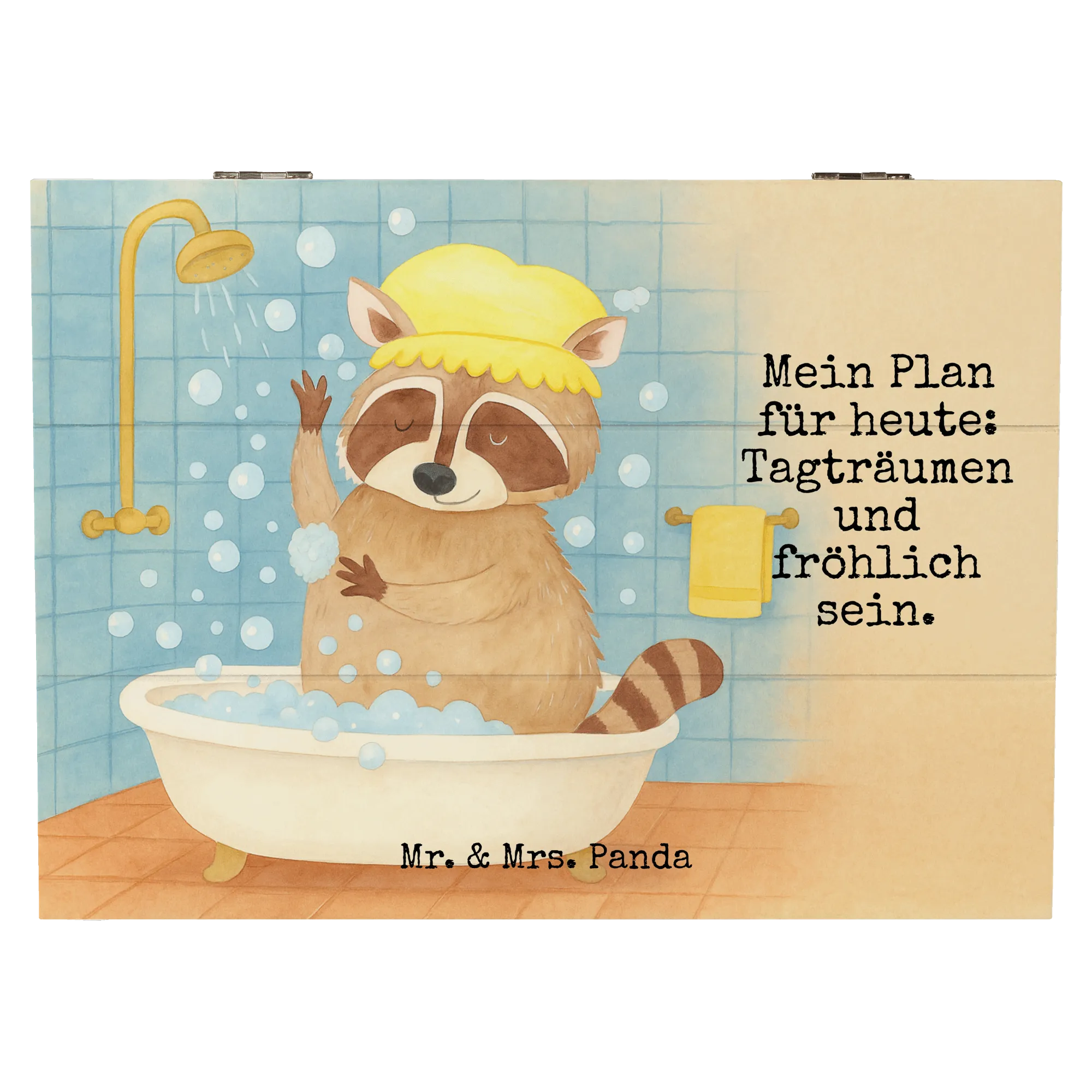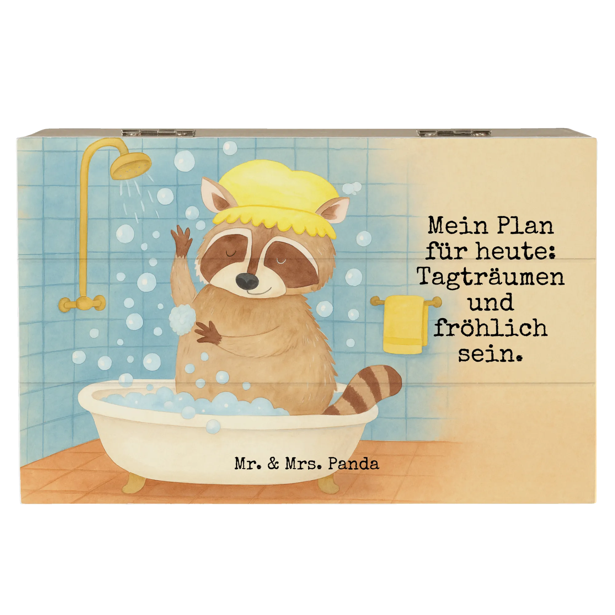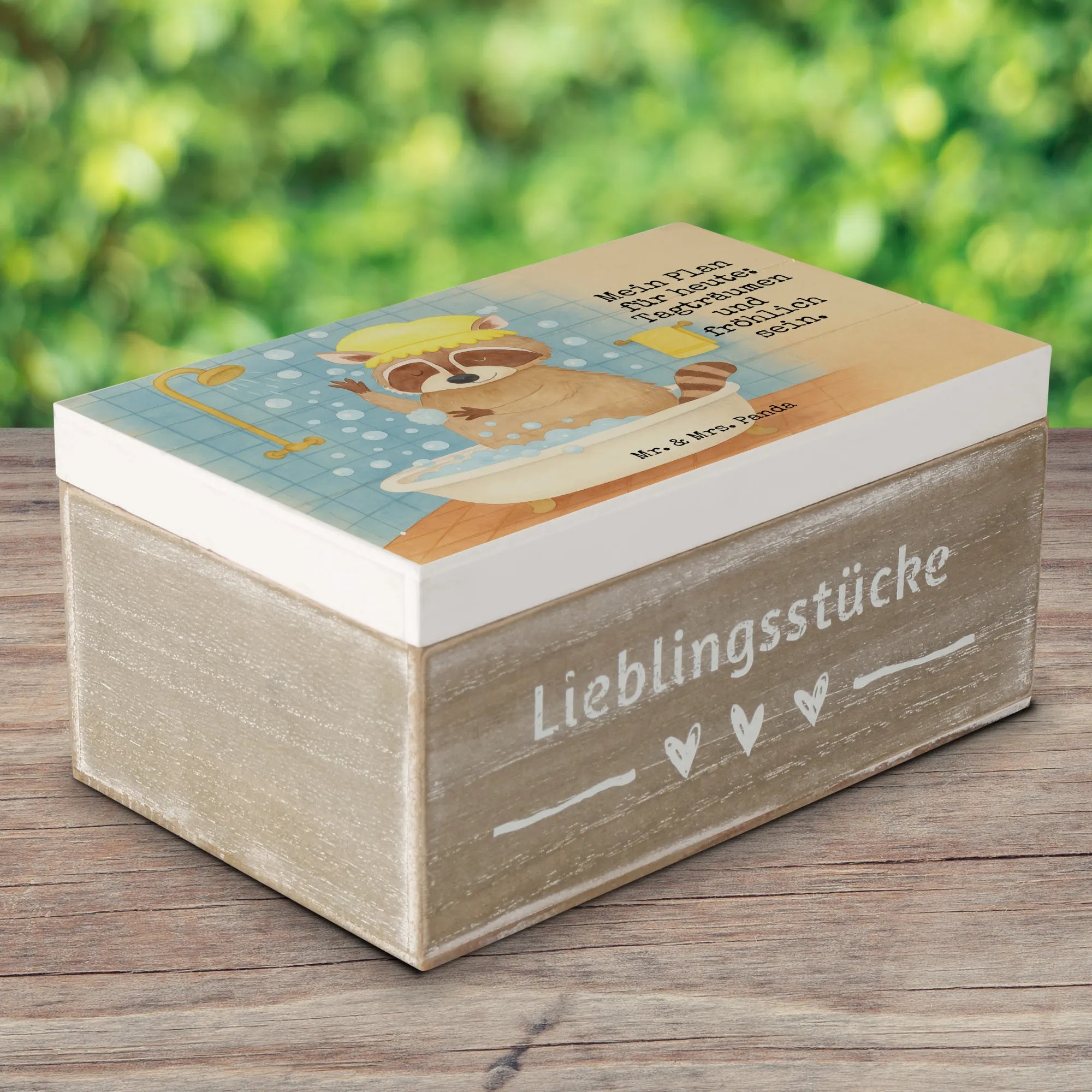 Holzkiste Waschbär Design Schatzkiste, Geschenkbox, Geschenkdose, Erinnerungsbox, Dekokiste, Kiste, XXL, Holzkiste, Erinnerungskiste, Truhe, Aufbewahrungsbox, Schatulle, Tiermotive, Gute Laune, lustige Sprüche, Tiere, Fröhlich, Waschbär, Seifenblasen, Tagträumen, waschen, Plan