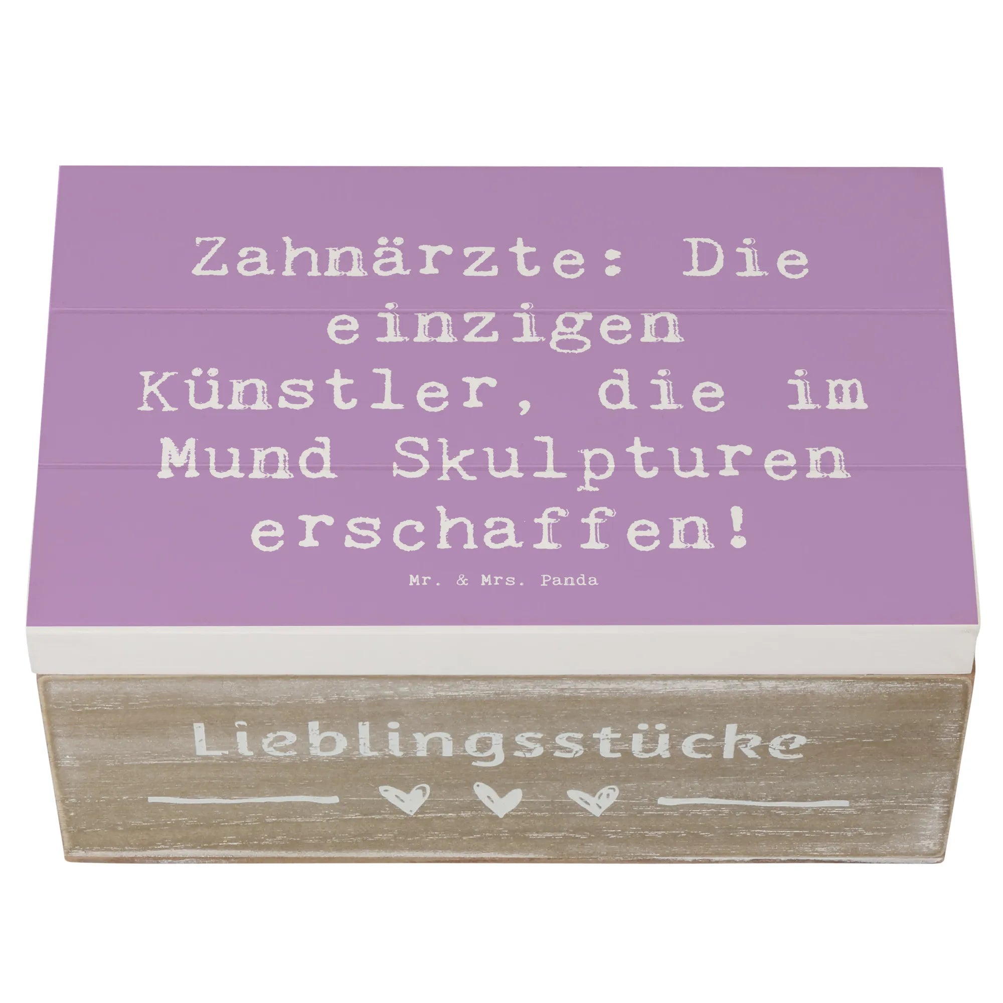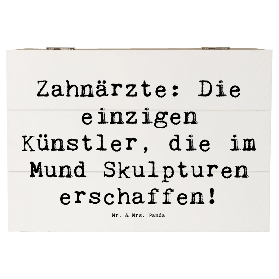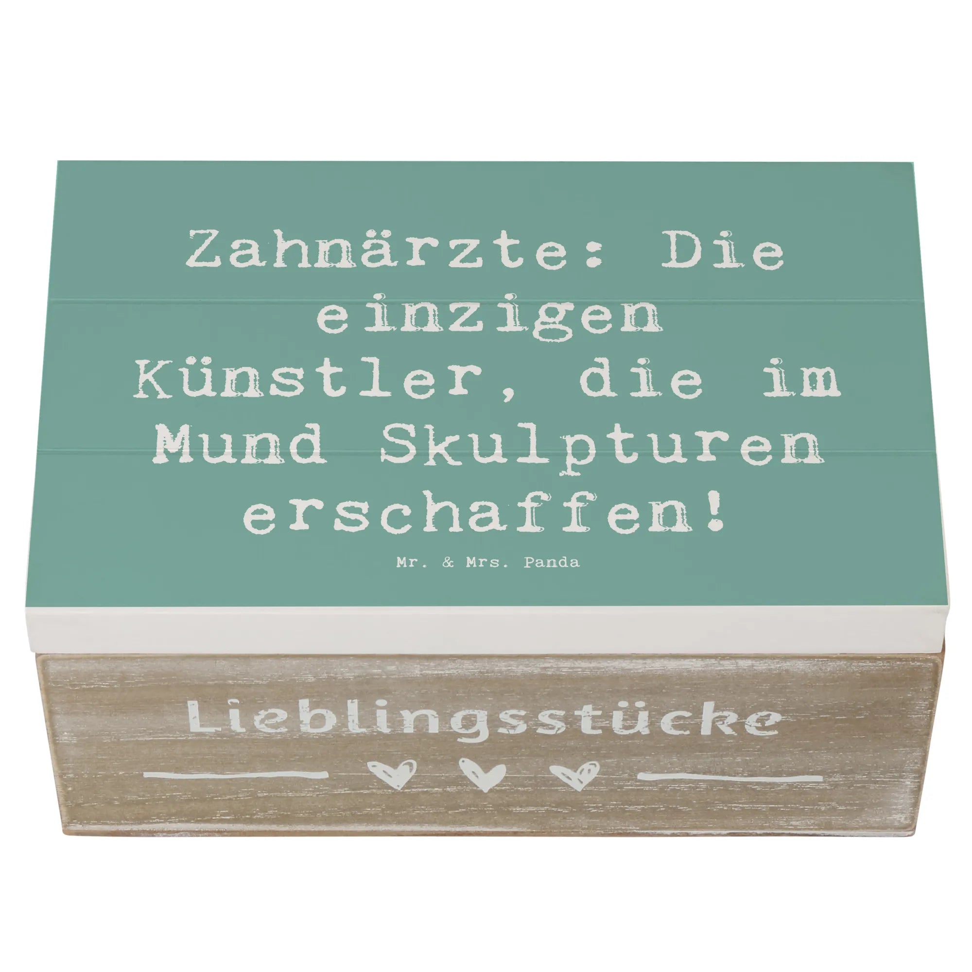Du suchst das perfekte Geschenk für einen Zahnarzt oder einen zahnmedizinisch begeisterten Freund? Dann ist die wunderschöne Holzkiste von Mr. & Mrs. Panda mit dem lustigen Spruch "Zahnärzte: Die einzigen Künstler, die im Mund Skulpturen erschaffen!" genau das Richtige!