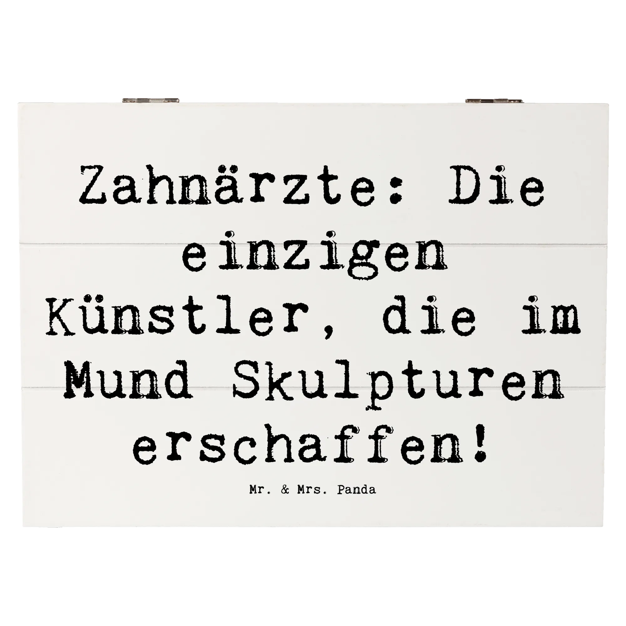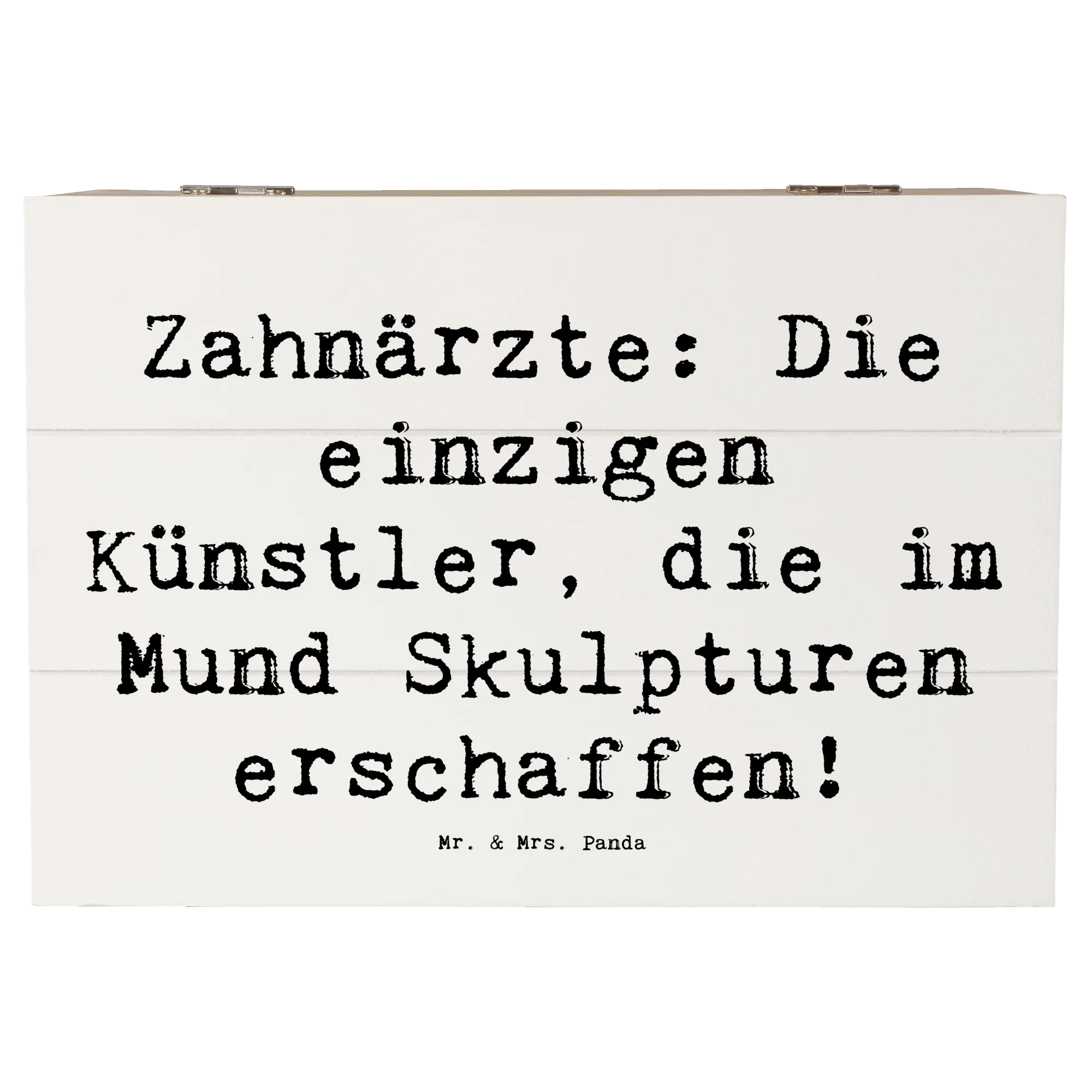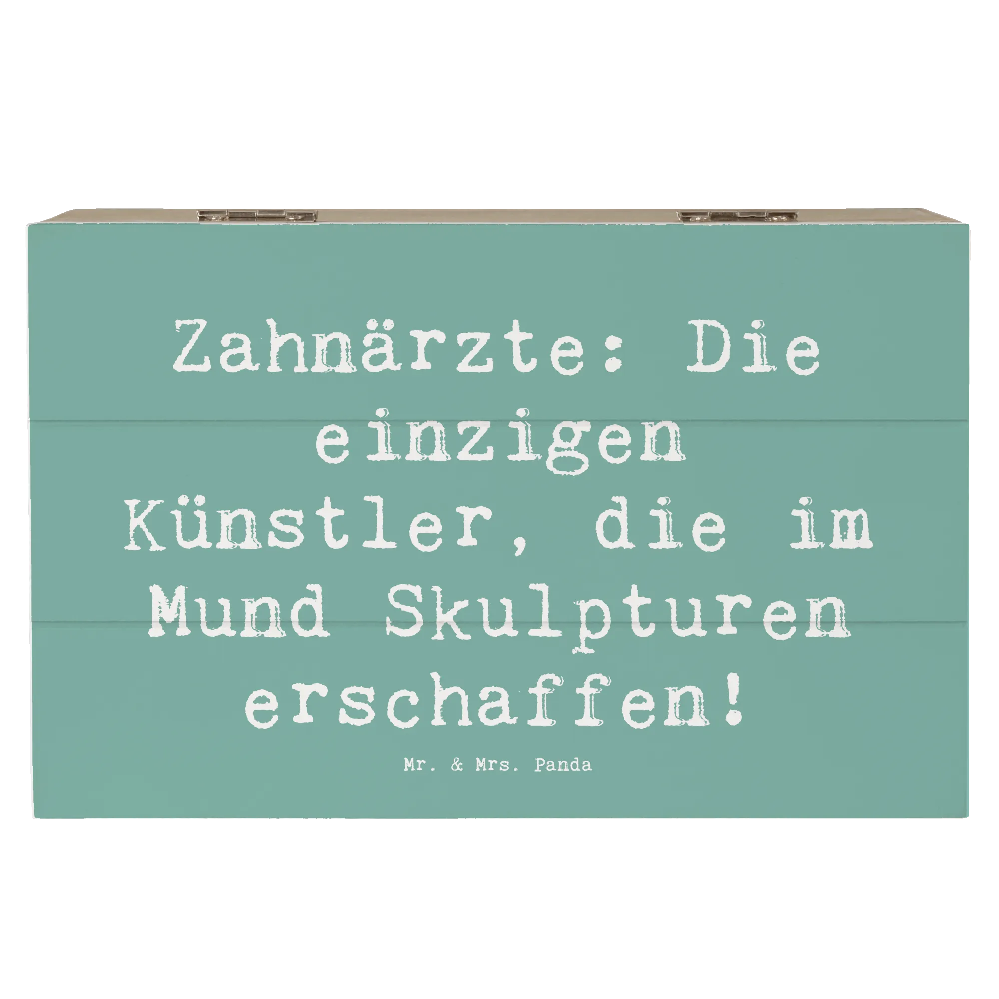 Du suchst das perfekte Geschenk für einen Zahnarzt oder einen zahnmedizinisch begeisterten Freund? Dann ist die wunderschöne Holzkiste von Mr. & Mrs. Panda mit dem lustigen Spruch "Zahnärzte: Die einzigen Künstler, die im Mund Skulpturen erschaffen!" genau das Richtige!