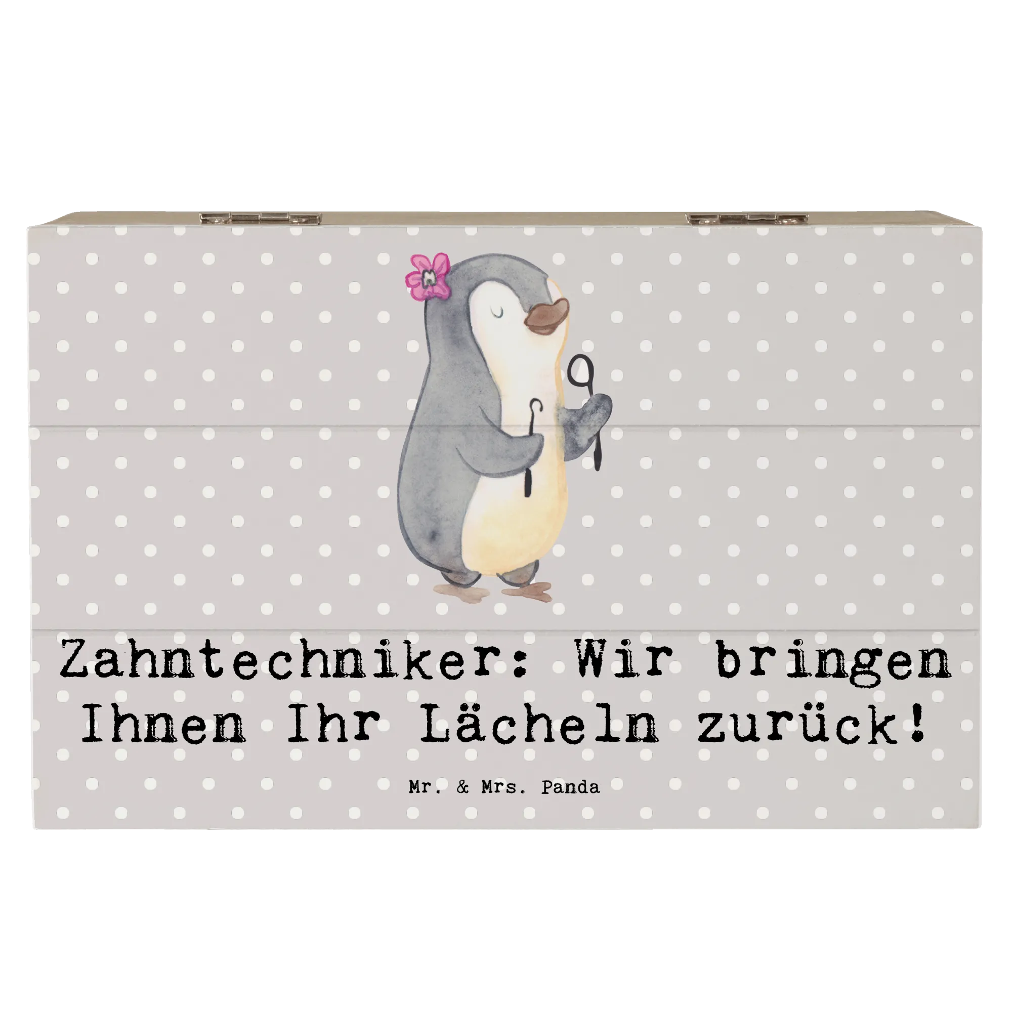 Die wunderschöne Holzkiste von Mr. & Mrs. Panda ist das perfekte Geschenk für Zahntechniker und ihre Liebsten! Mit dem einladenden Slogan 'Zahntechniker: Wir bringen Ihnen Ihr Lächeln zurück!' wird diese Kiste zum besonderen Aufbewahrungsort für Erinnerungen und Schätze.