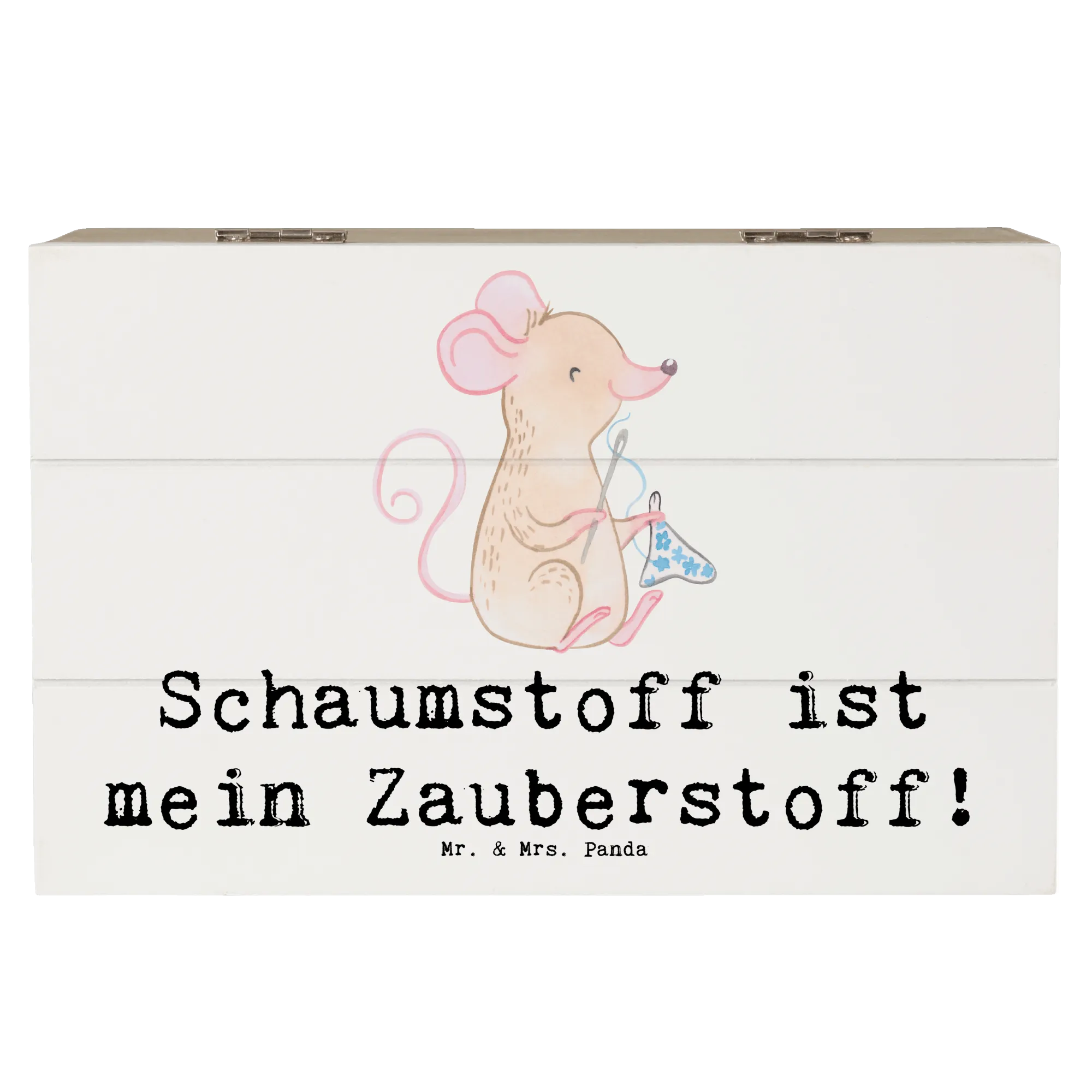 Die robuste Holzfaser sorgt dafür, dass die Kiste stabil und langlebig ist, sodass sie deinen Kostbarkeiten auch über viele Jahre hinweg Schutz bieten kann. Die Arbeit einer Polsterin ist bekannt für Geduld, Präzision und kreatives Talent. Diese Holzkiste ist mit dem süßen Motto 'Schaumstoff ist mein Zauberstoff!' versehen, was sie zu einem perfekten Geschenk für jeden macht, der in diesem Handwerk tätig ist oder sich dafür interessiert.