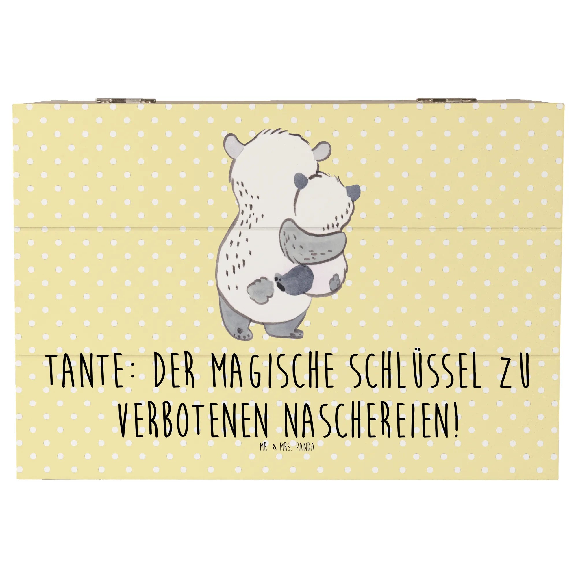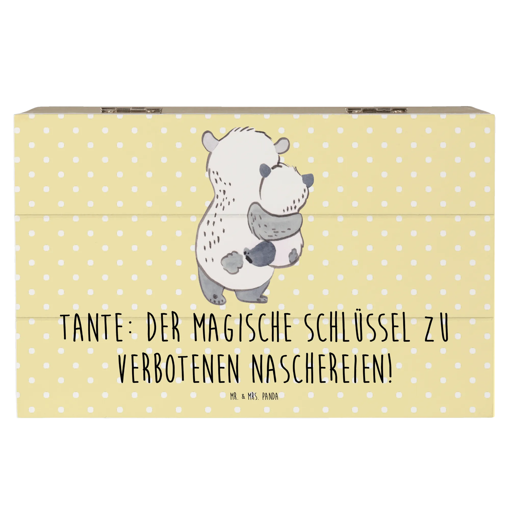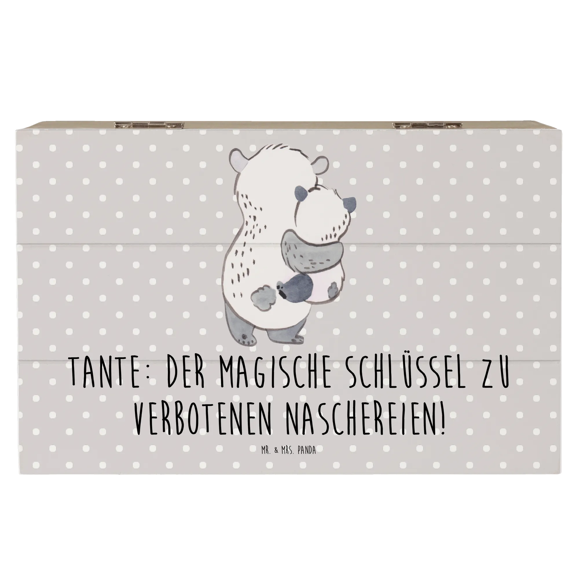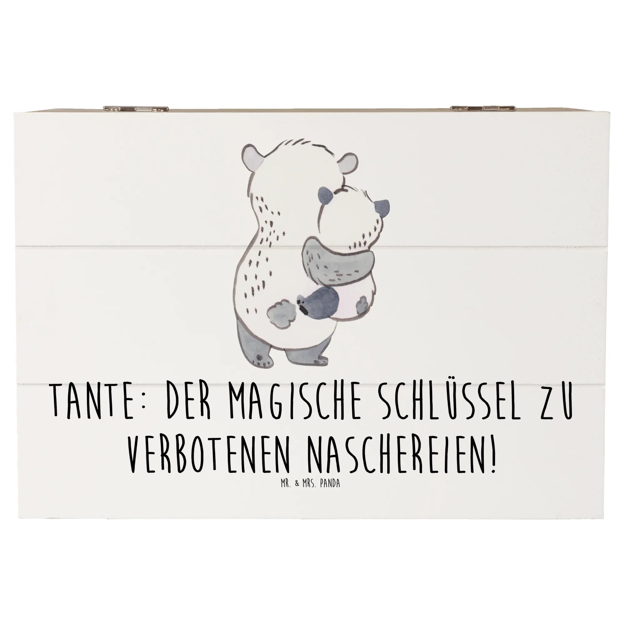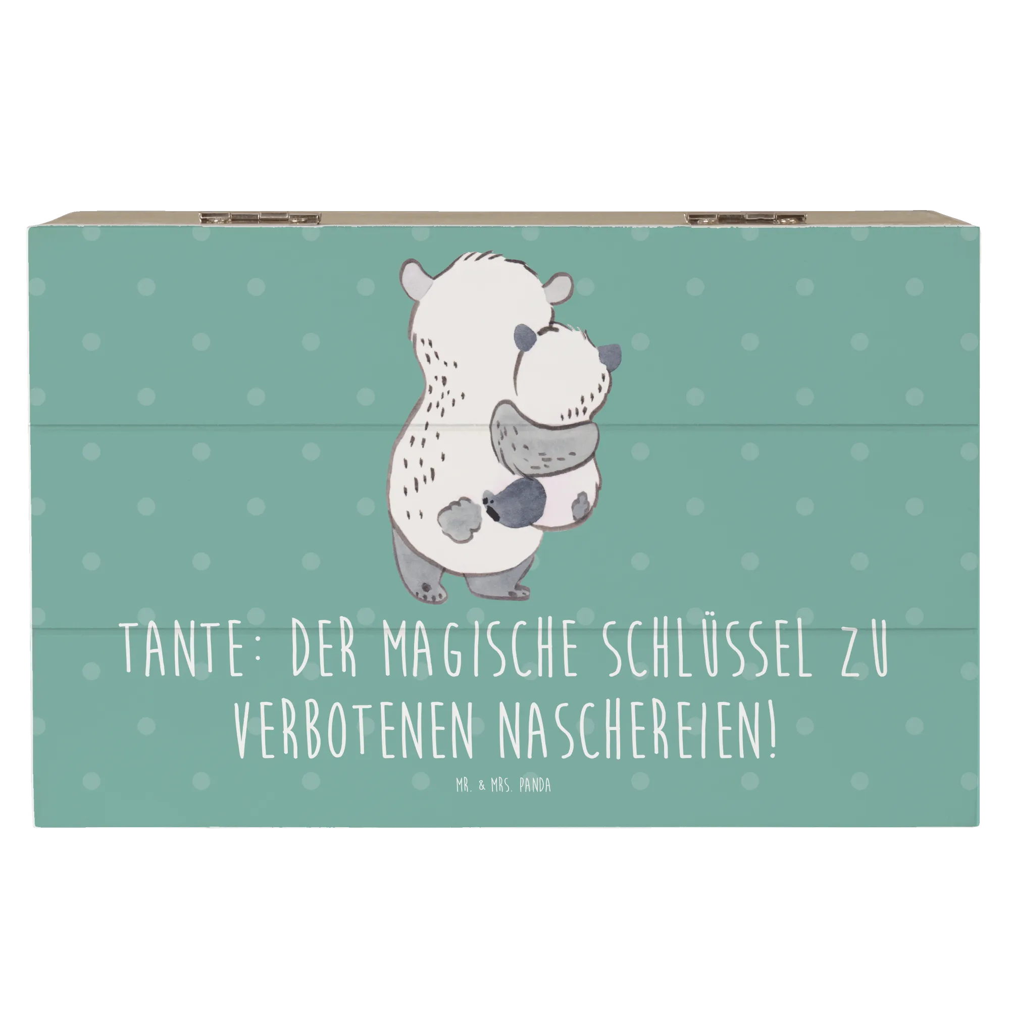 Entdecke die zauberhafte Holzkiste "Tante" von Mr. & Mrs. Panda! Diese wunderschöne Kiste ist nicht nur ein praktischer Aufbewahrungsort für all Deine wertvollen Schätze, sondern auch ein ganz besonderes Geschenk für Deine Lieblings-Tante. Mit einem liebevollen Motiv und dem bezaubernden Spruch "Tante: Der magische Schlüssel zu verbotenen Naschereien!" macht sie jeden Anlass unvergesslich. Egal ob für einen Geburtstag, ein Jubiläum oder einfach als kleine Dankesüberraschung – diese Erinnerungskiste ist das perfekte Geschenk für Tanten, die immer für ihre Nichten und Neffen da sind.