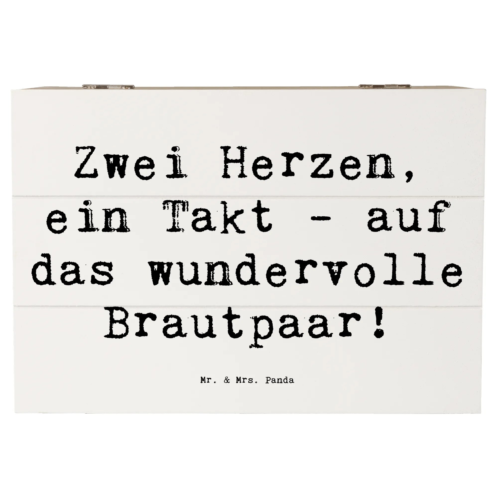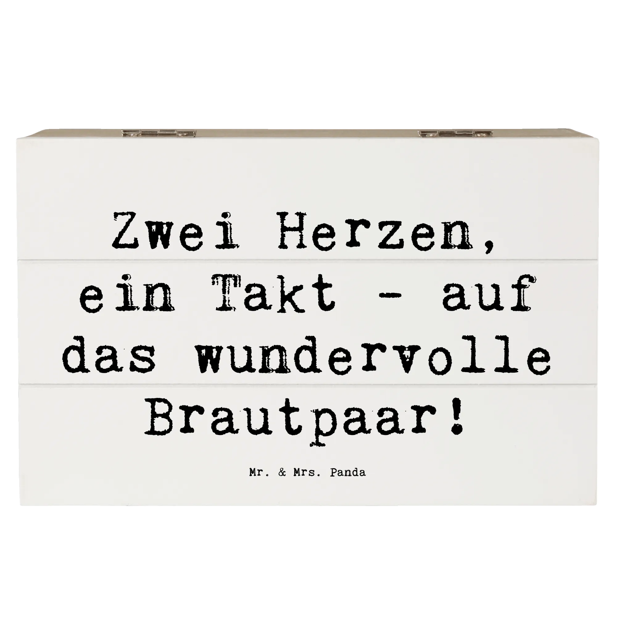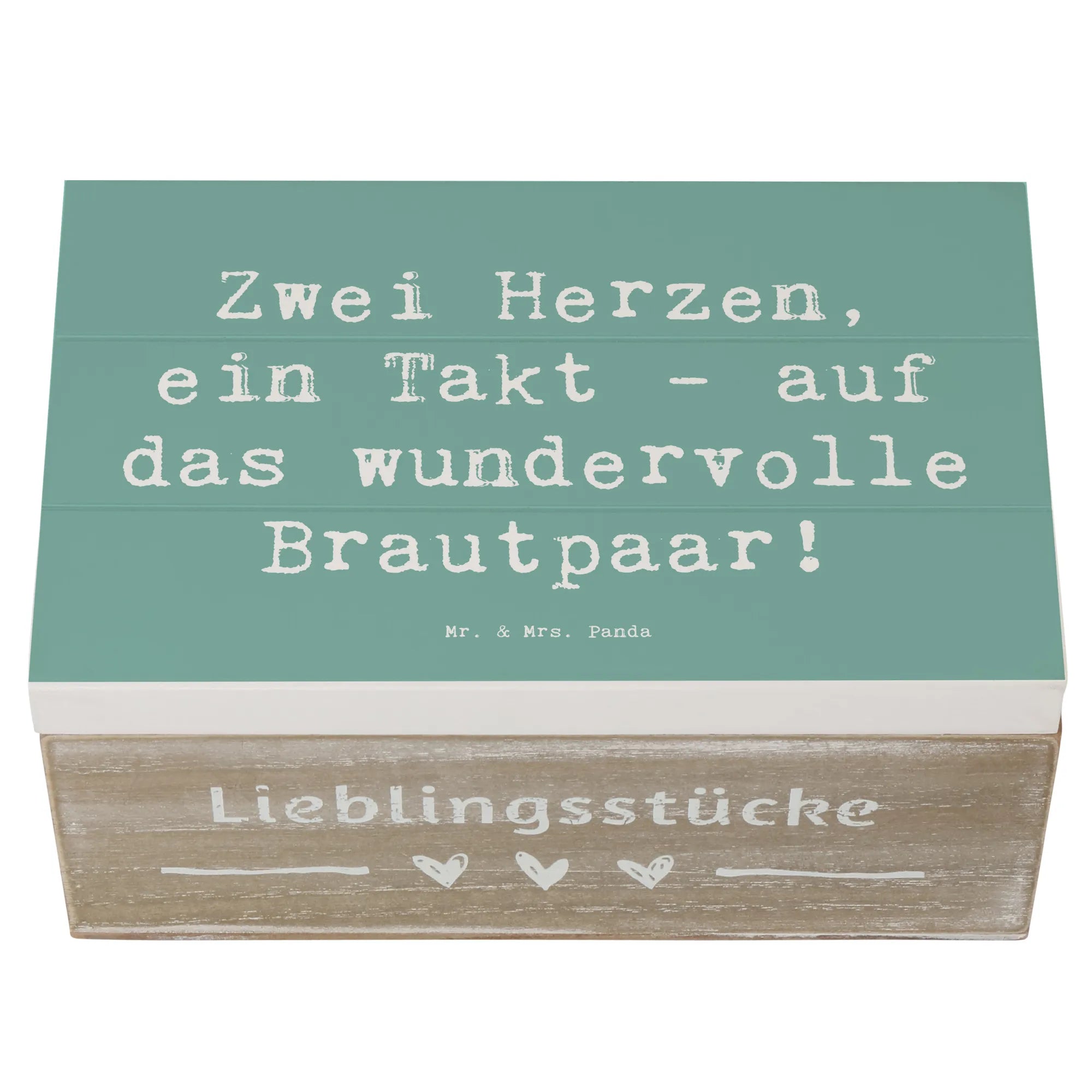 Entdecke die wundervolle Holzkiste von Mr. & Mrs. Panda, die perfekt für das Brautpaar ist! Mit dem zauberhaften Slogan "Zwei Herzen, ein Takt - auf das wundervolle Brautpaar!" wird diese Erinnerungskiste zum idealen Aufbewahrungsort für alle Schätze, die du an diesem besonderen Tag sammeln möchtest.