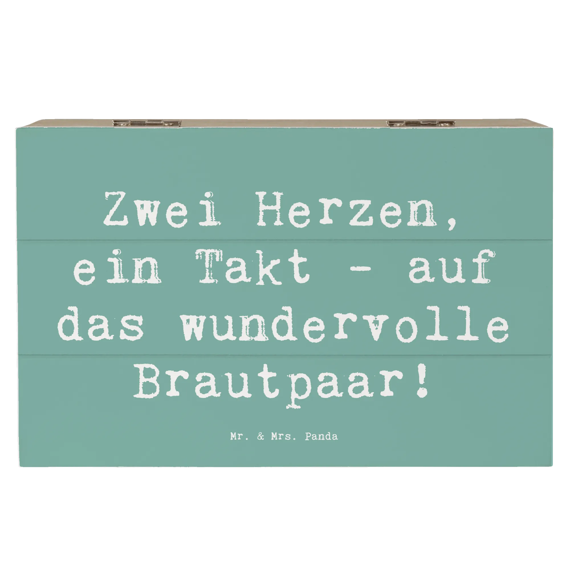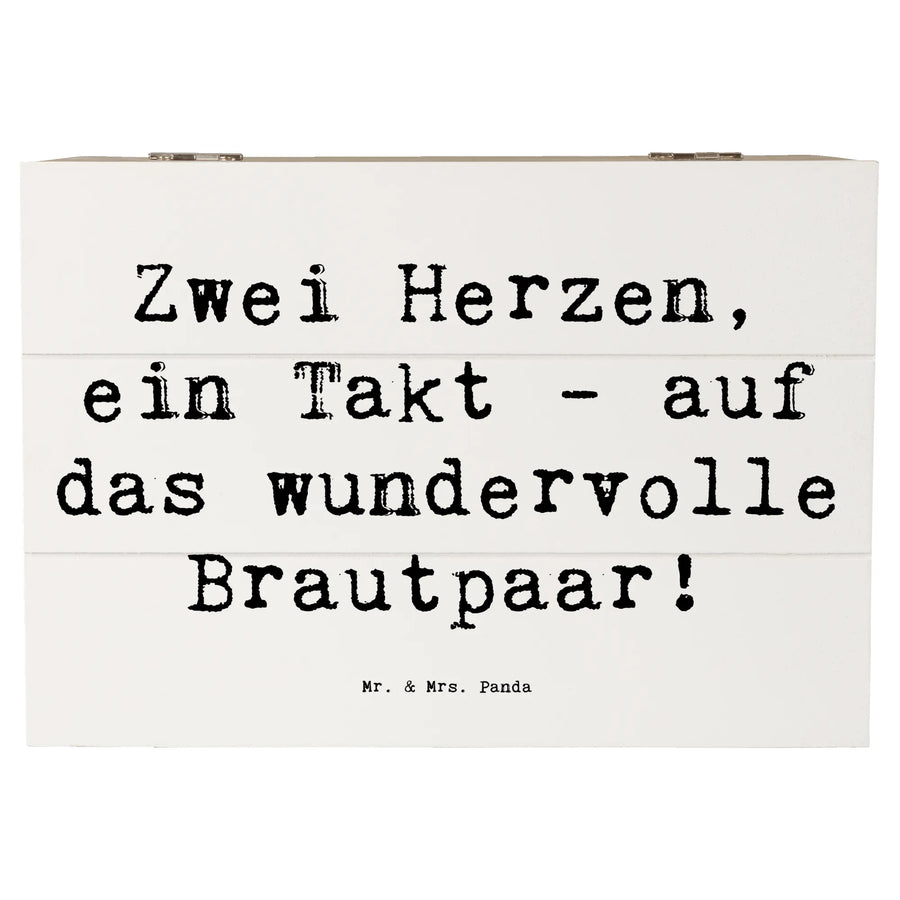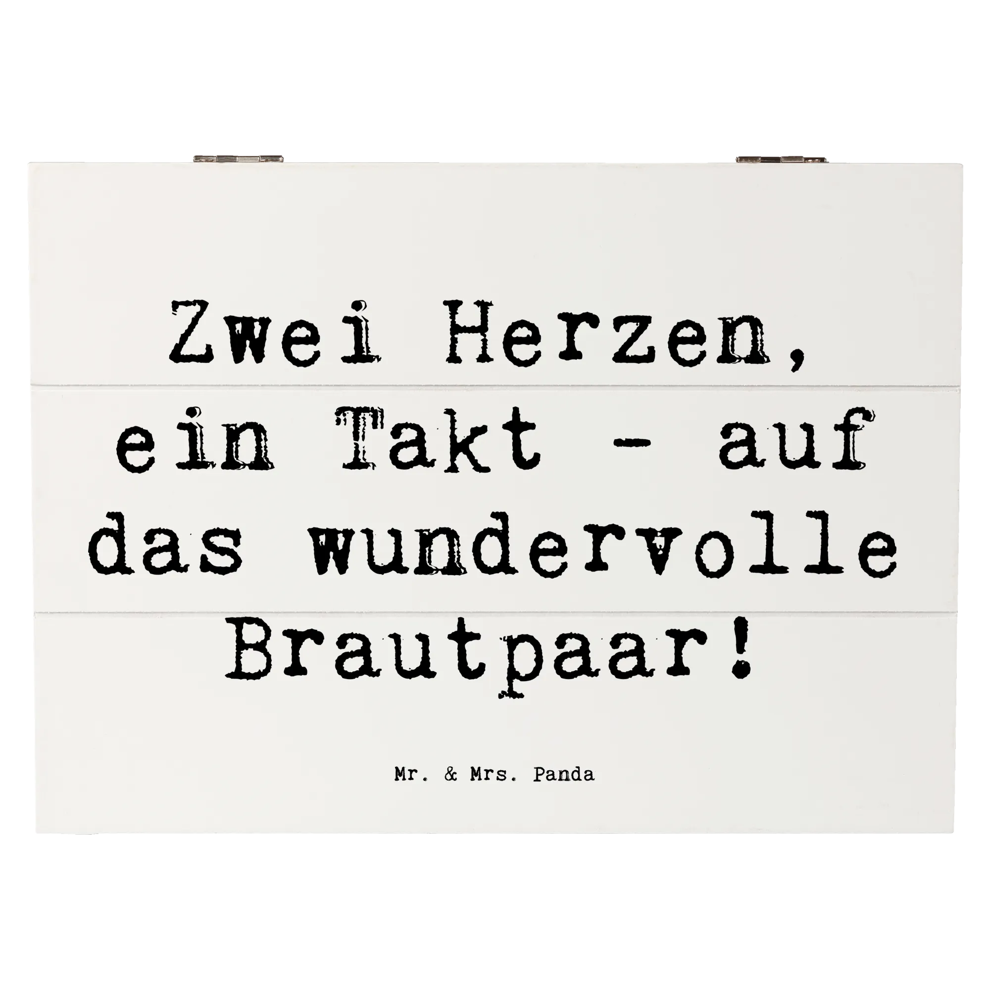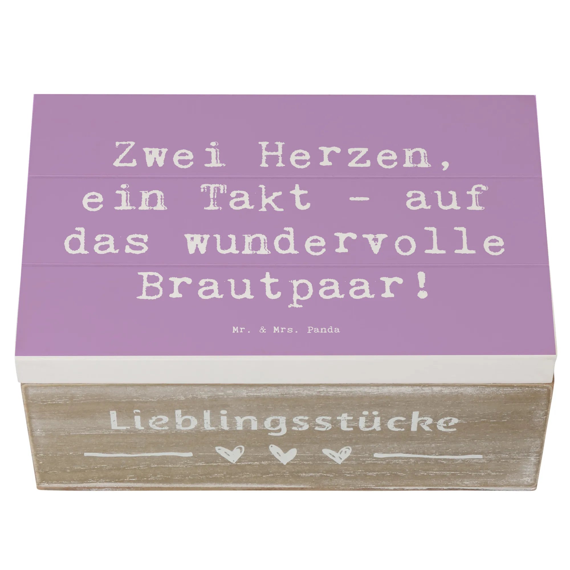 Entdecke die wundervolle Holzkiste von Mr. & Mrs. Panda, die perfekt für das Brautpaar ist! Mit dem zauberhaften Slogan "Zwei Herzen, ein Takt - auf das wundervolle Brautpaar!" wird diese Erinnerungskiste zum idealen Aufbewahrungsort für alle Schätze, die du an diesem besonderen Tag sammeln möchtest.